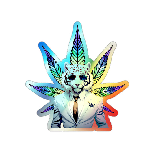 White Tiger, Rainbow Holographic Die-cut Vinyl Stickers