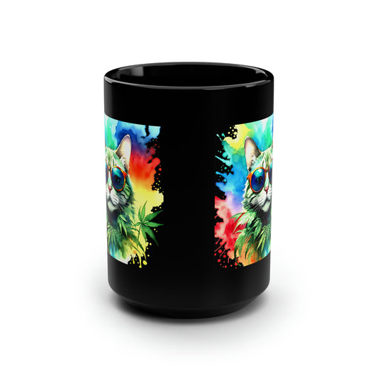 ChasingThe Rainbow Cat, Black Mug, 15oz, 420 Gift