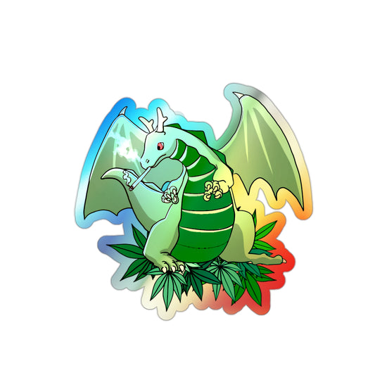 Puff Puff Smokin Dragon Rainbow Holographic Die-cut Vinyl Stickers