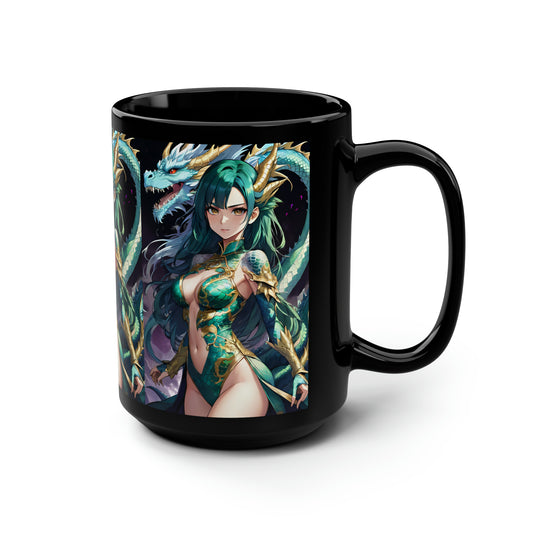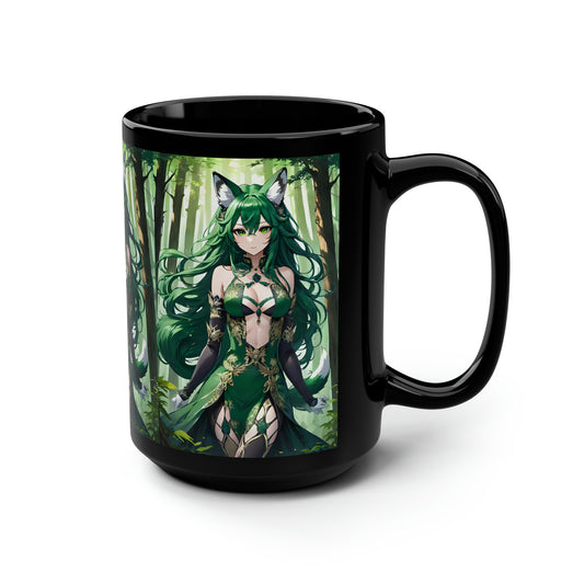 Emerald Fox Goddess, Black Mug, 15oz