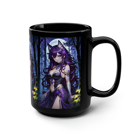 Amethyst Wolf Deity, Black Mug, 15oz