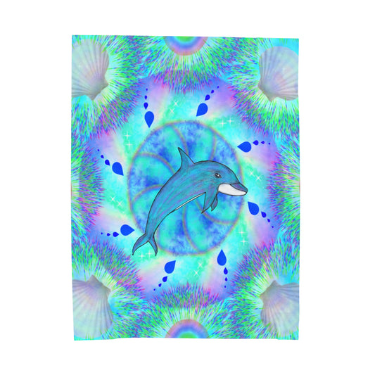 Mystic Dolphin Mandala Velveteen Plush Blanket