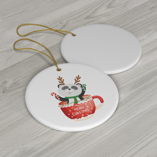 Merry Christmas Panda Ceramic Ornament, 4 Shapes