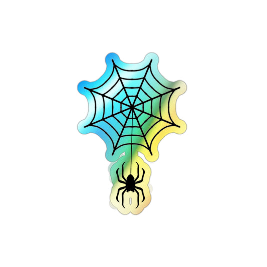 Spider Web Halloween Freaky Skull Rainbow Holographic Die-cut Vinyl Stickers