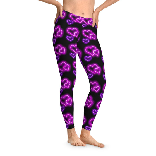 Glowing Hearts, Stretchy Leggings, Valentines Day, Gift For Her, Black Leggings