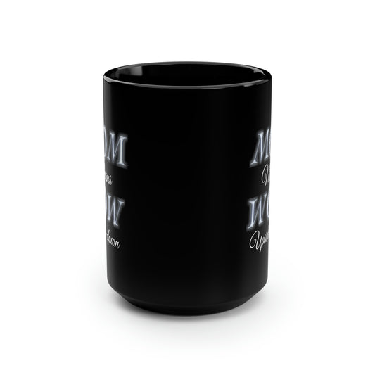 Mom Means Wow Upside Down, Black Mug, 15oz, Mothers Day Gift Idea