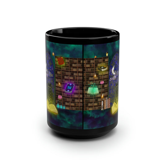 Mystic Cat Black Halloween Mug, 15oz