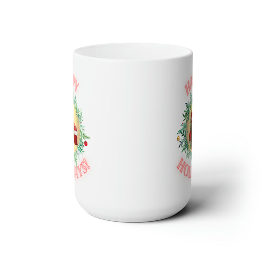 Happy Holidays kitty Christmas Ceramic Mug 15oz