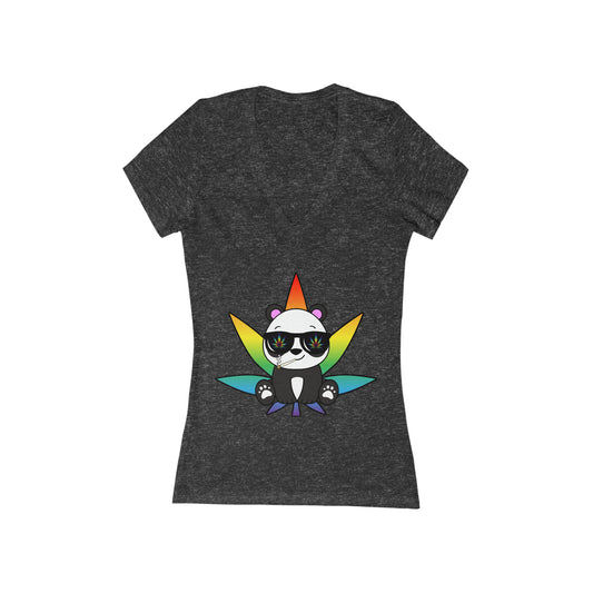 Peaceful Panda, Women's Jersey Short Sleeve Deep V-Neck Tee