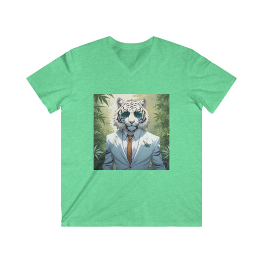White Tiger, Men's Fitted V-Neck Short Sleeve Tee