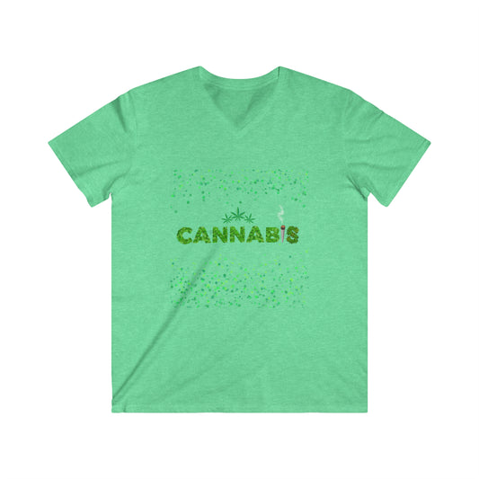 Cannabis, Men's Fitted V-Neck Short Sleeve Tee