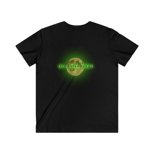 Men's Fitted V-Neck Short Sleeve Tee All Hallows Eve Candlelight Skeleton Top