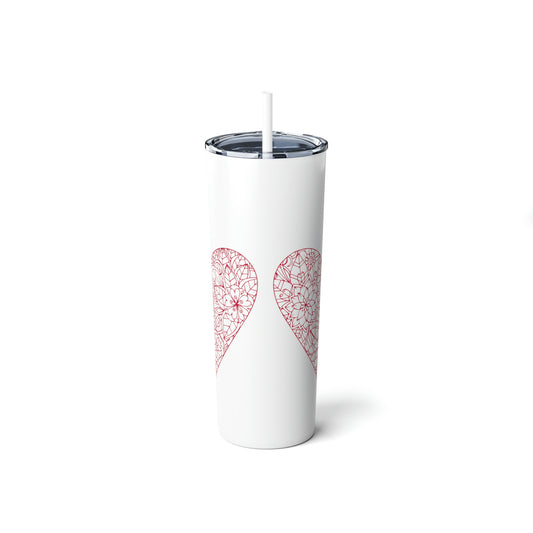 Heart, Skinny Steel Tumbler with Straw, 20oz, Gifts
