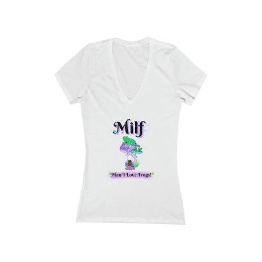 MILF Man I Love Frogs, Women's Jersey Short Sleeve Deep V-Neck Tee, Frog Lover Gift, Girlfriend Gift, Womens gift