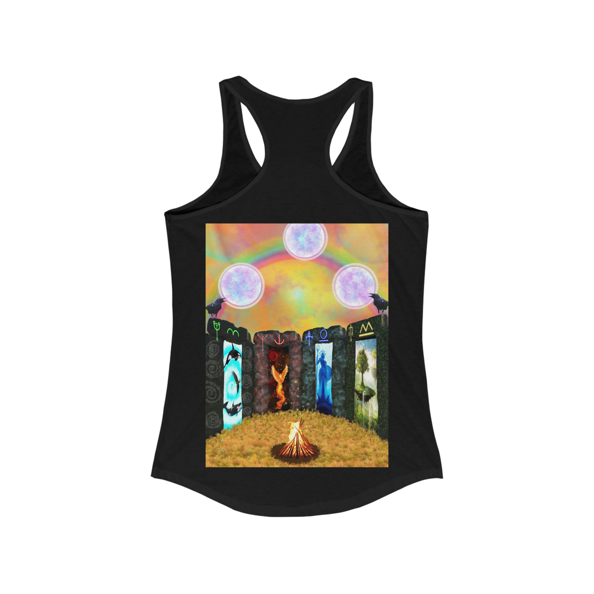 A high-quality print of this slim fit tank-top will turn heads. Bystanders won't be disappointed - the racerback cut looks good on any woman's shoulders.
