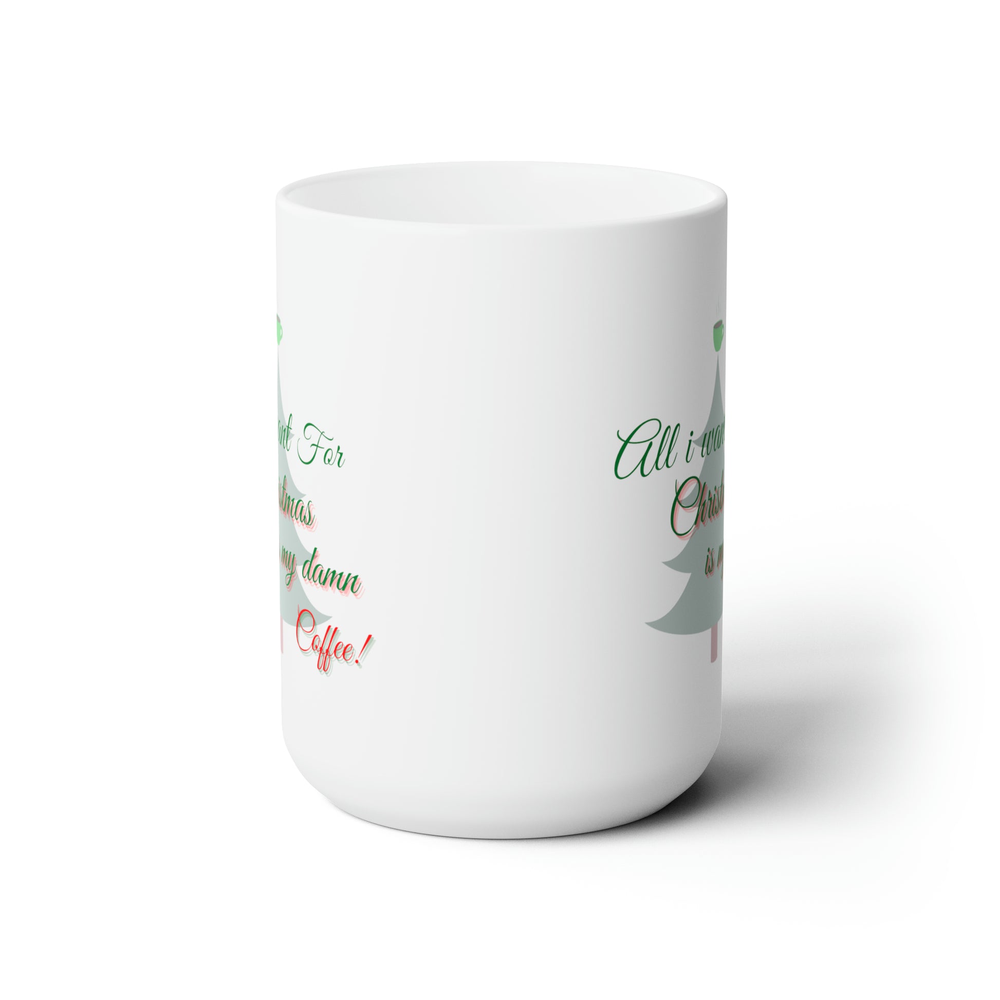 Your imagination is the limit with this large 15 ounce mug. It is microwave-safe, and can be washed in a dishwasher or easily cleaned with a mild detergent.White ceramic Rounded corners C-handle.