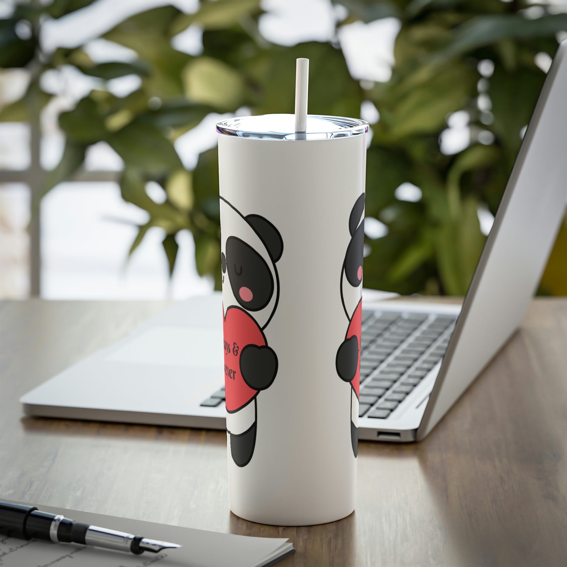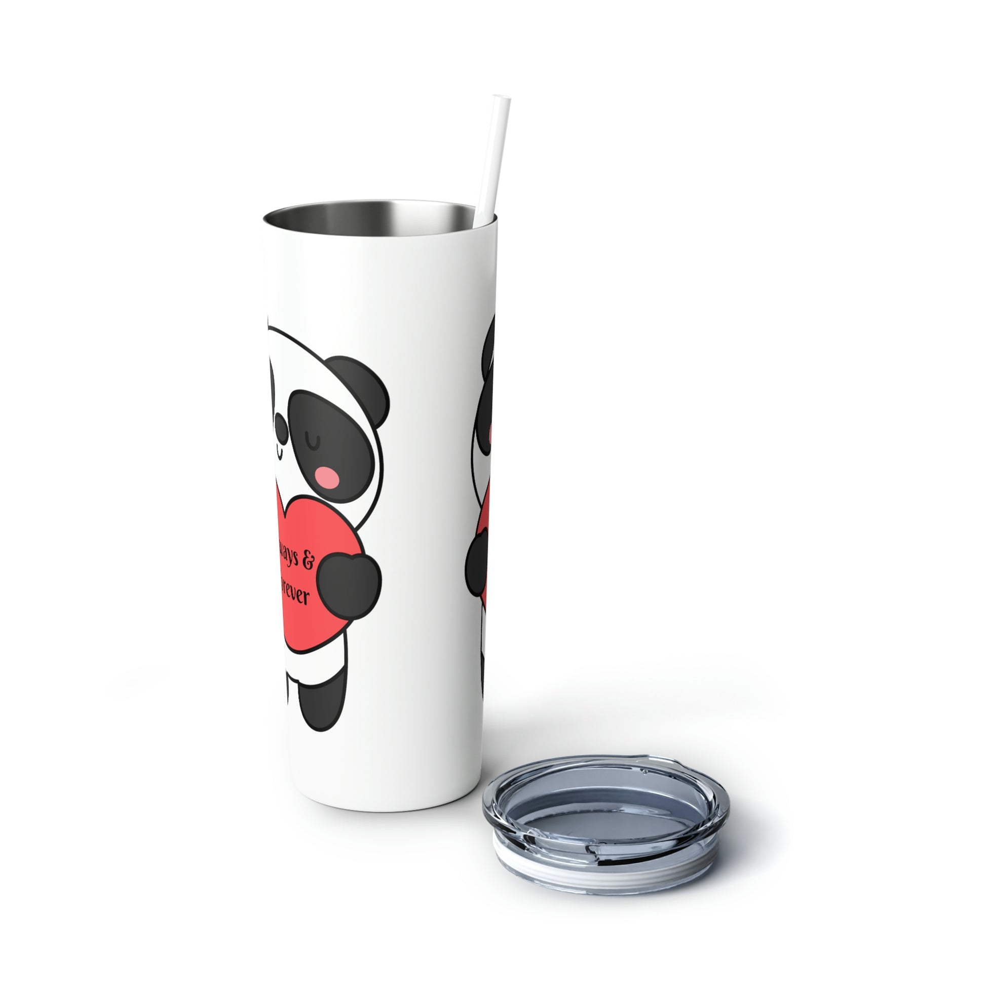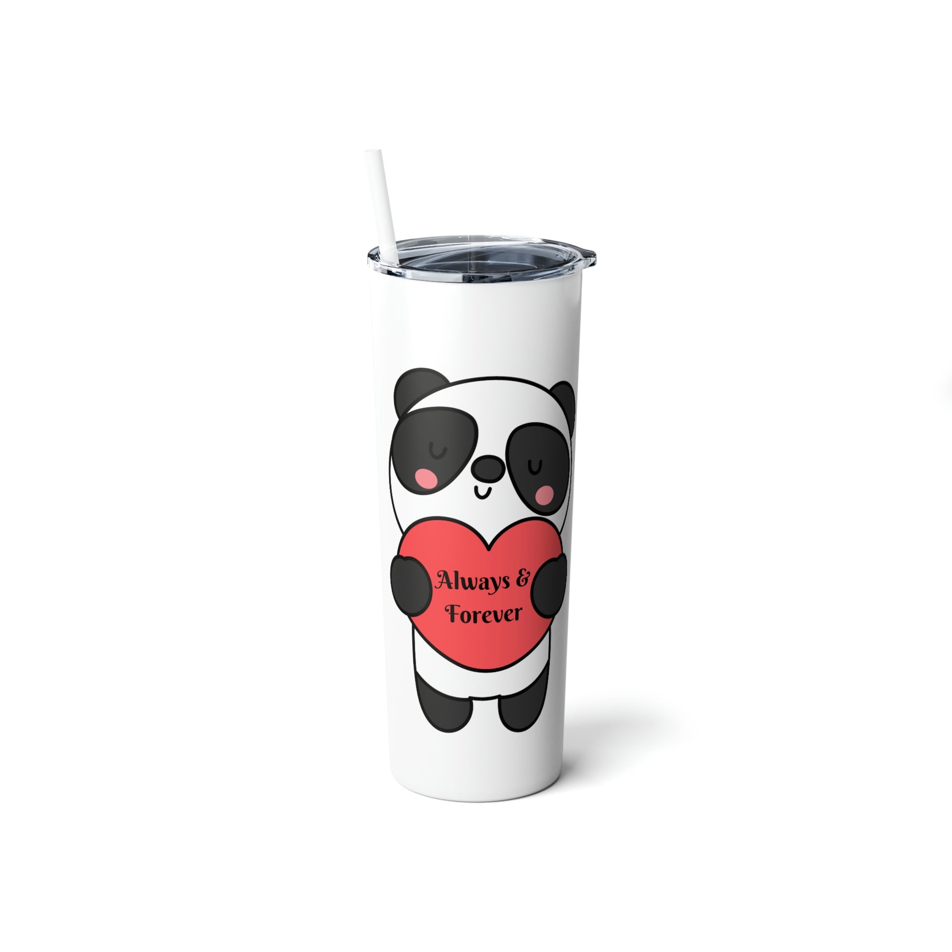 Always And Forever Panda, Skinny Steel Tumbler with Straw, 20oz, Gifts