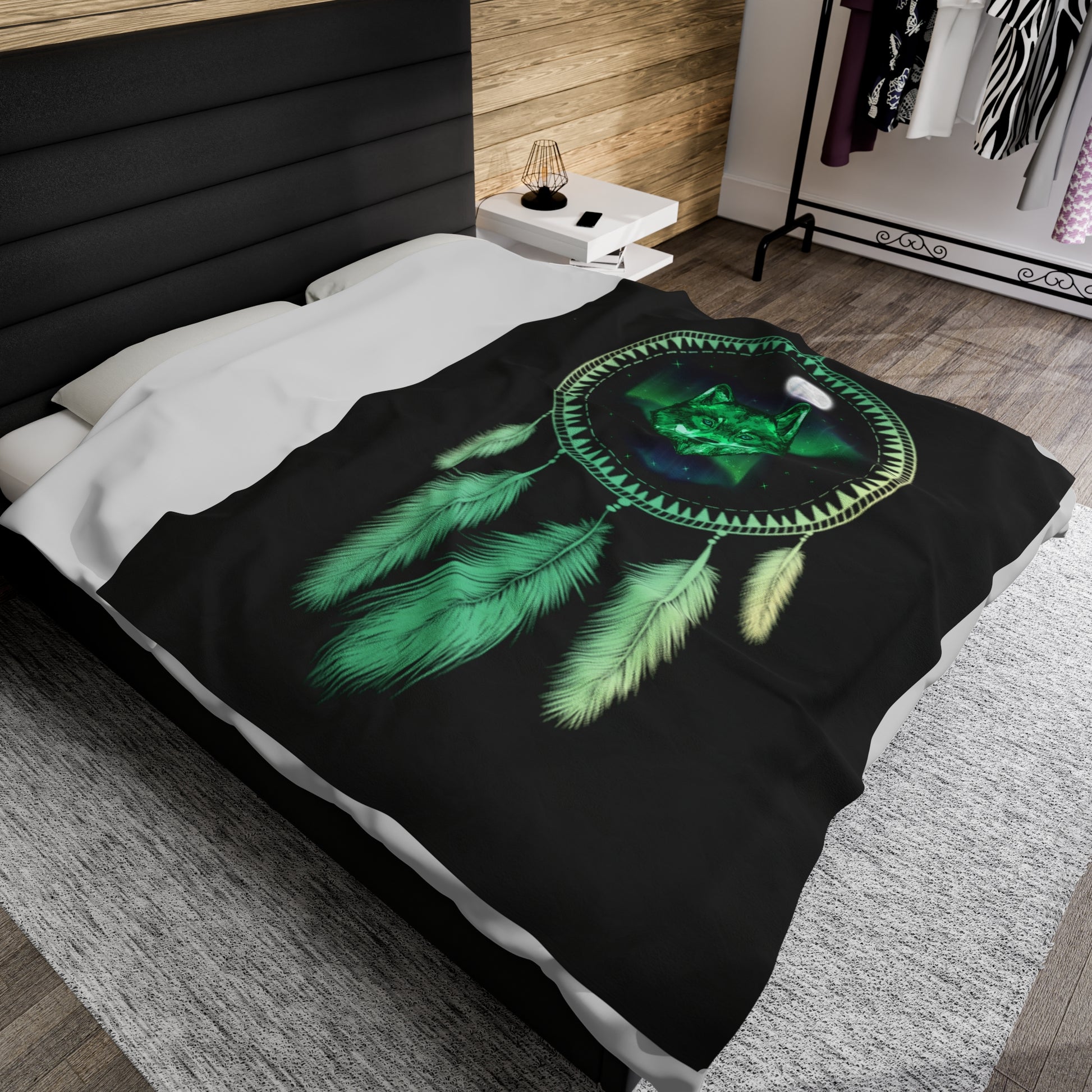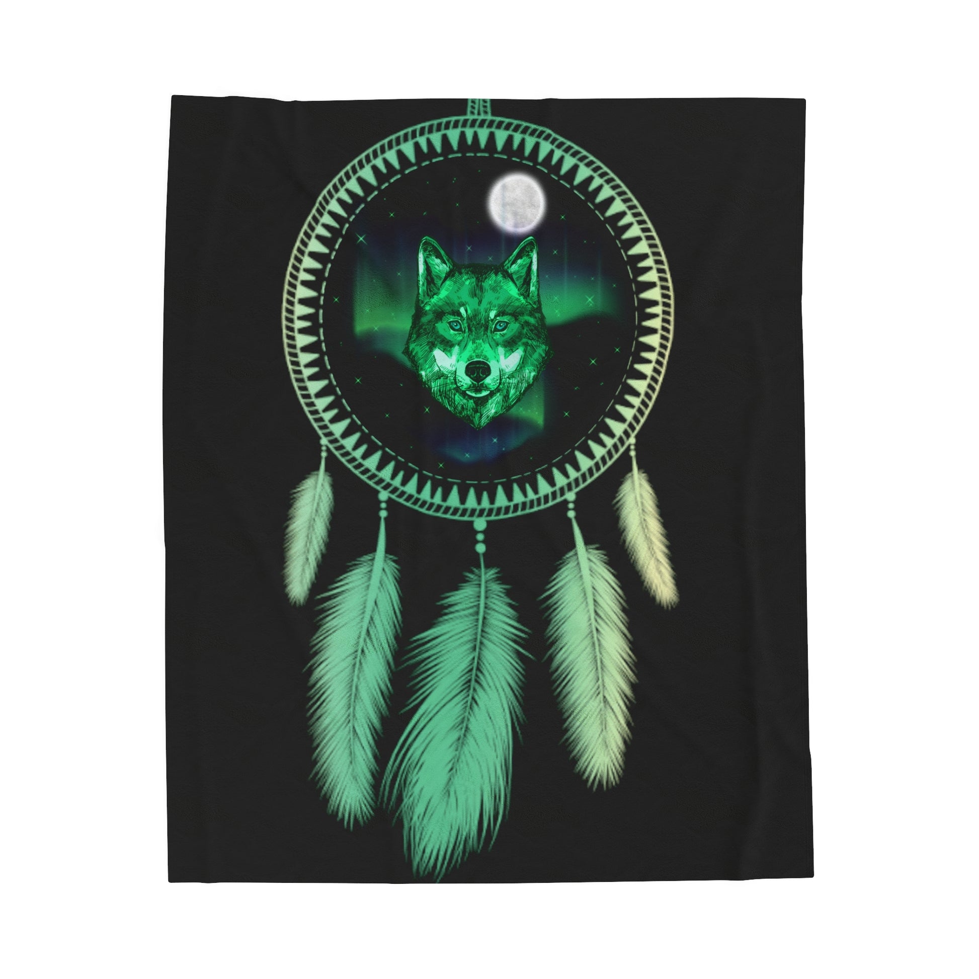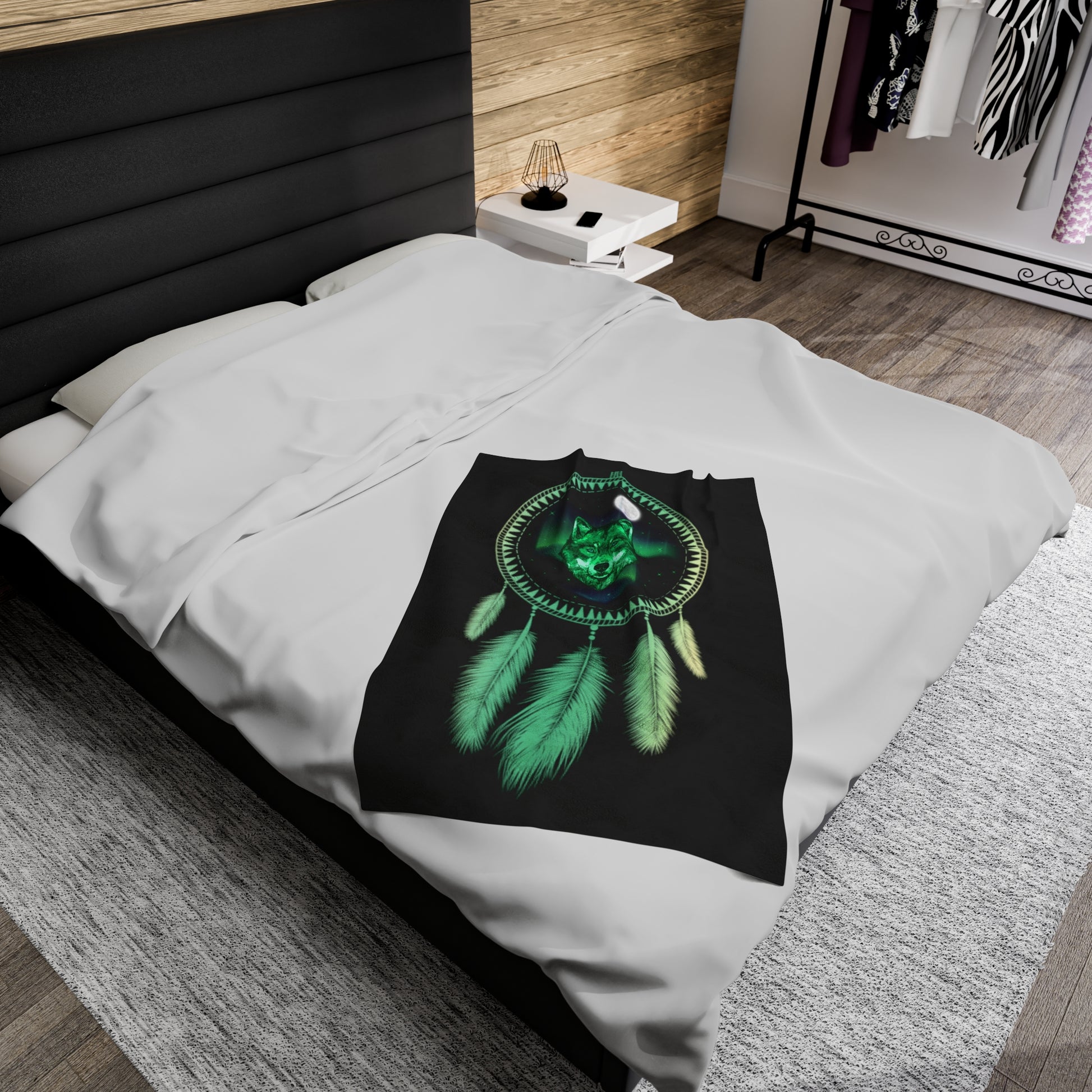 Ancestral Wolf, Velveteen Plush Blanket, Black Light Responsive