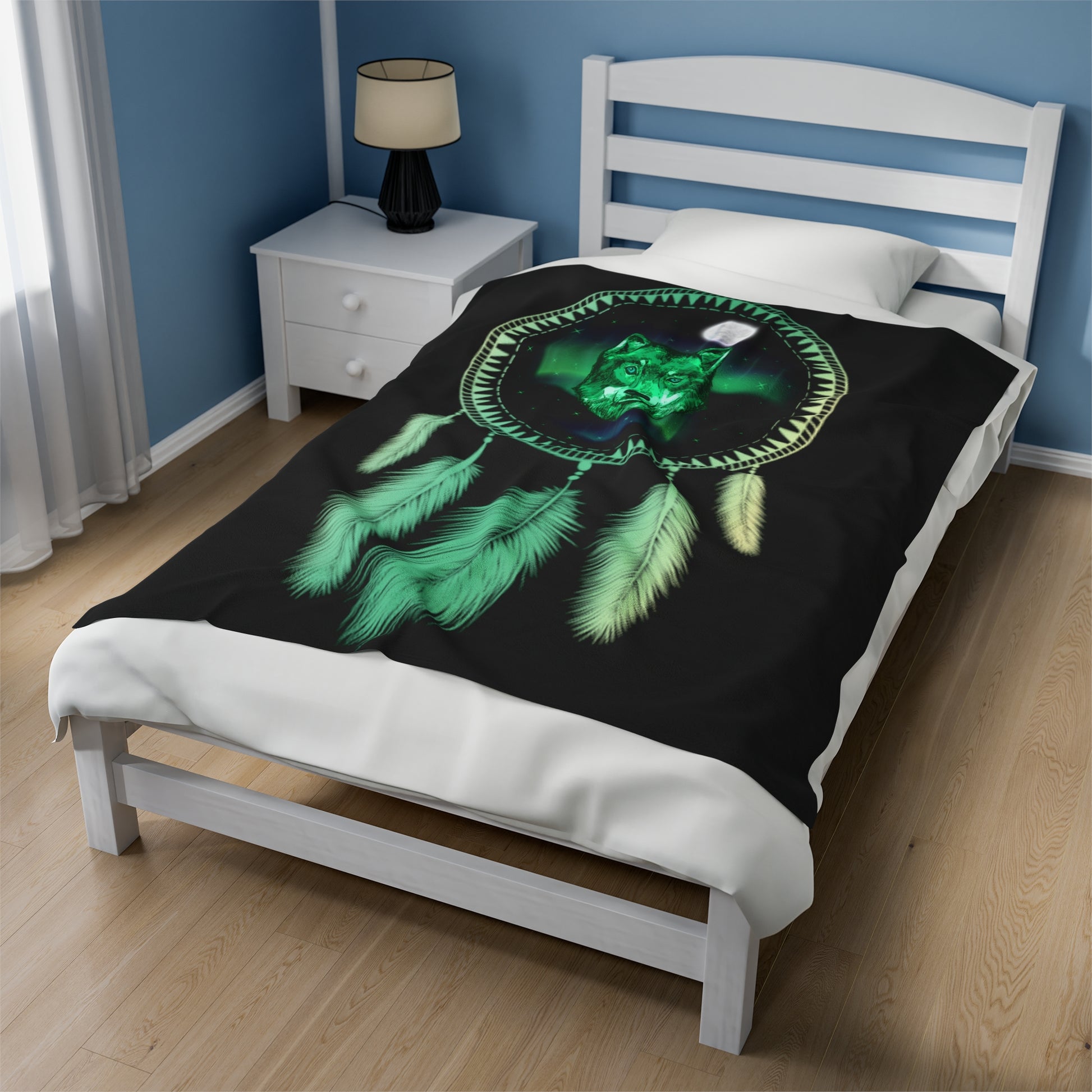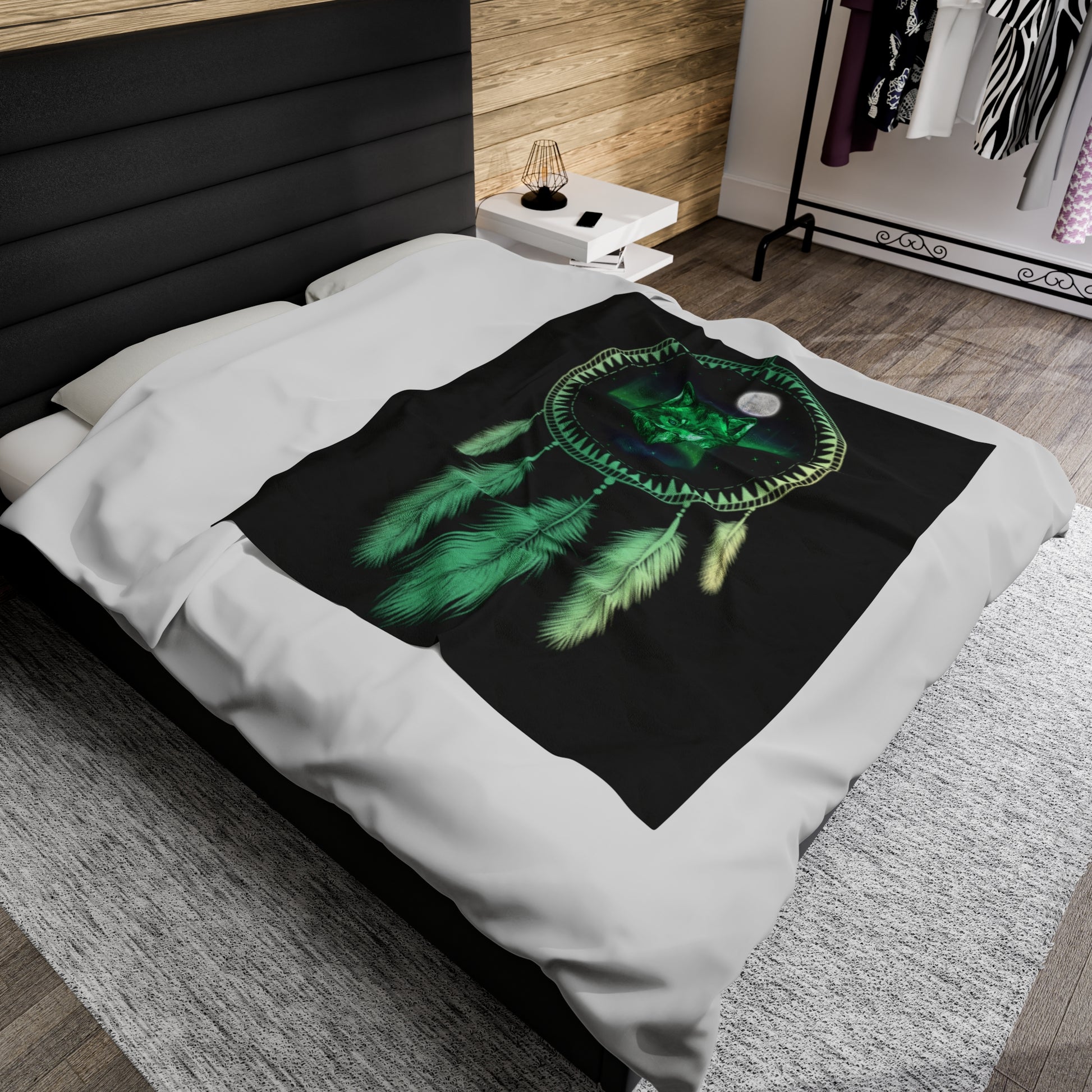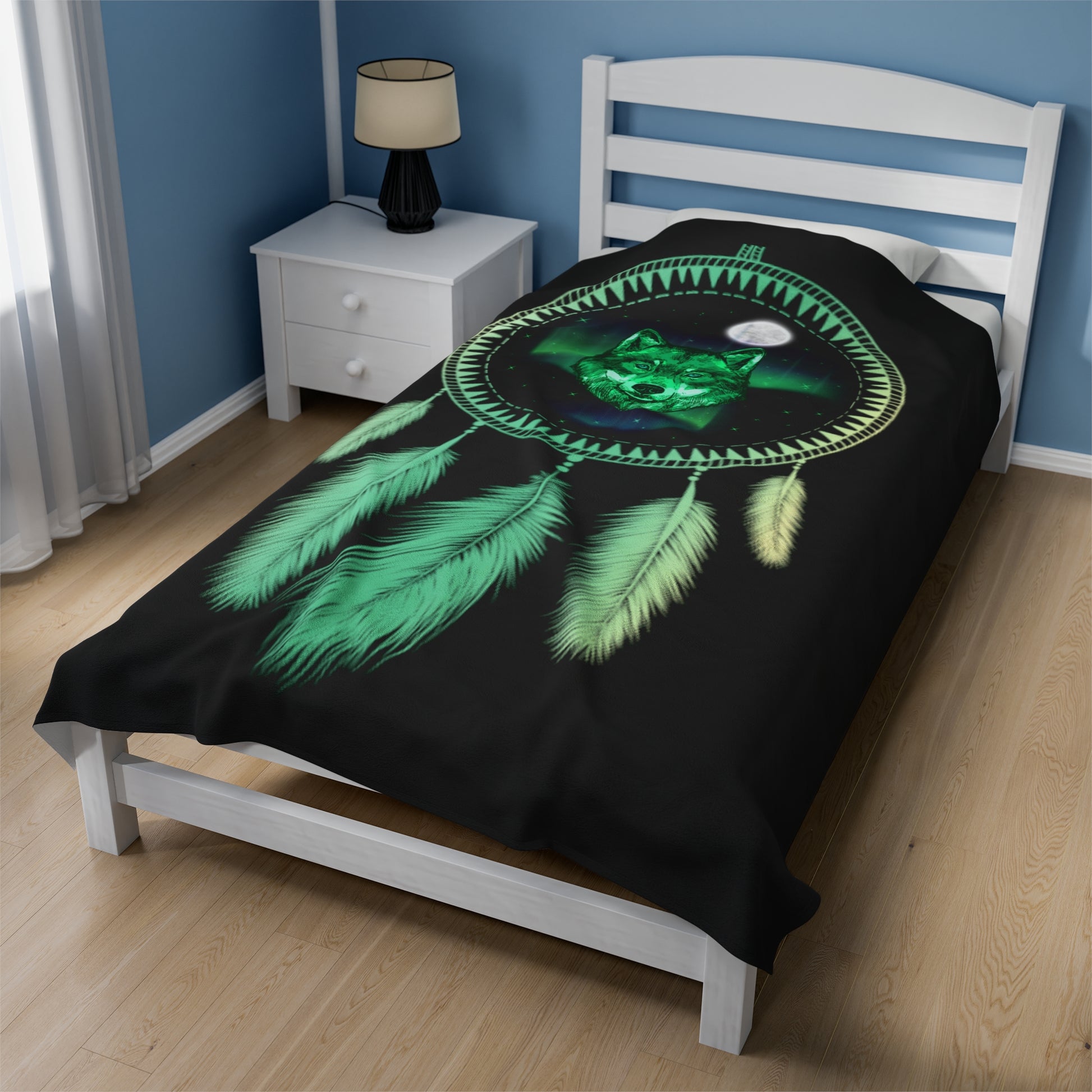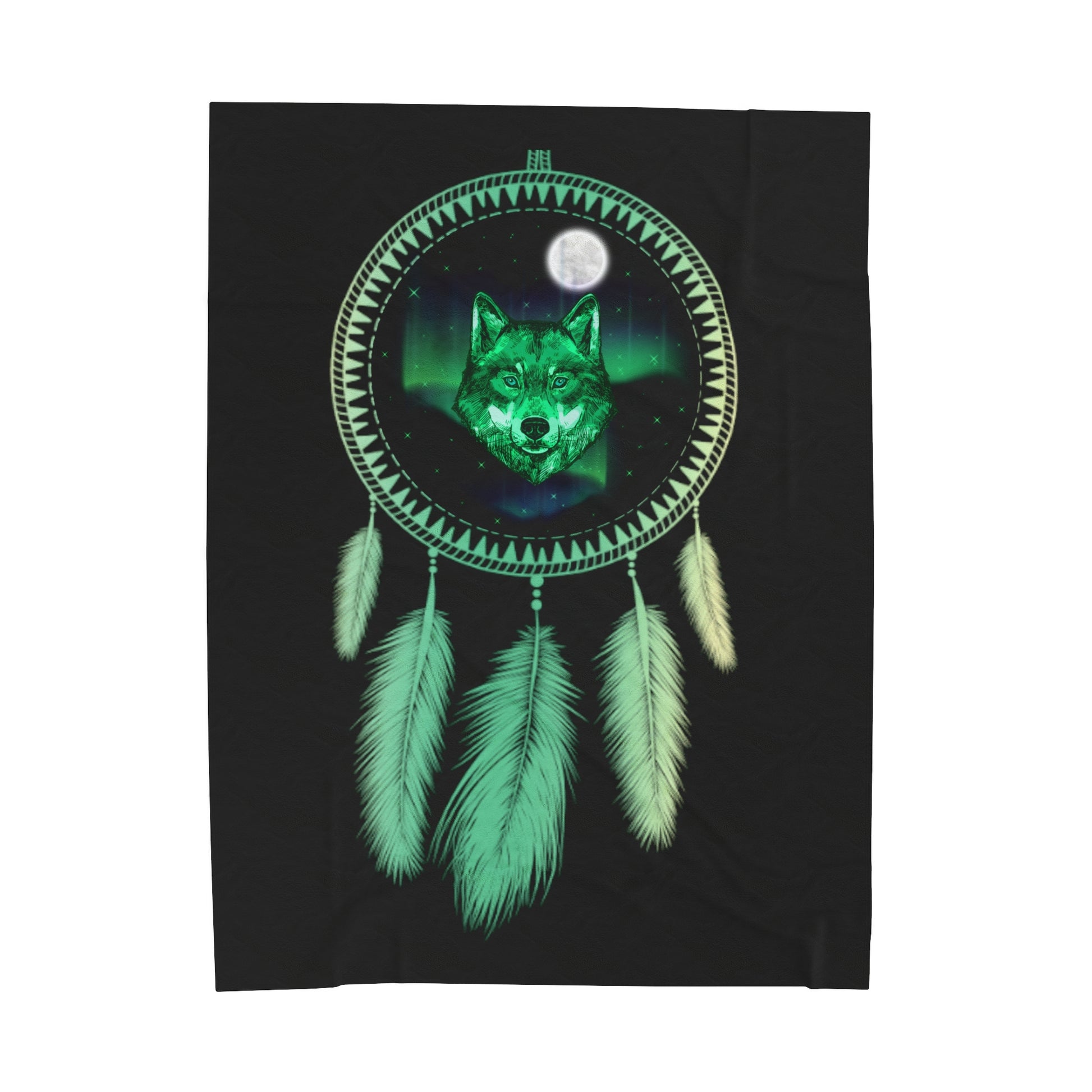 Ancestral Wolf, Velveteen Plush Blanket, Black Light Responsive