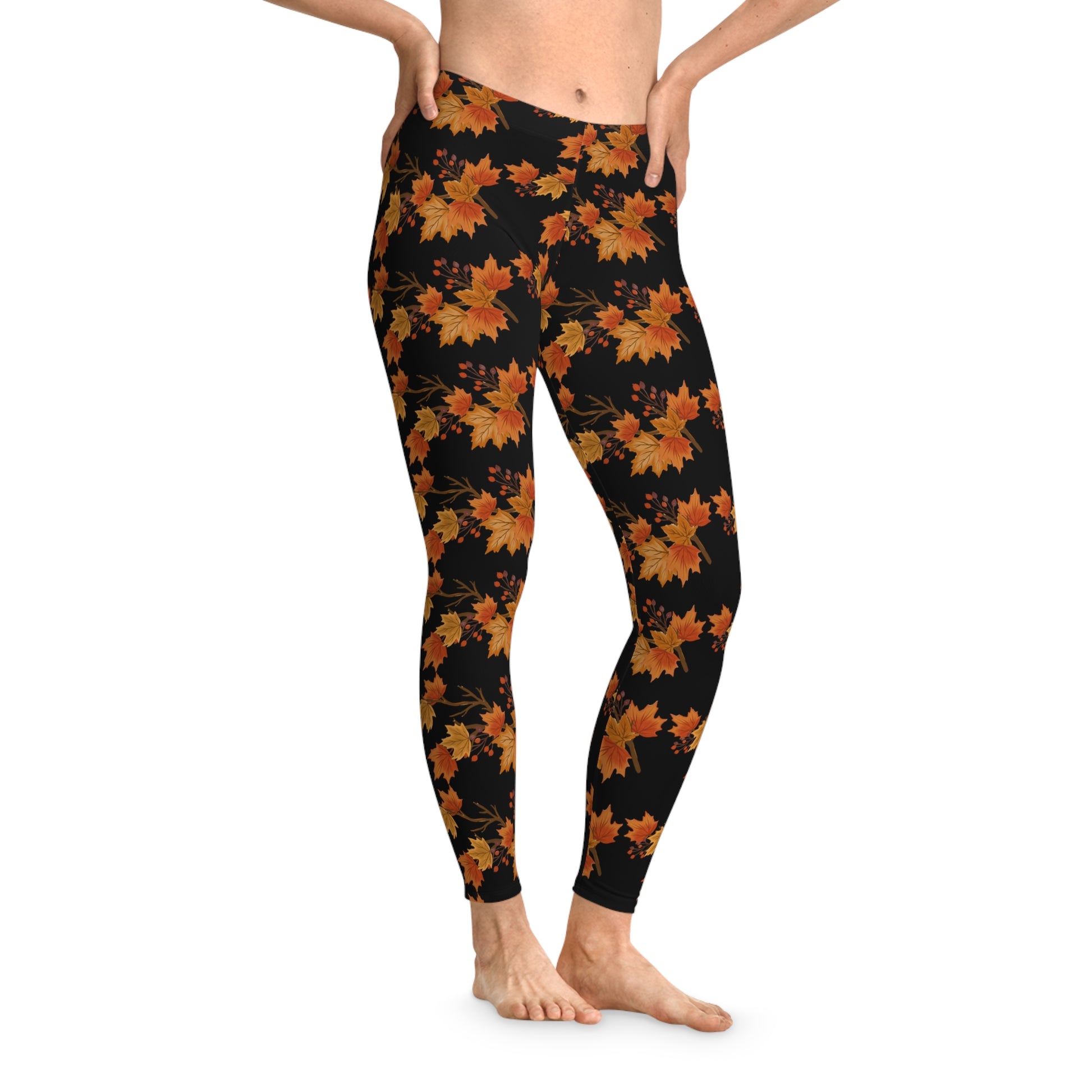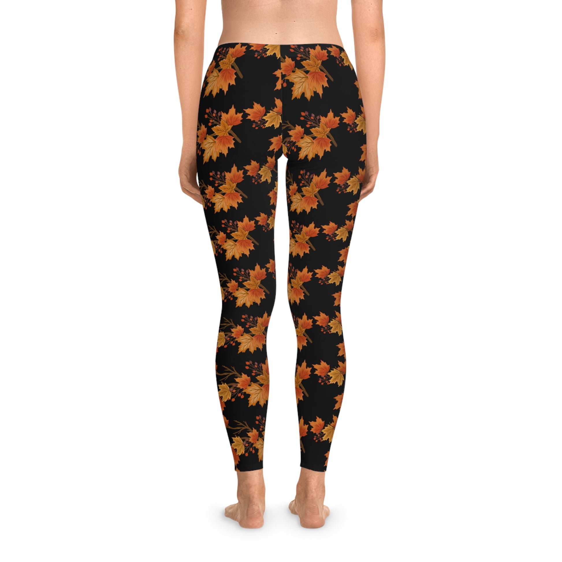 Autumn leaves fall Stretchy Leggings Black