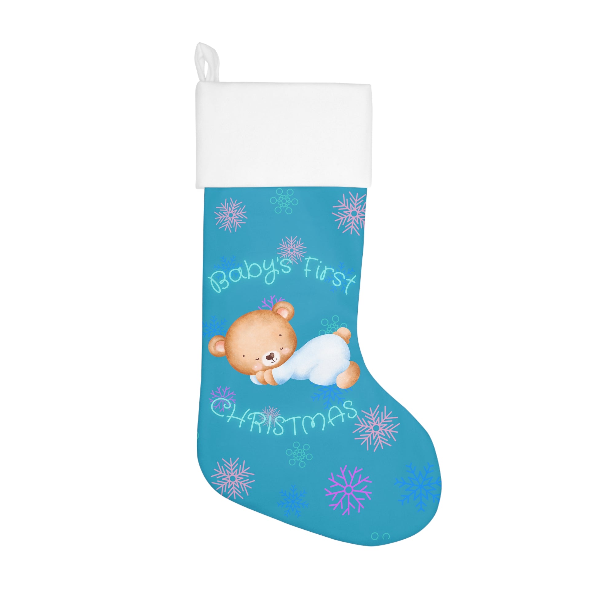 Here to add a festive flair to any fireplace or corner of a home, this Christmas stocking is the perfect way to store small gifts for loved ones. Featuring a white fold on top and a hanging loop for convenient placement.