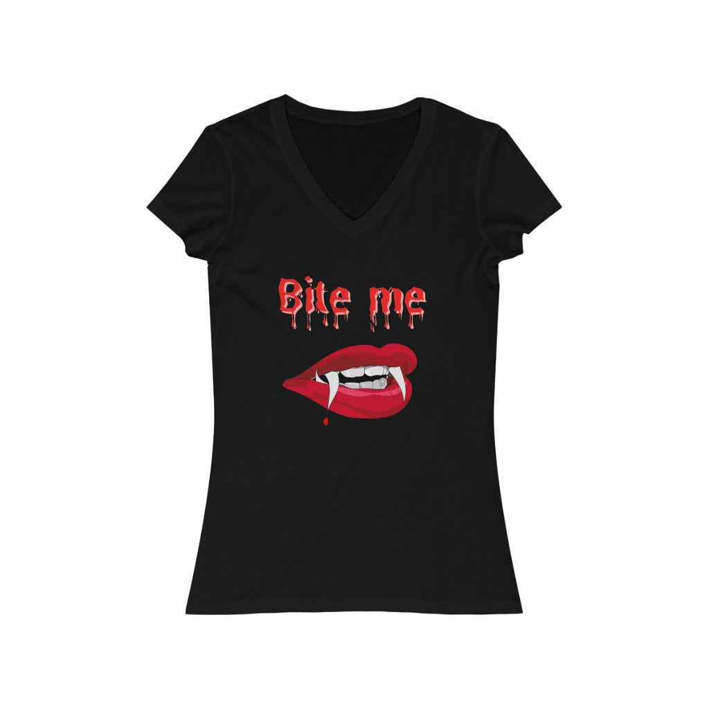 Bite Me Women's Halloween Jersey Short Sleeve V-Neck Tee