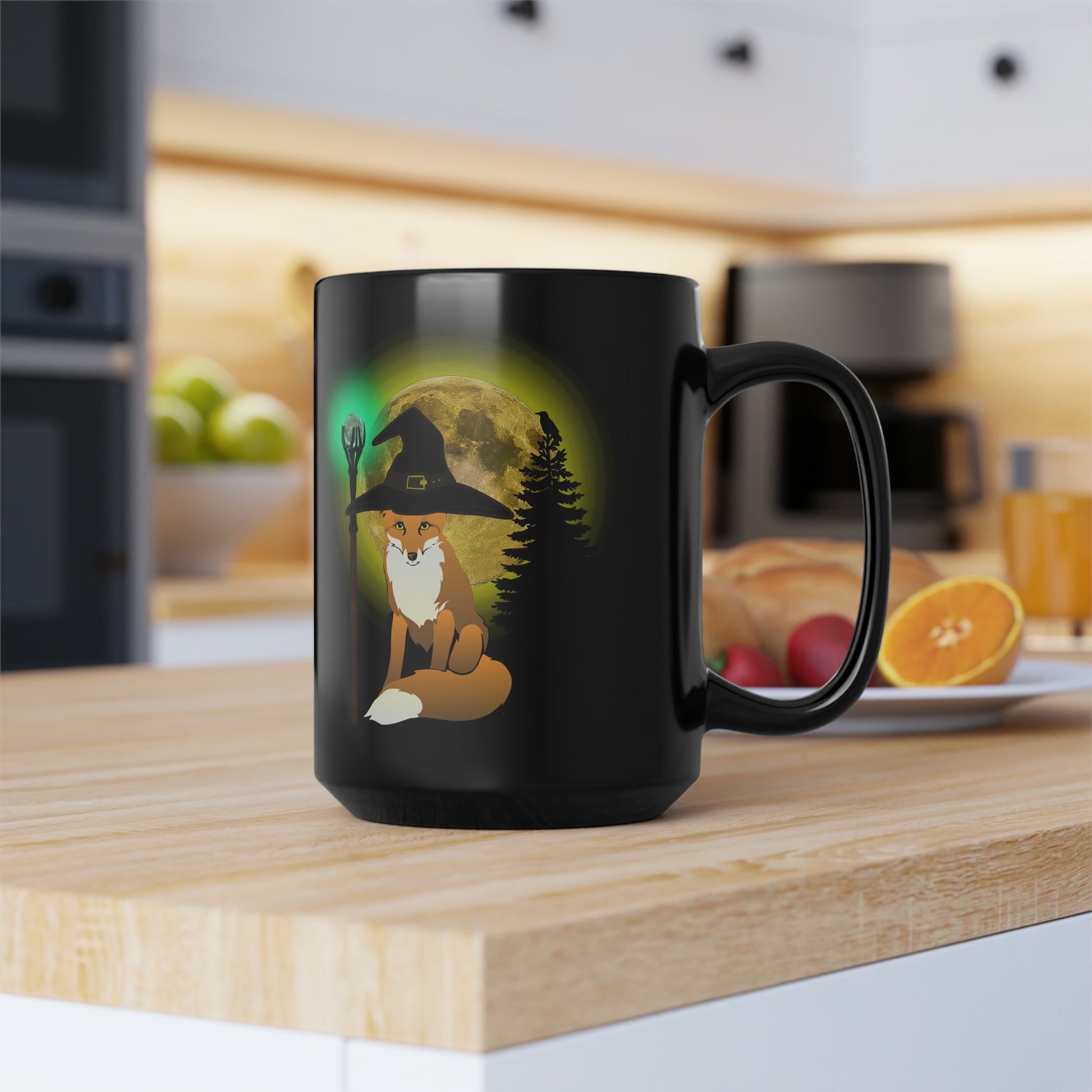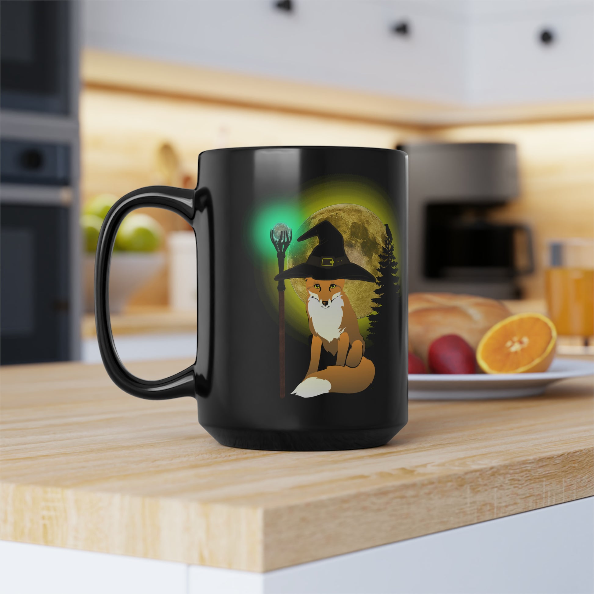 Black Halloween Trickster Fox Mage Mug15oz