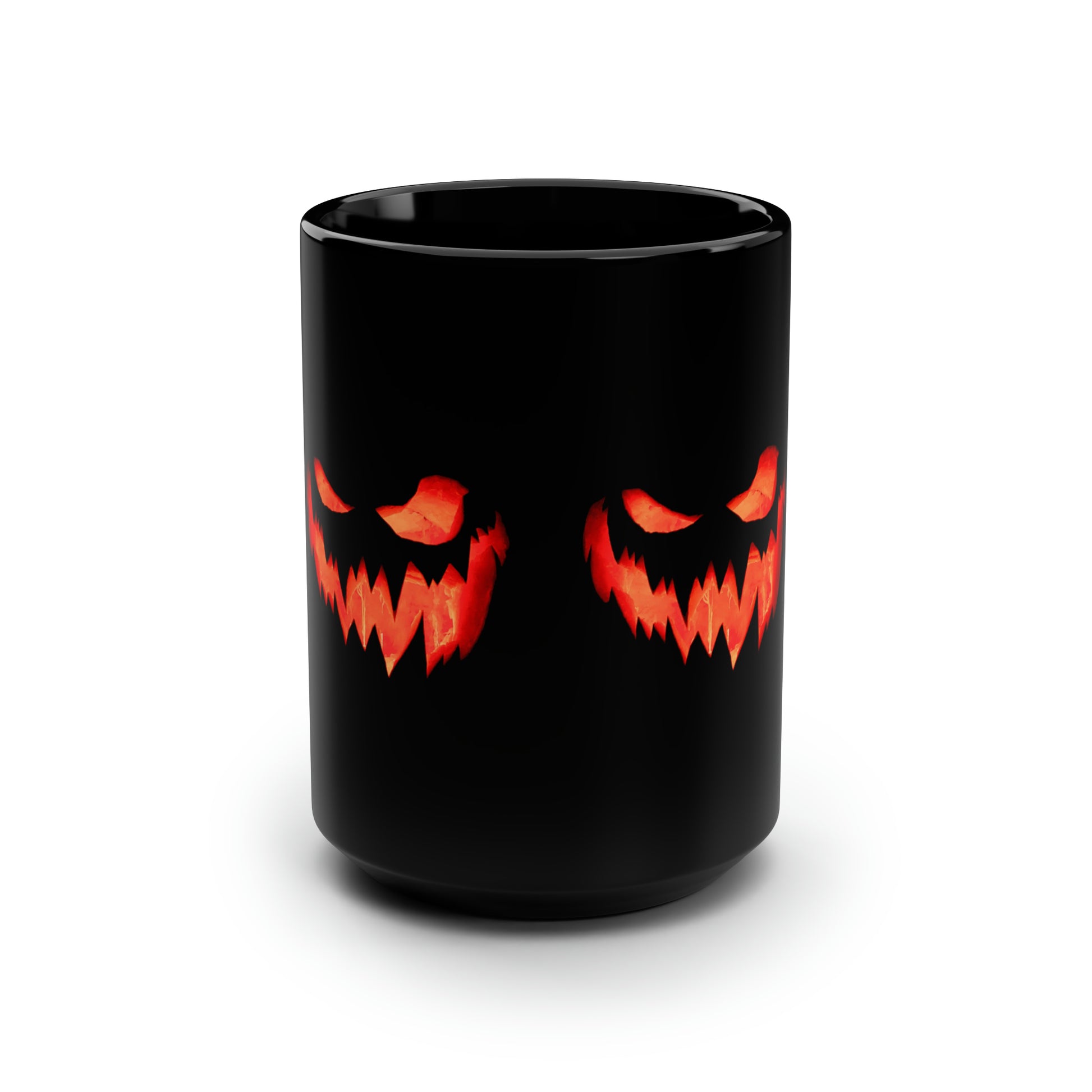 Black Mug, Spooky Pumpkin Halloween 15oz