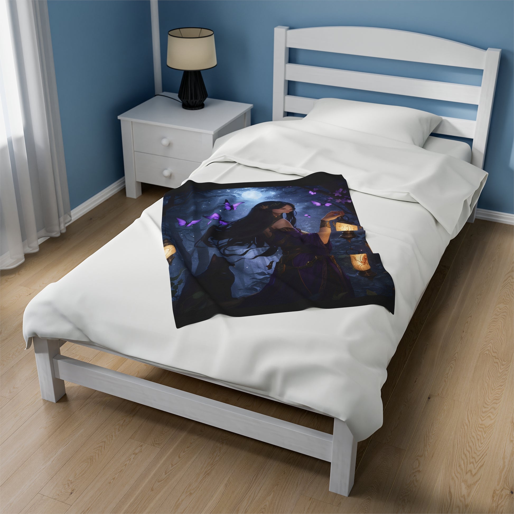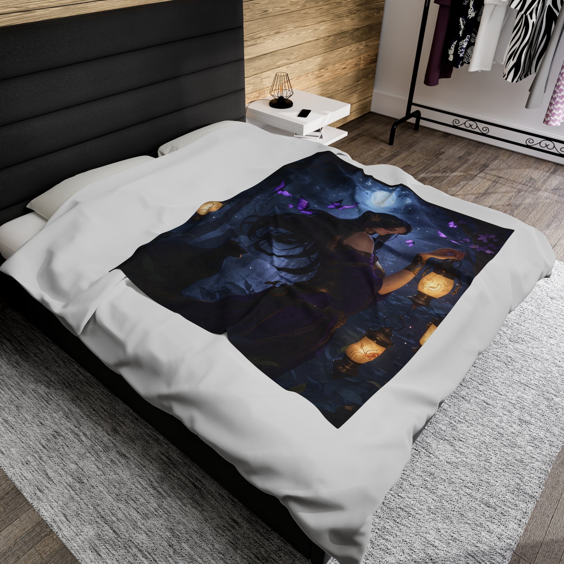 Create a cozy and warm atmosphere at home with this plush velveteen blanket. It is soft to touch and perfect for any home. Customize with an all-over print to add your personal touch or create a gift for your friends and family. Available in three sizes: 30x40", 50x60", 60x80". Due to variations in the production process, blankets may arrive up to 3" shorter than their listed size. .: 100% Polyester .: One sided print .: 3 sizes