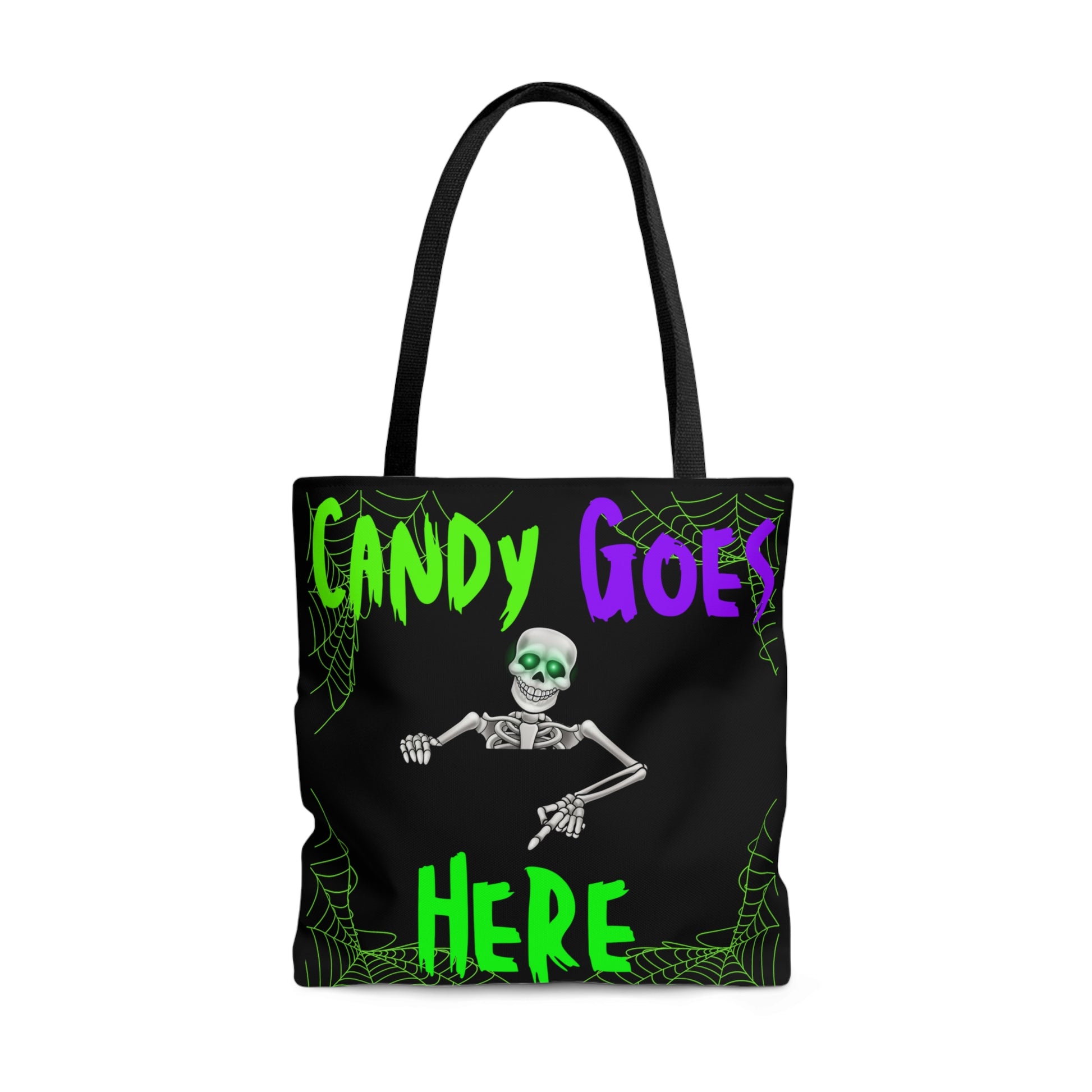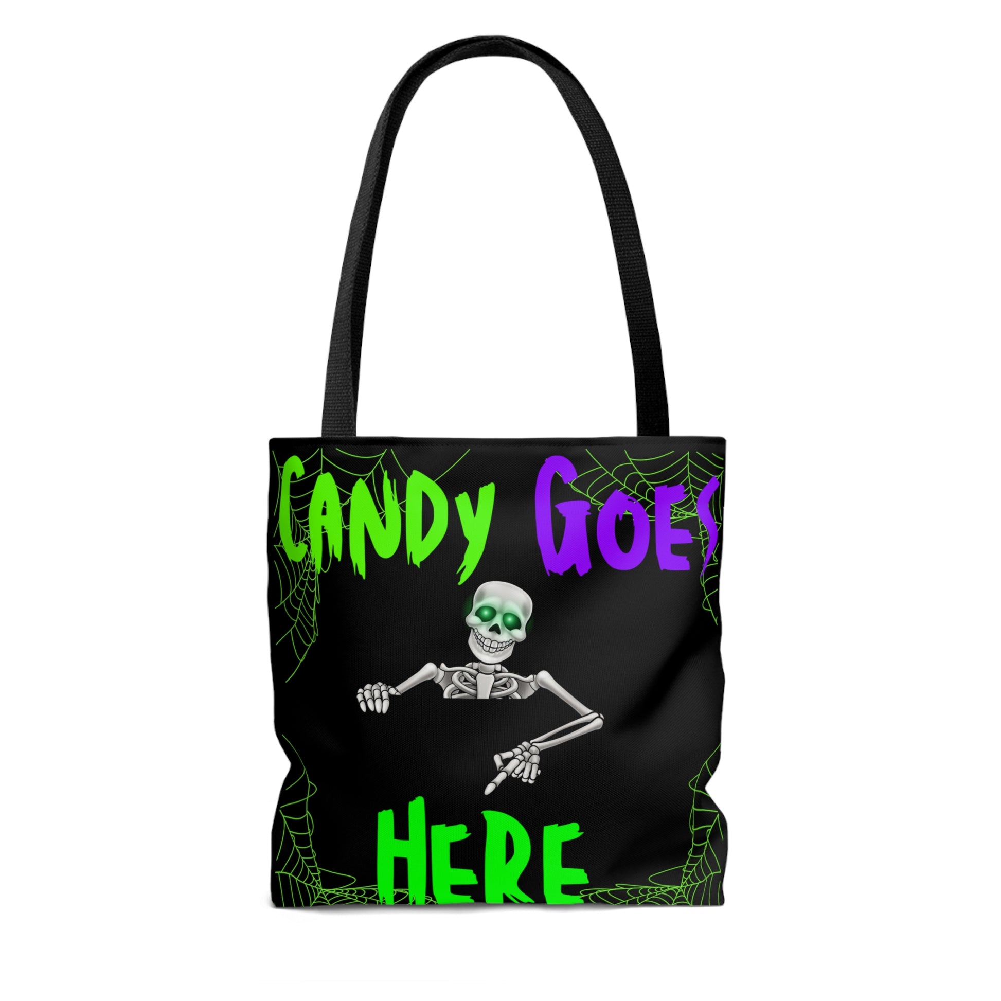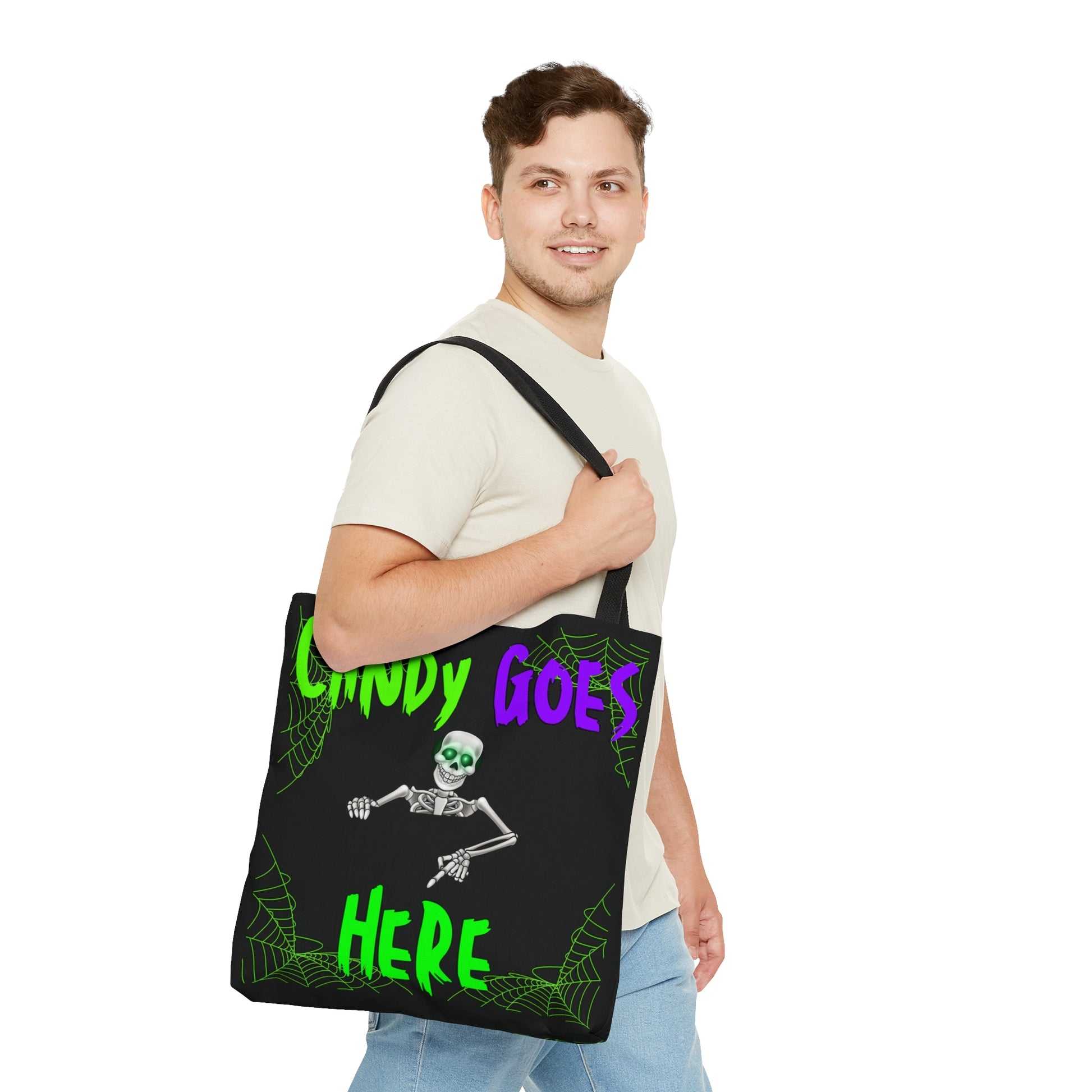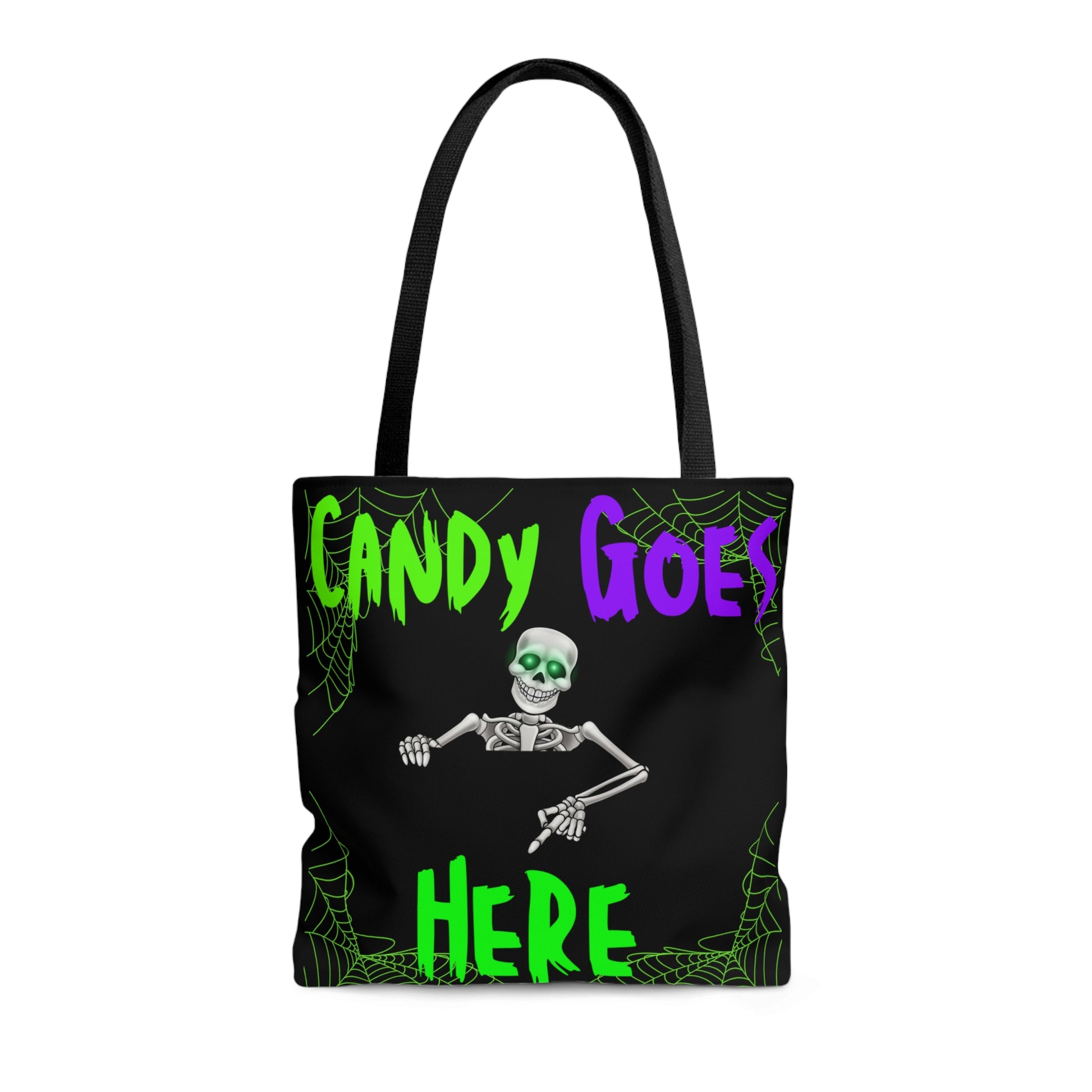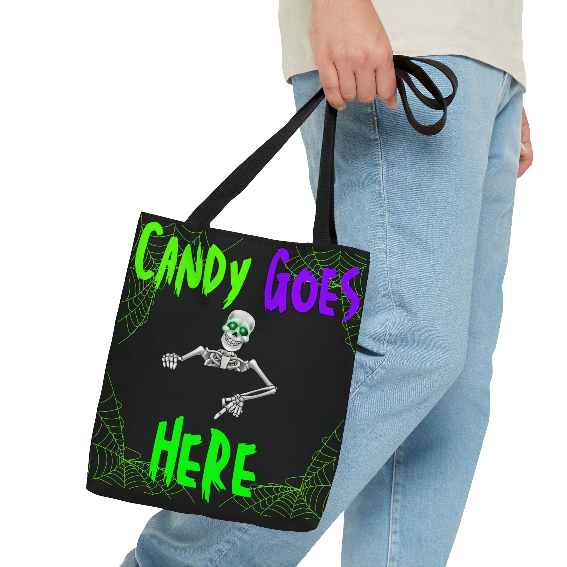 Candy Goes Here, Skeleton Halloween candy Tote Bag