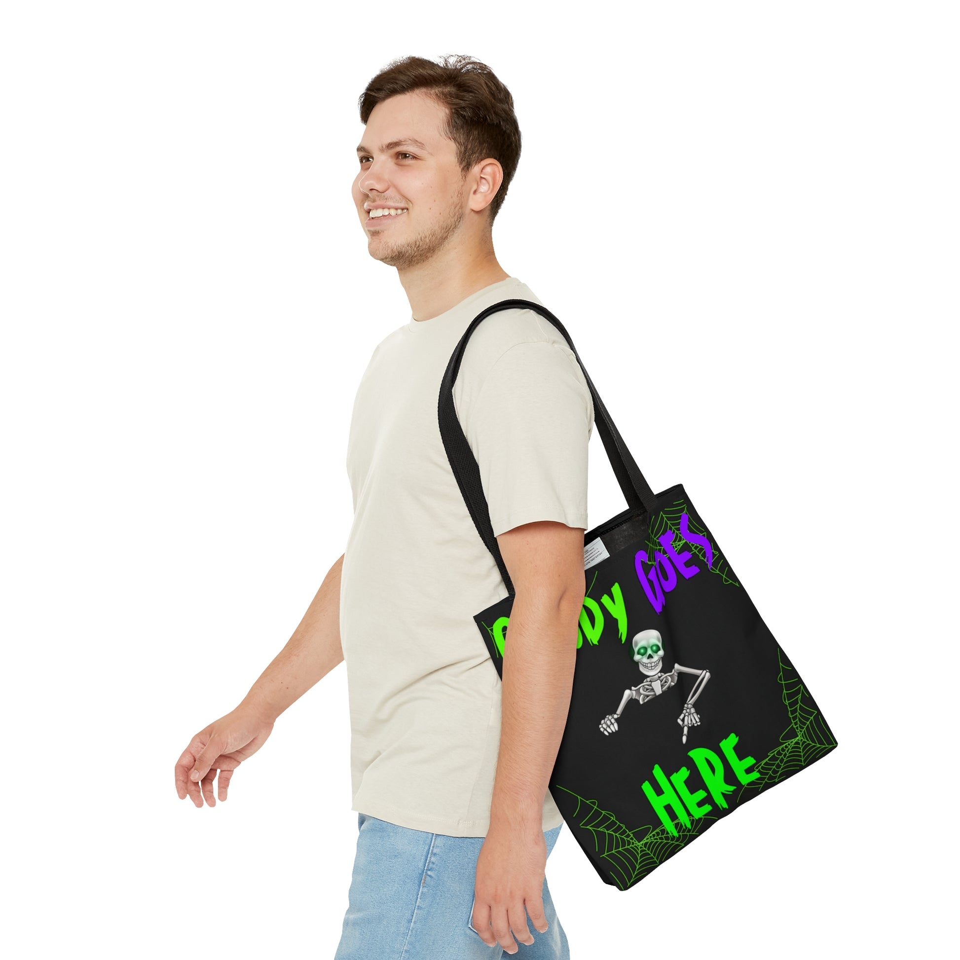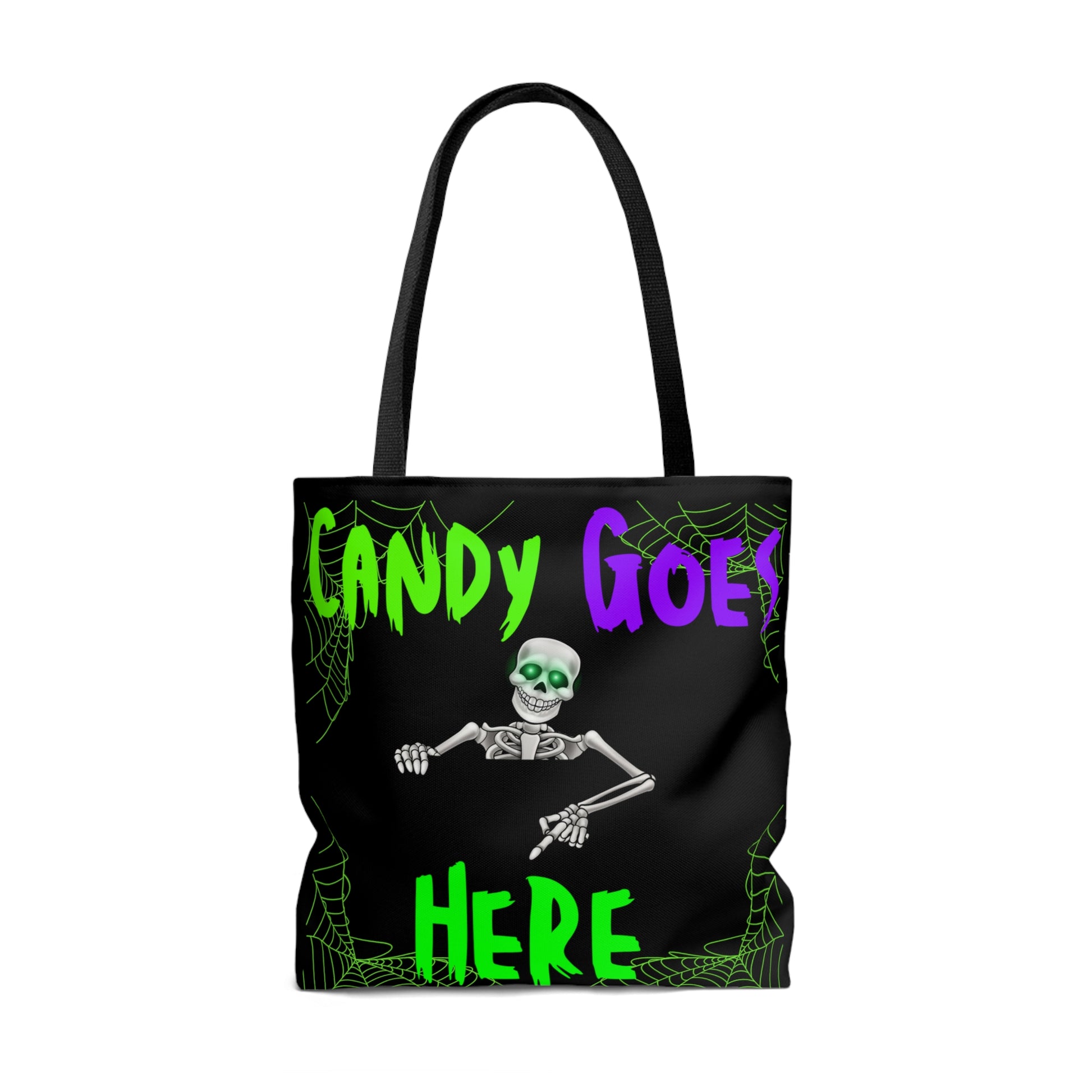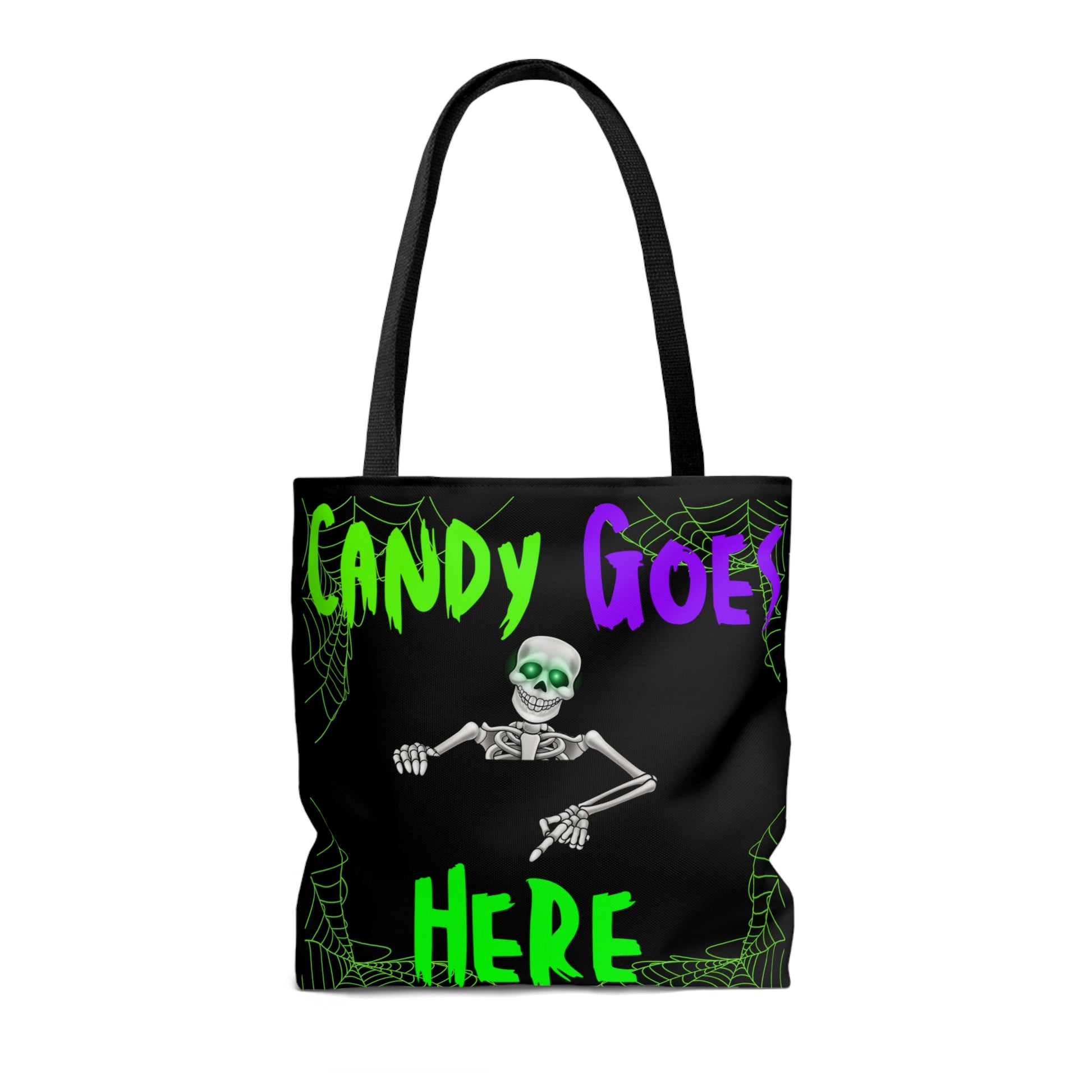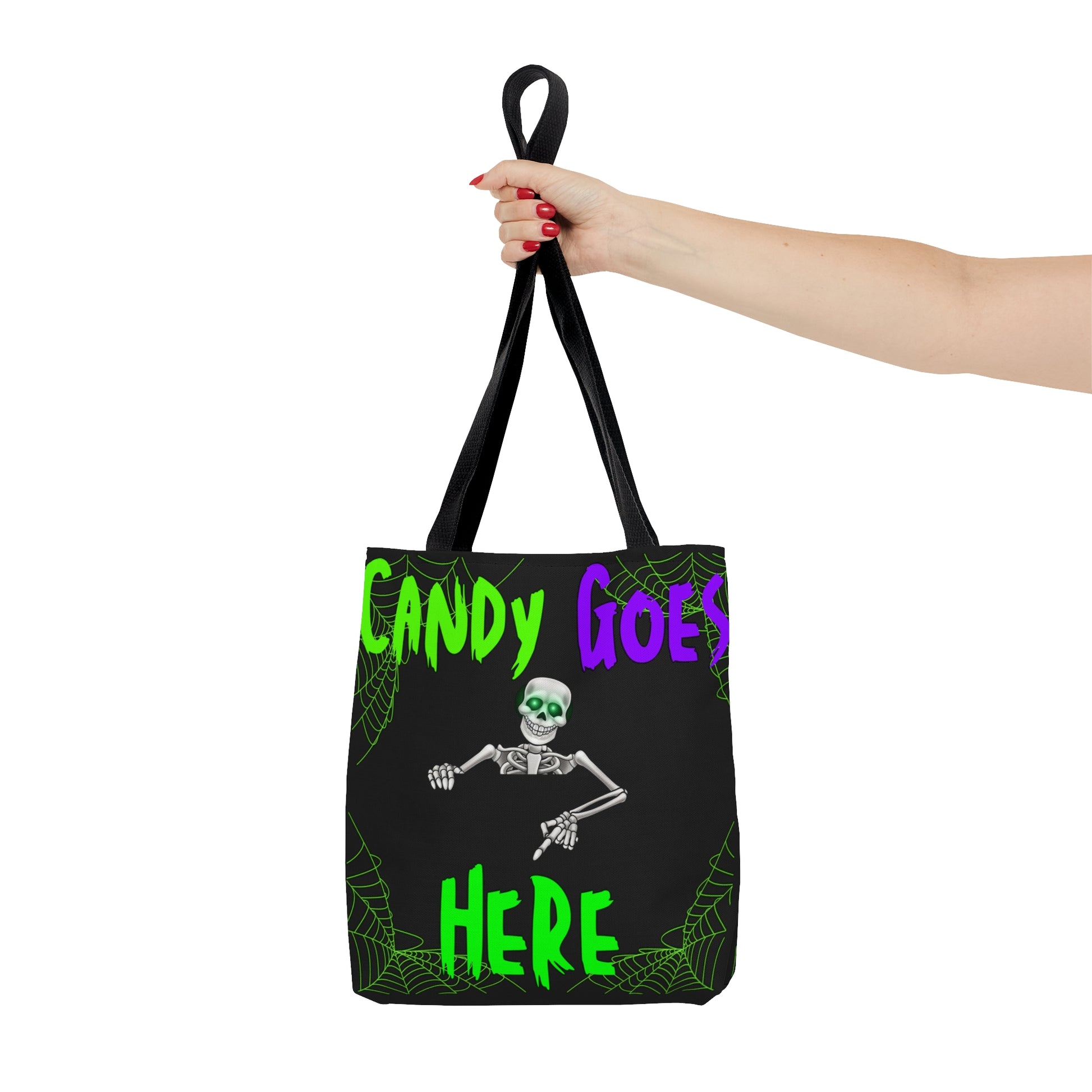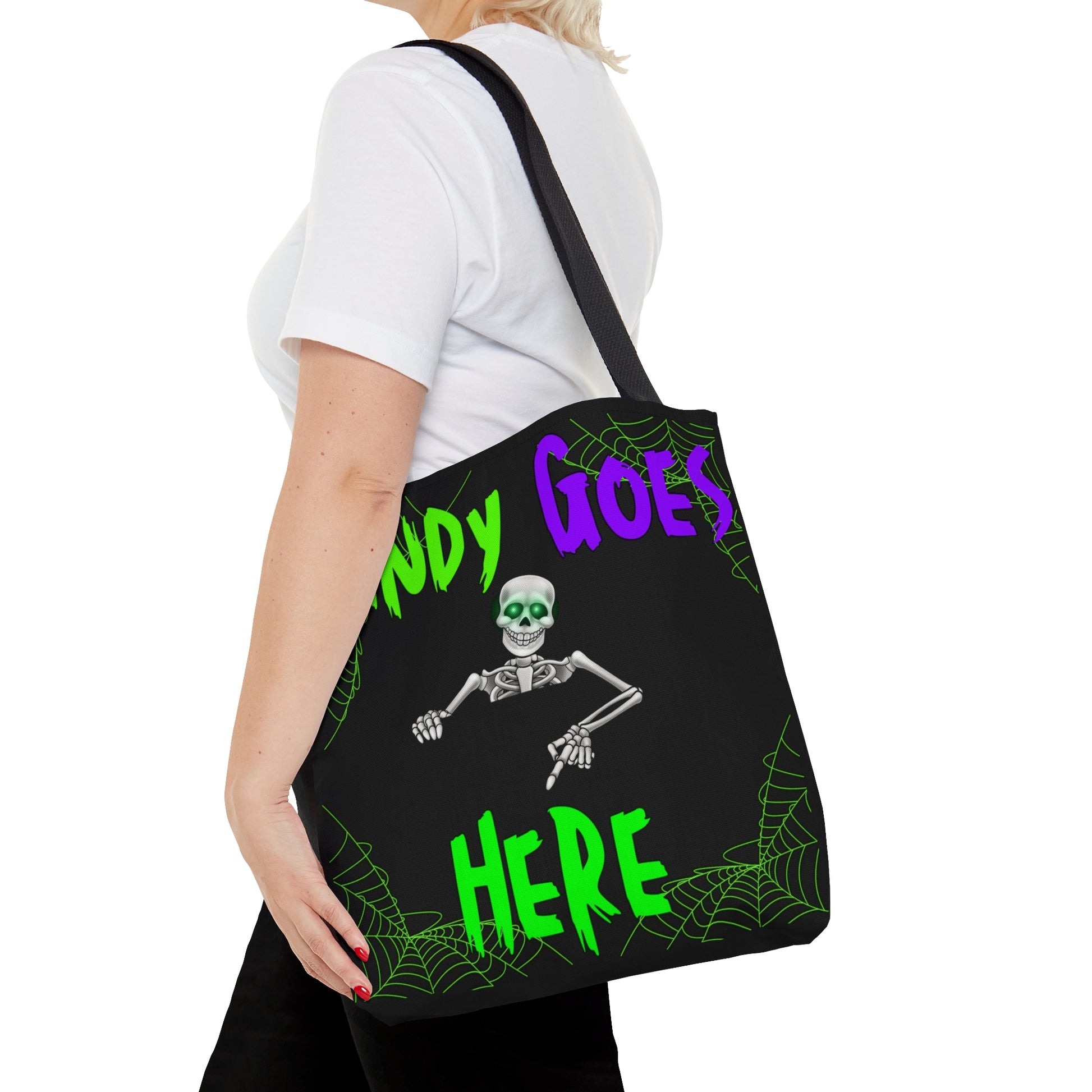 Candy Goes Here, Skeleton Halloween candy Tote Bag