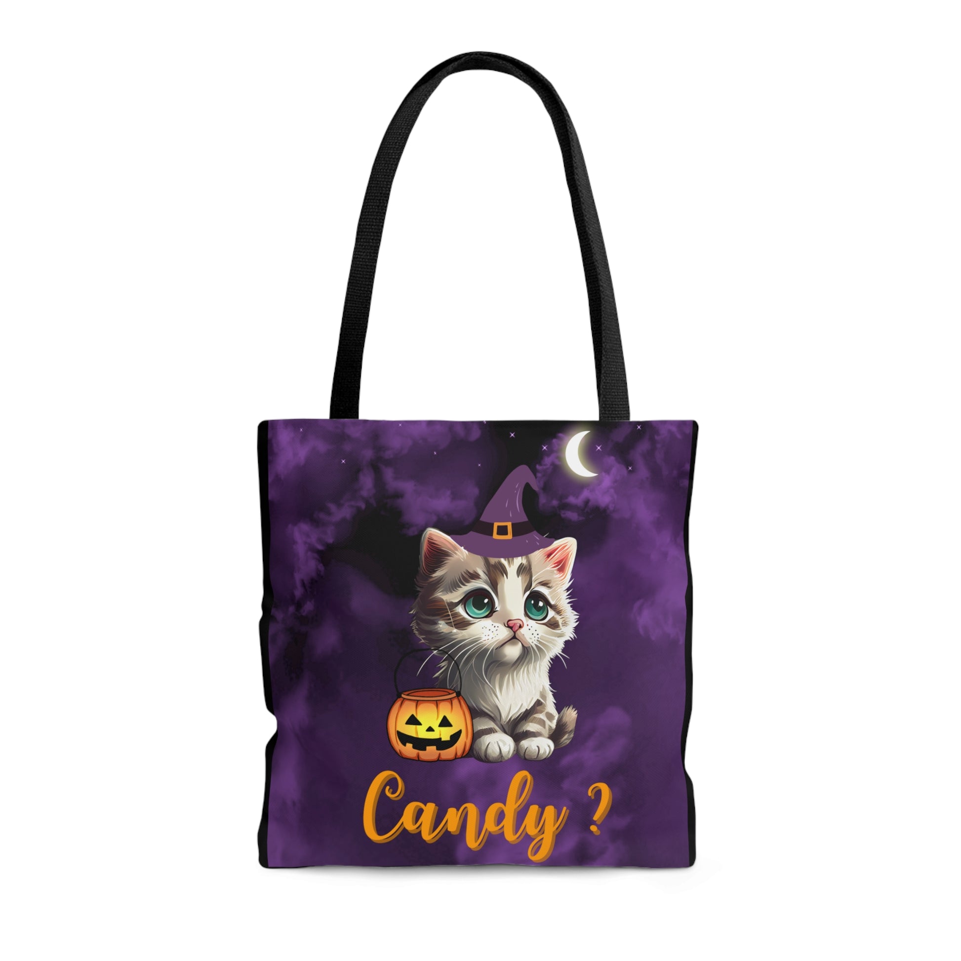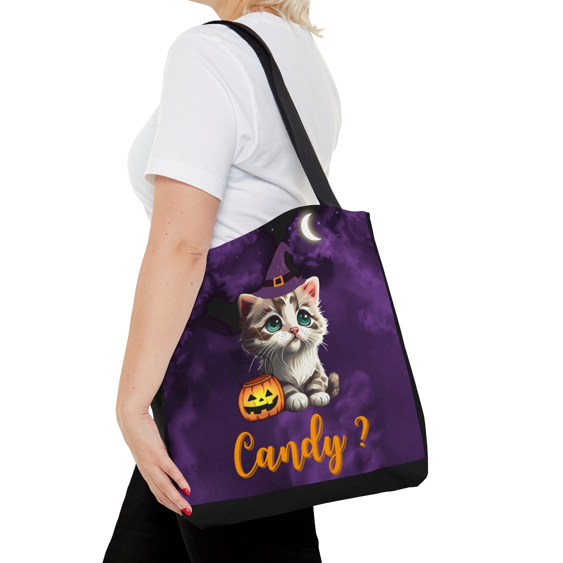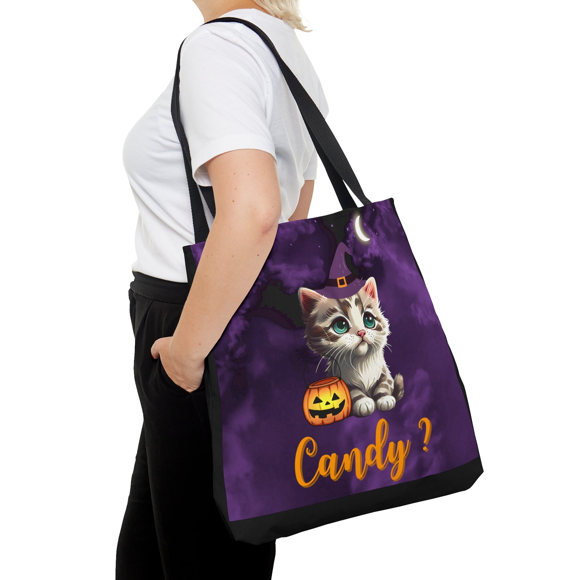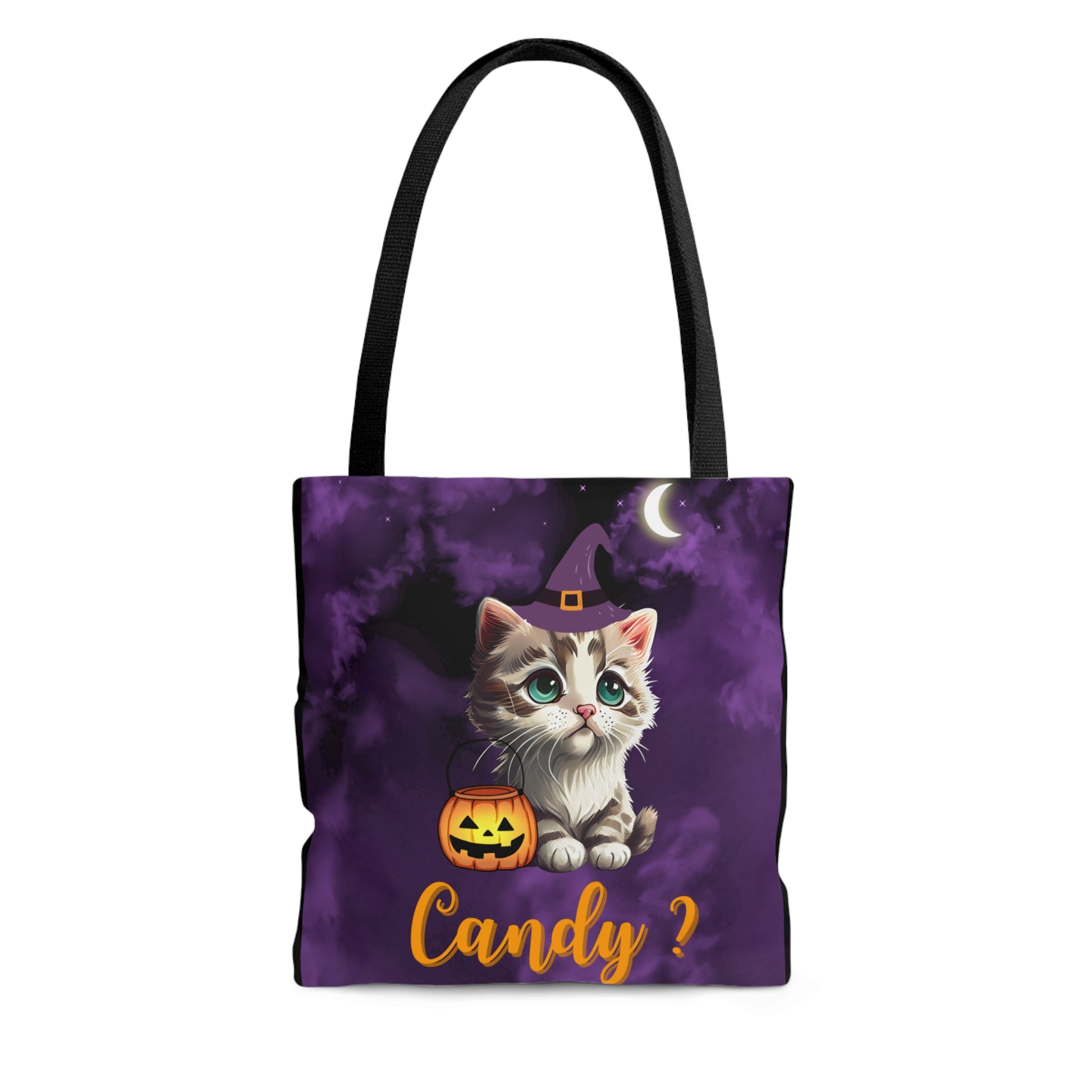 Candy Halloween Tote Bag, Cute Witchy Cat, Candy Tote Bag