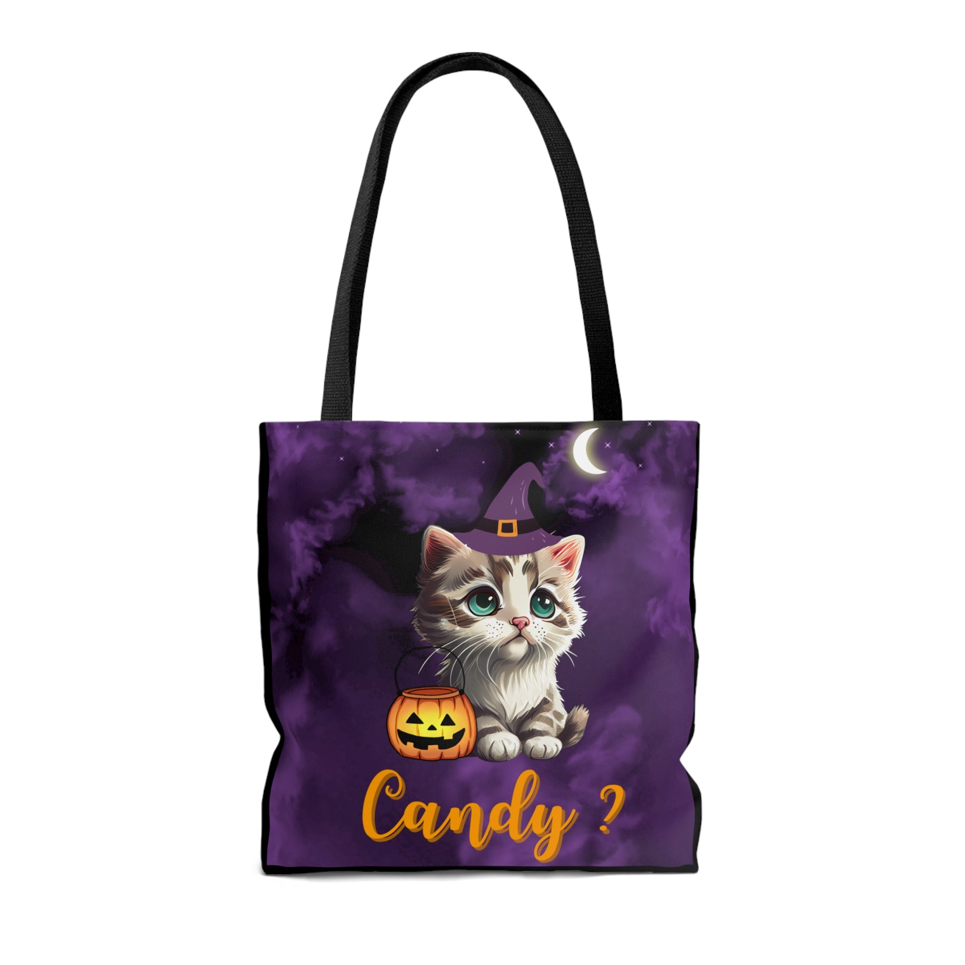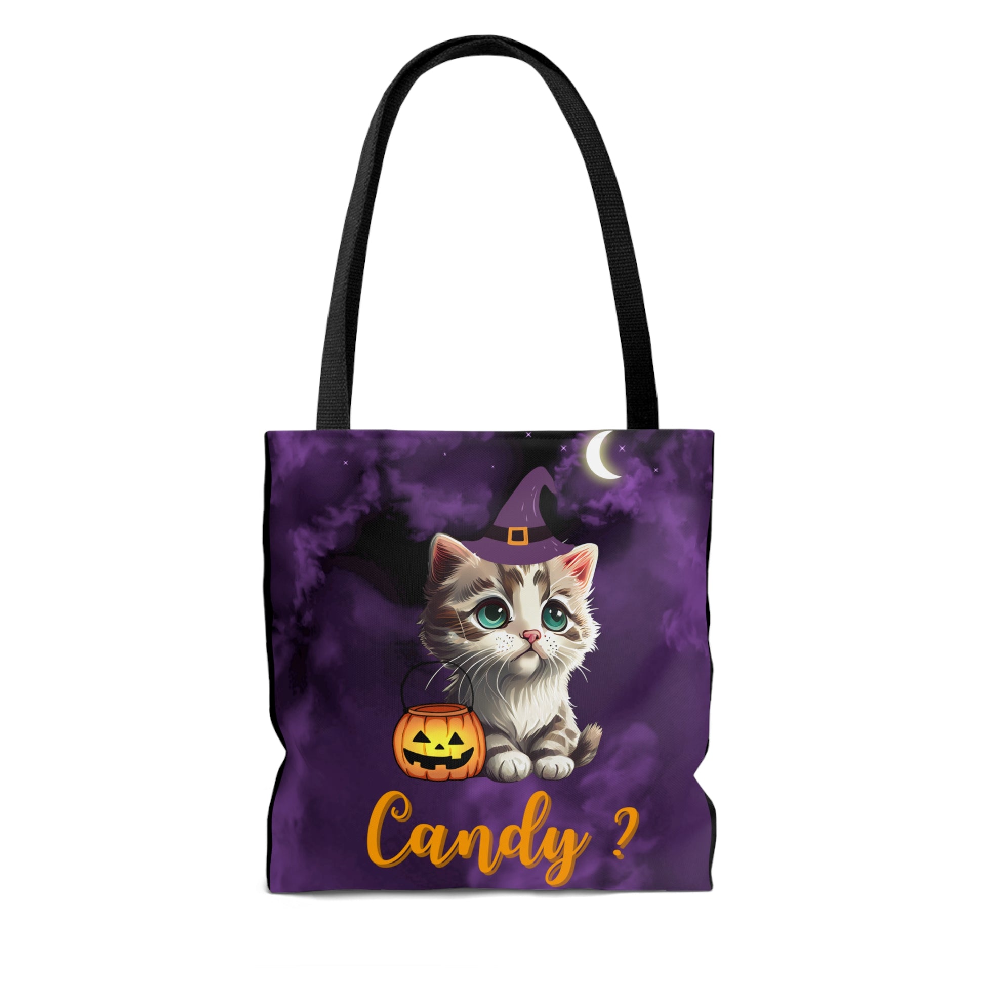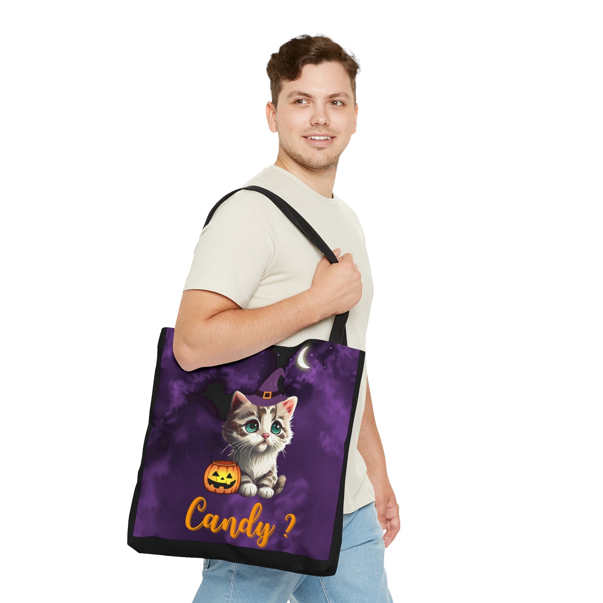 Candy Halloween Tote Bag, Cute Witchy Cat, Candy Tote Bag