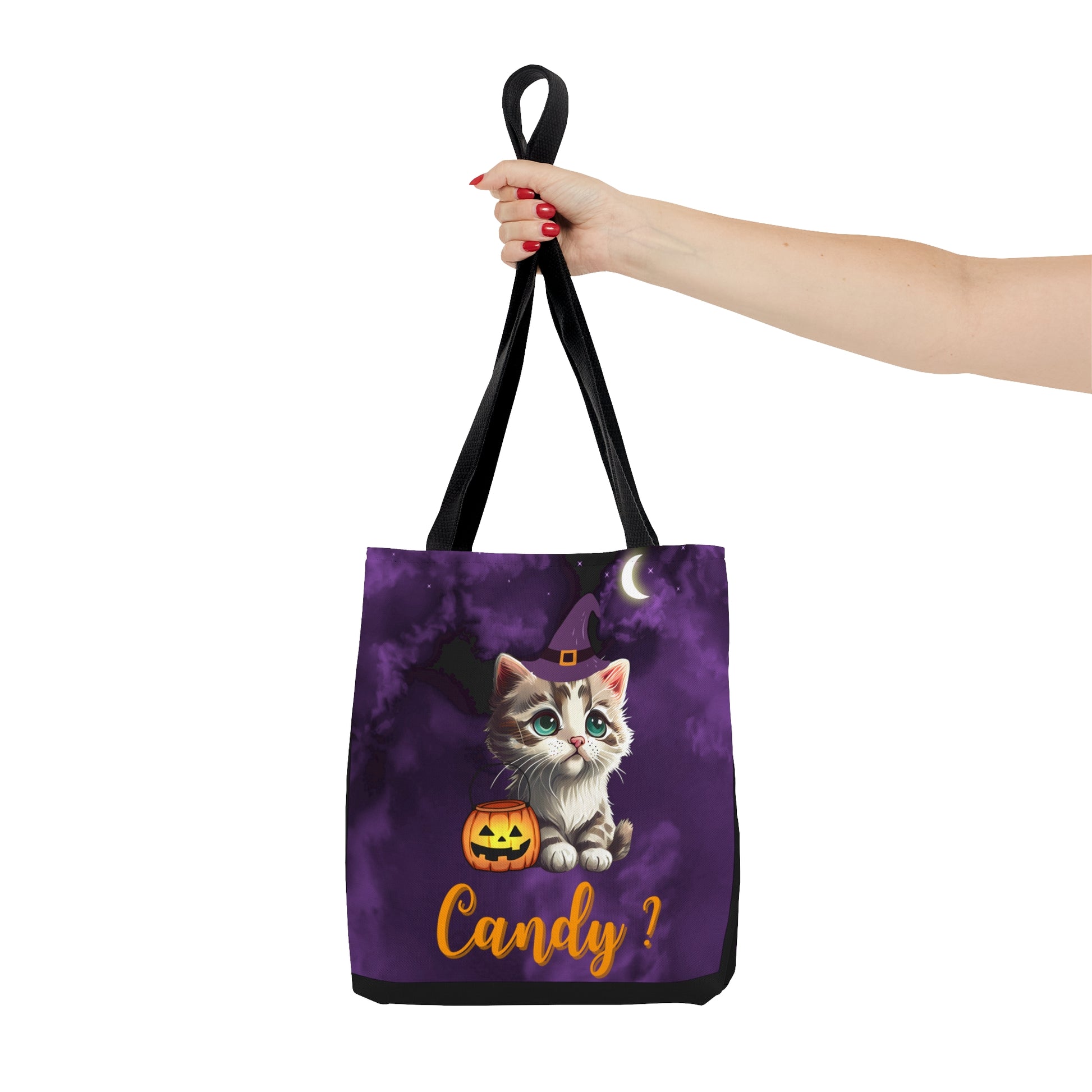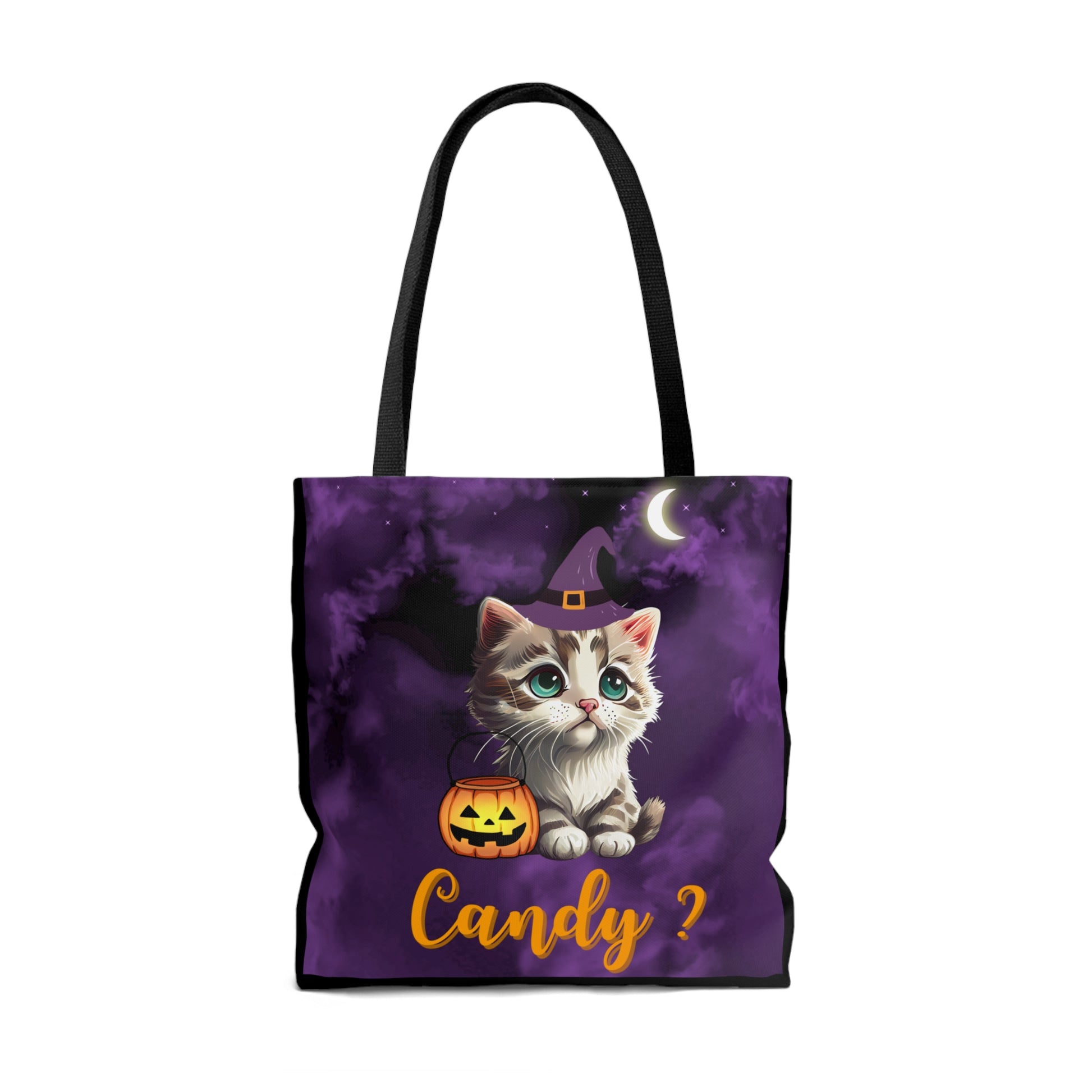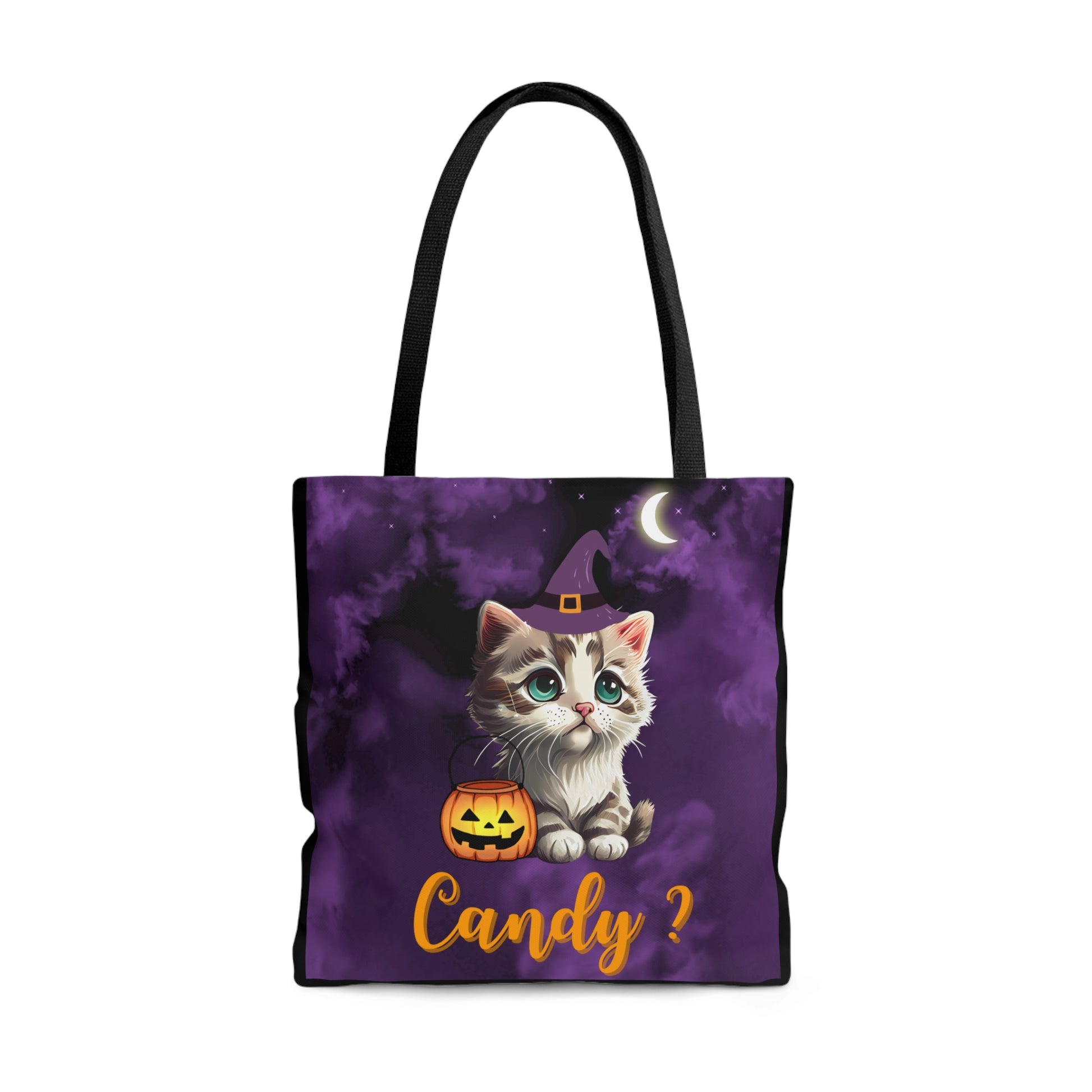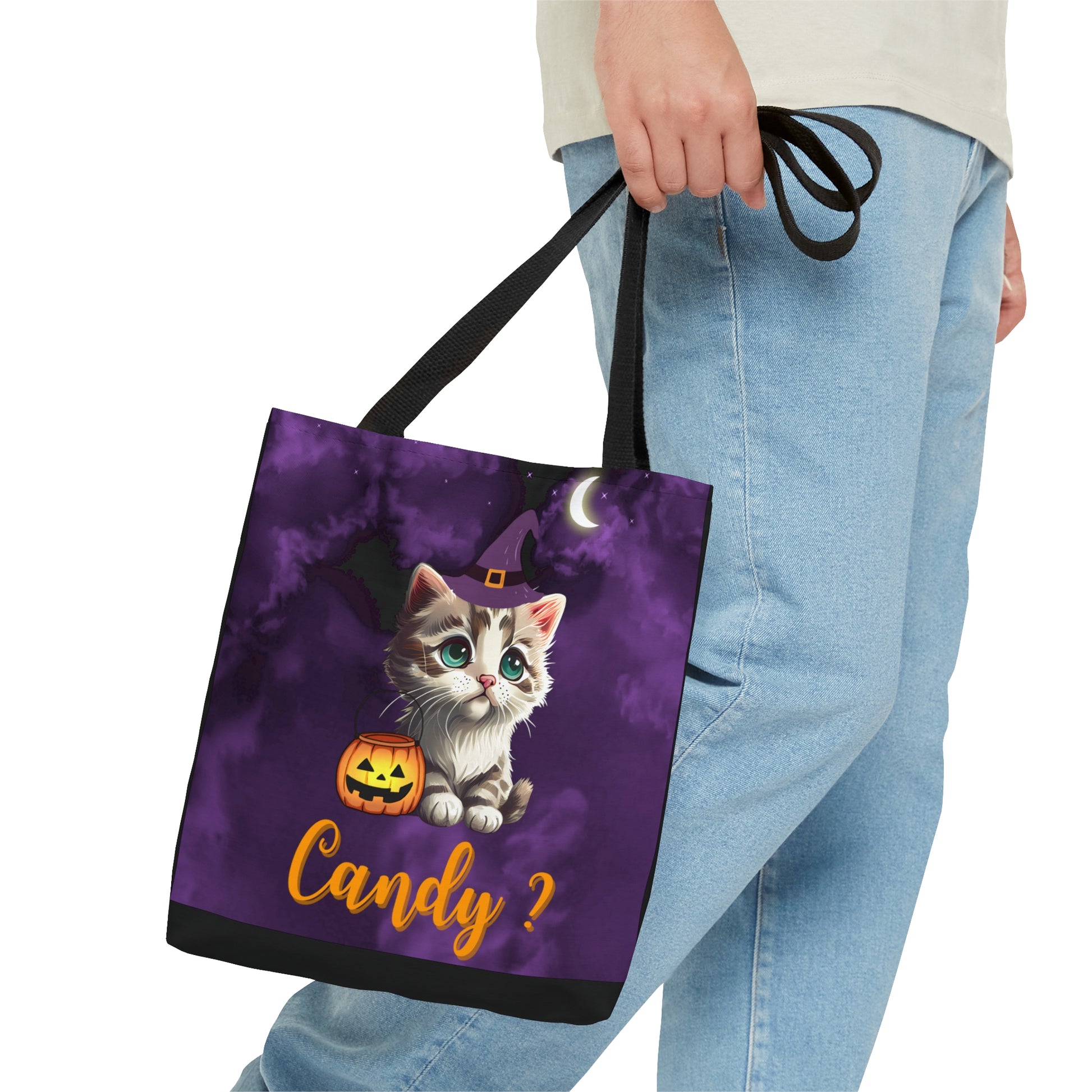 Candy Halloween Tote Bag, Cute Witchy Cat, Candy Tote Bag