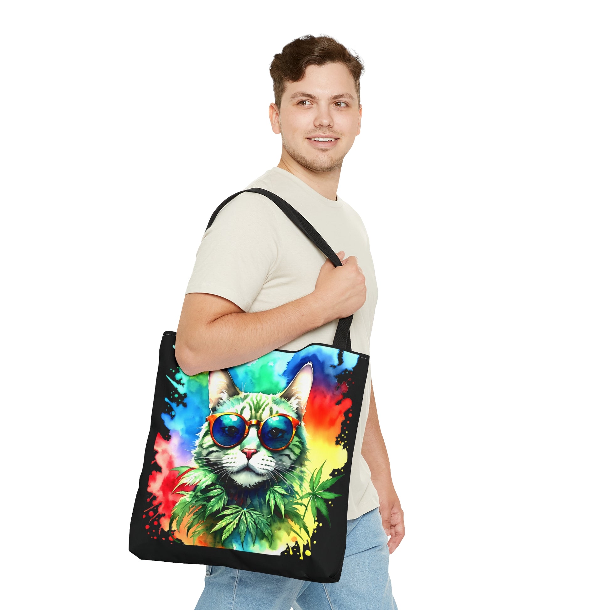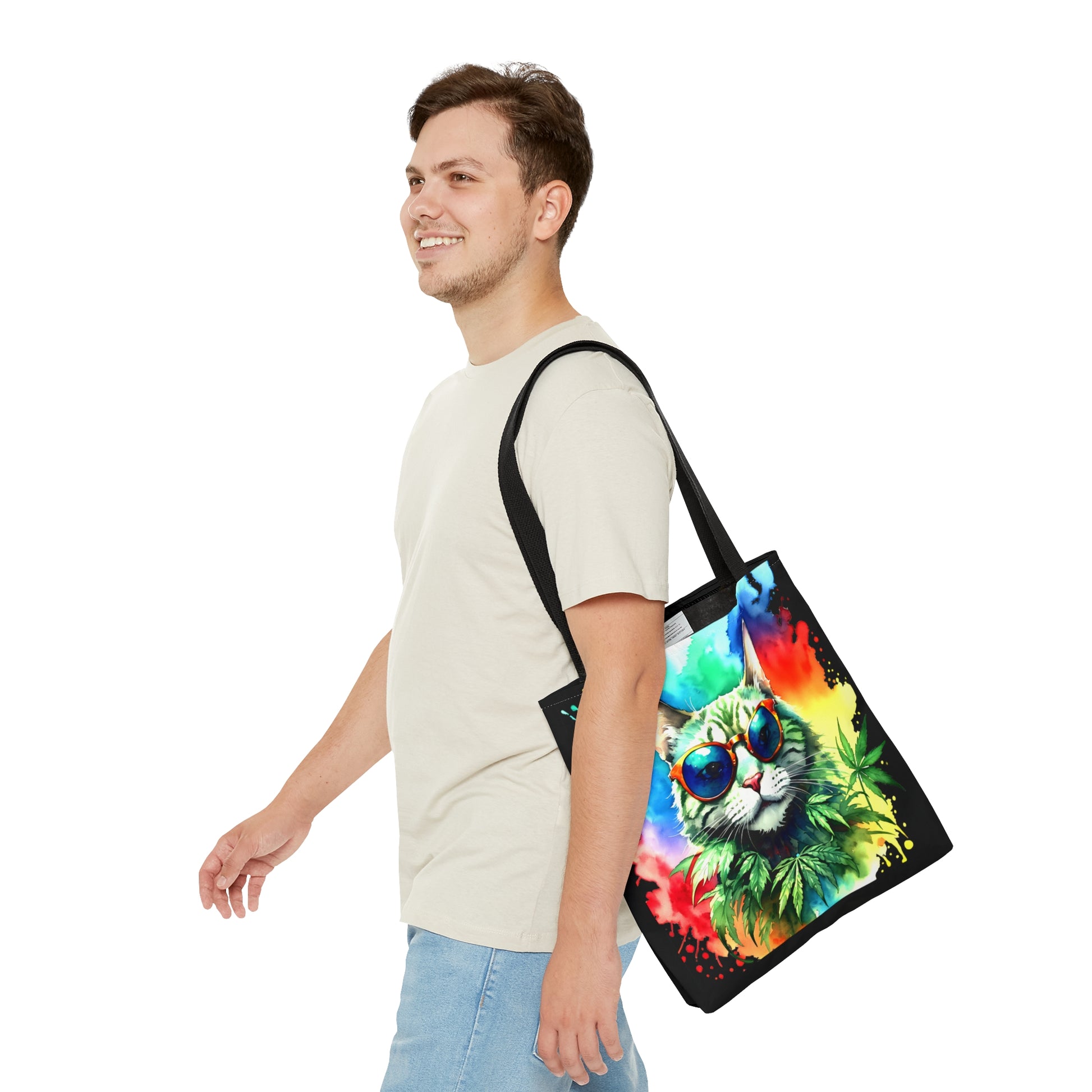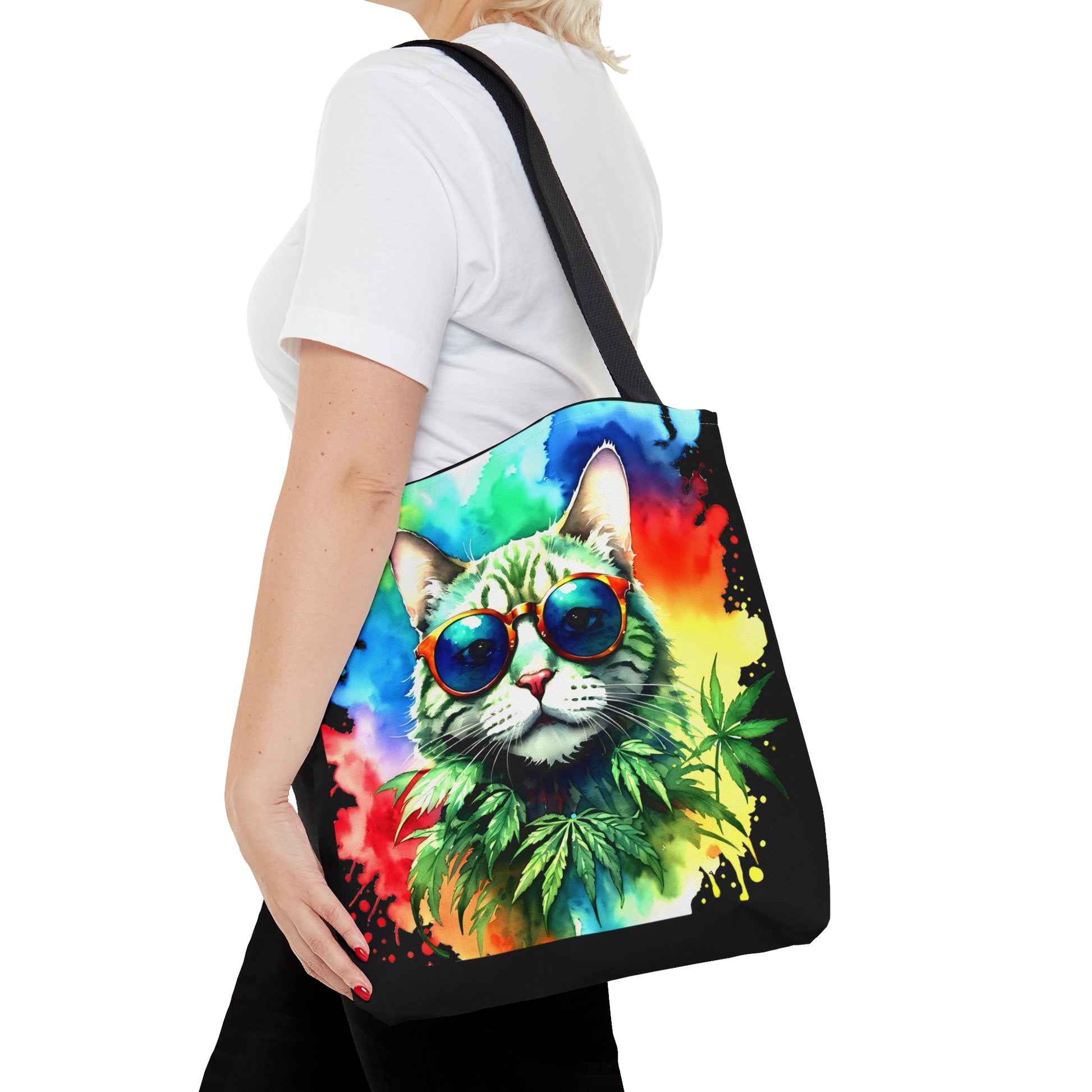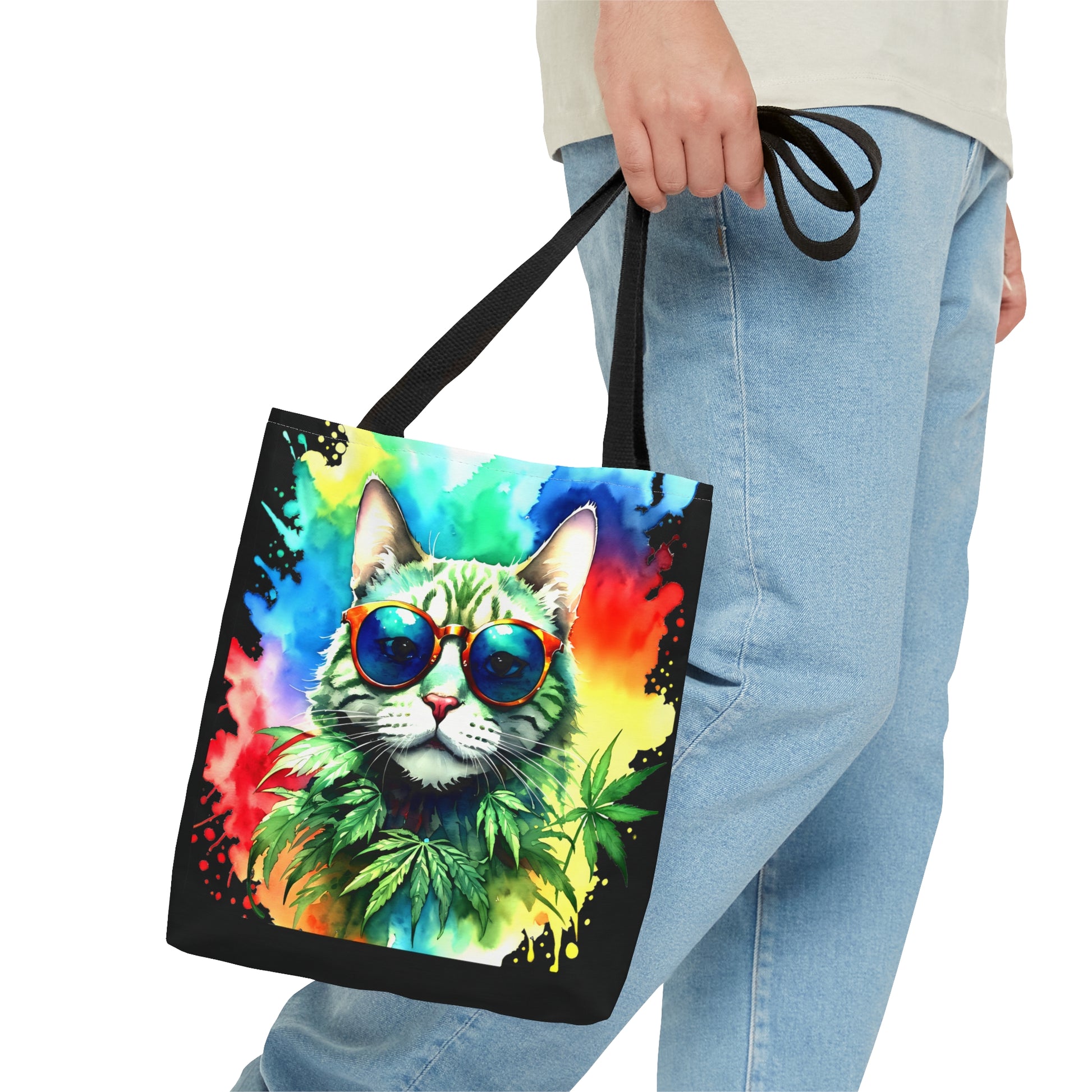 Chasing The Rainbow Cat, 420 Themed, Tote Bag