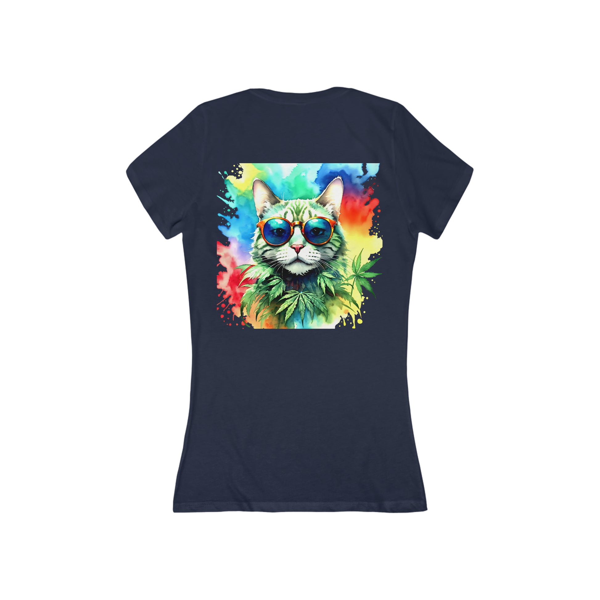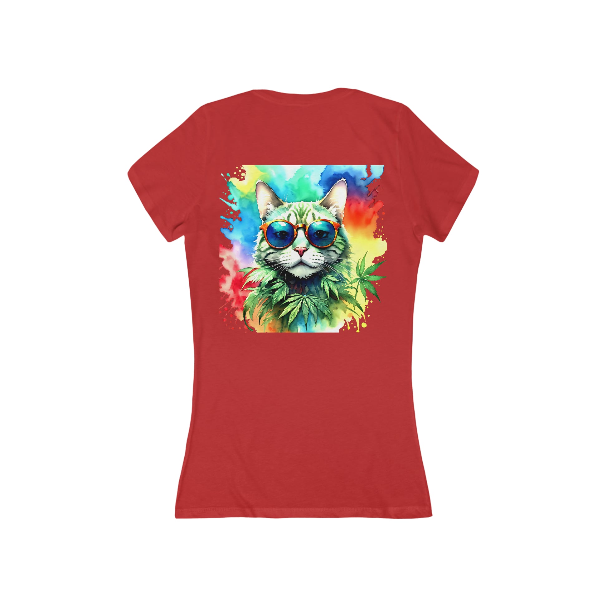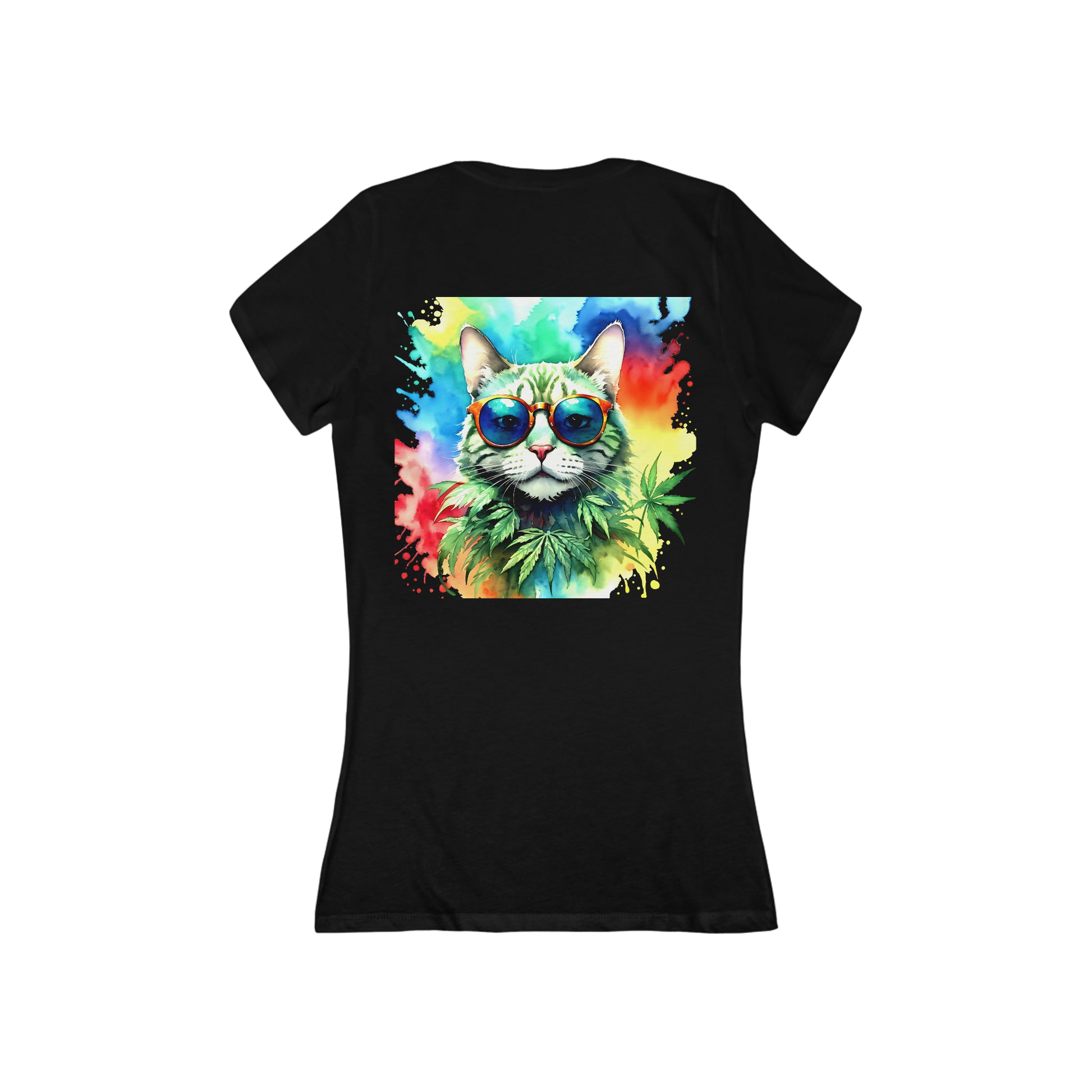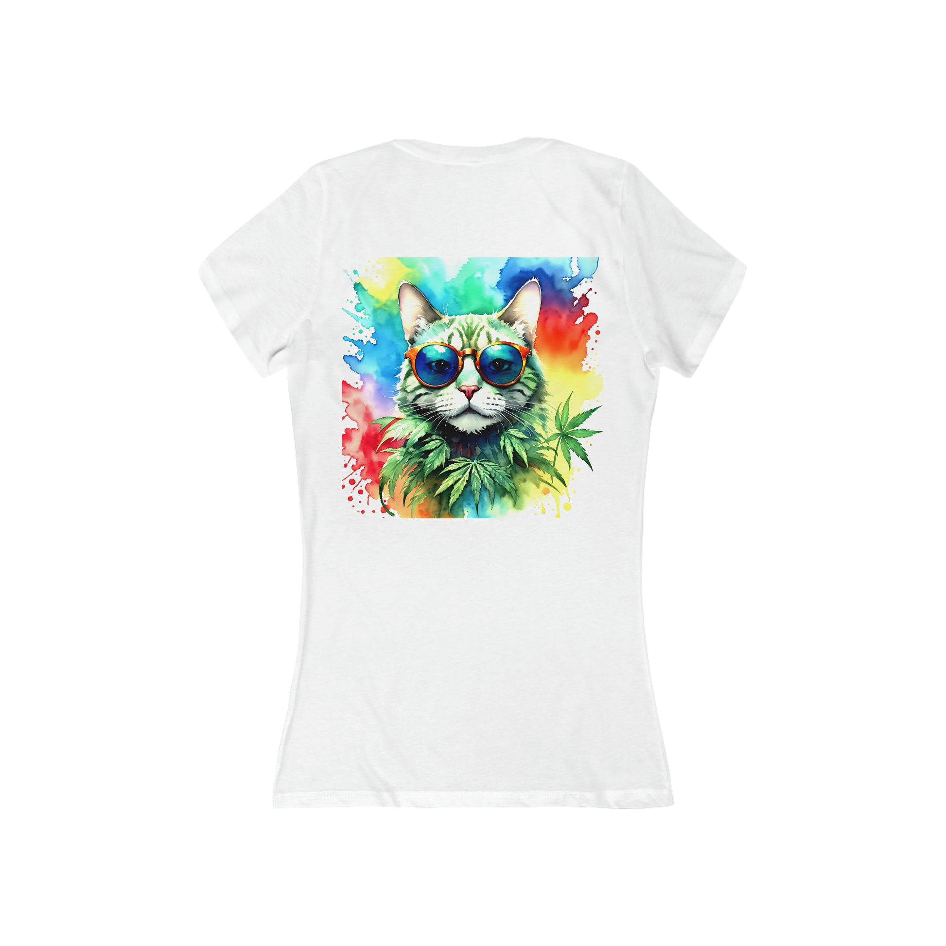 Chasing The Rainbow Cat, Women's Jersey Short Sleeve Deep V-Neck Tee