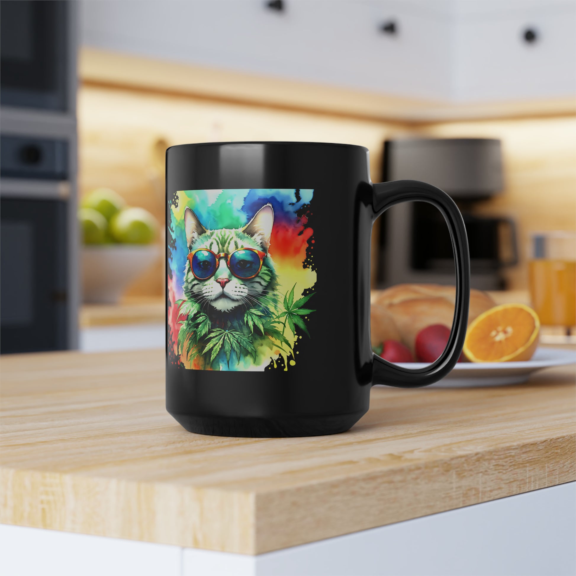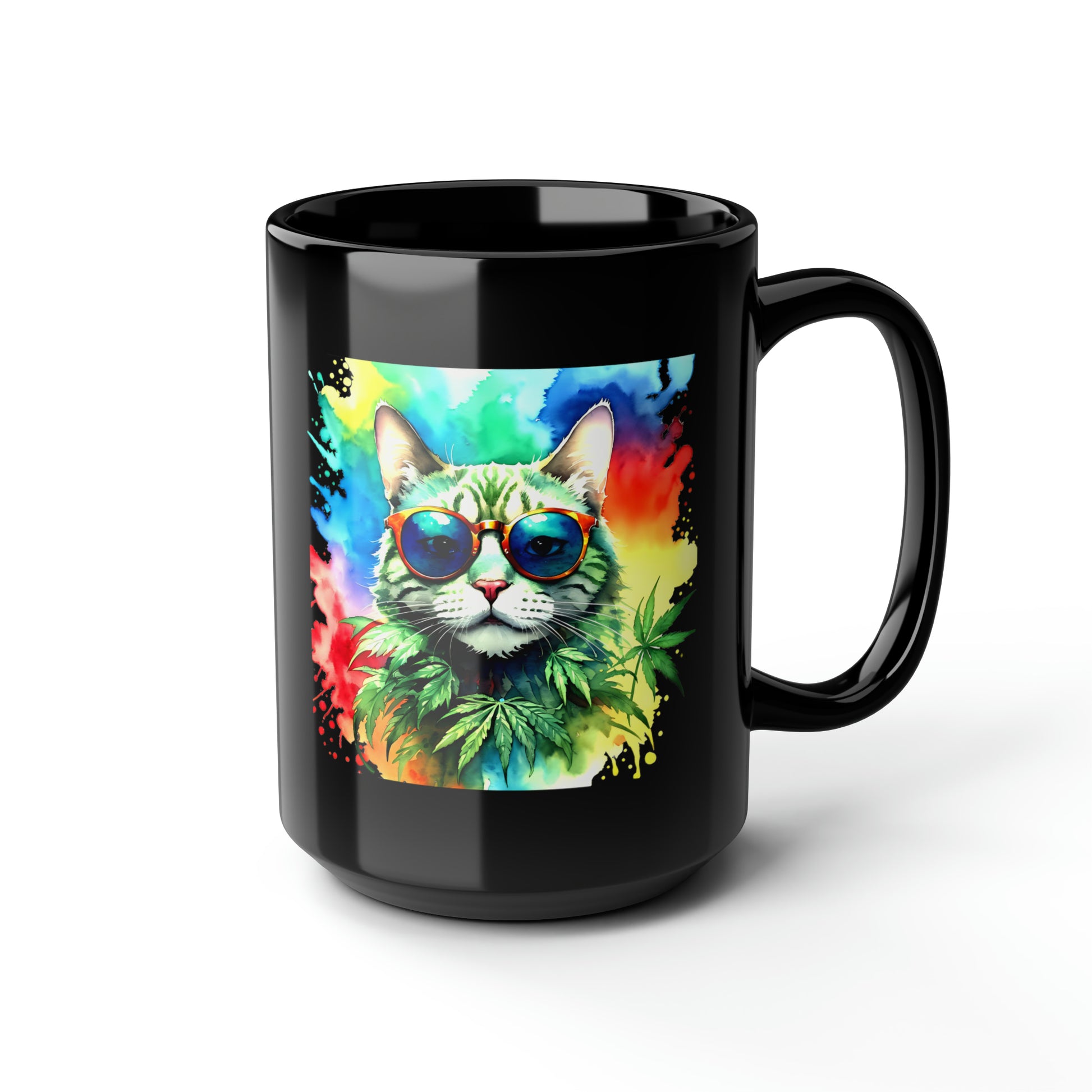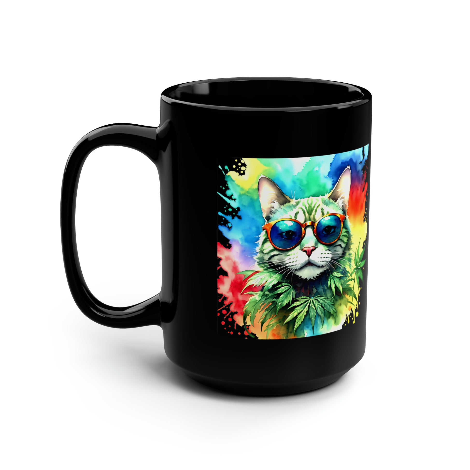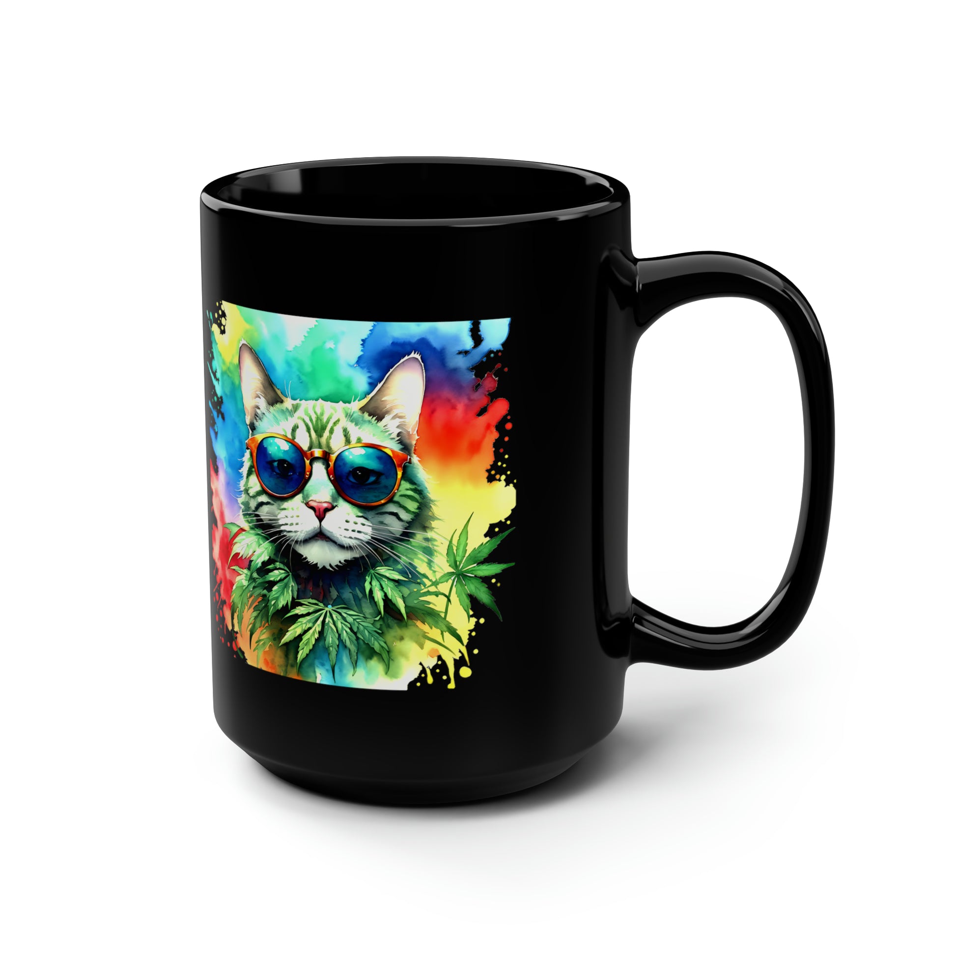ChasingThe Rainbow Cat, Black Mug, 15oz, 420 Gift