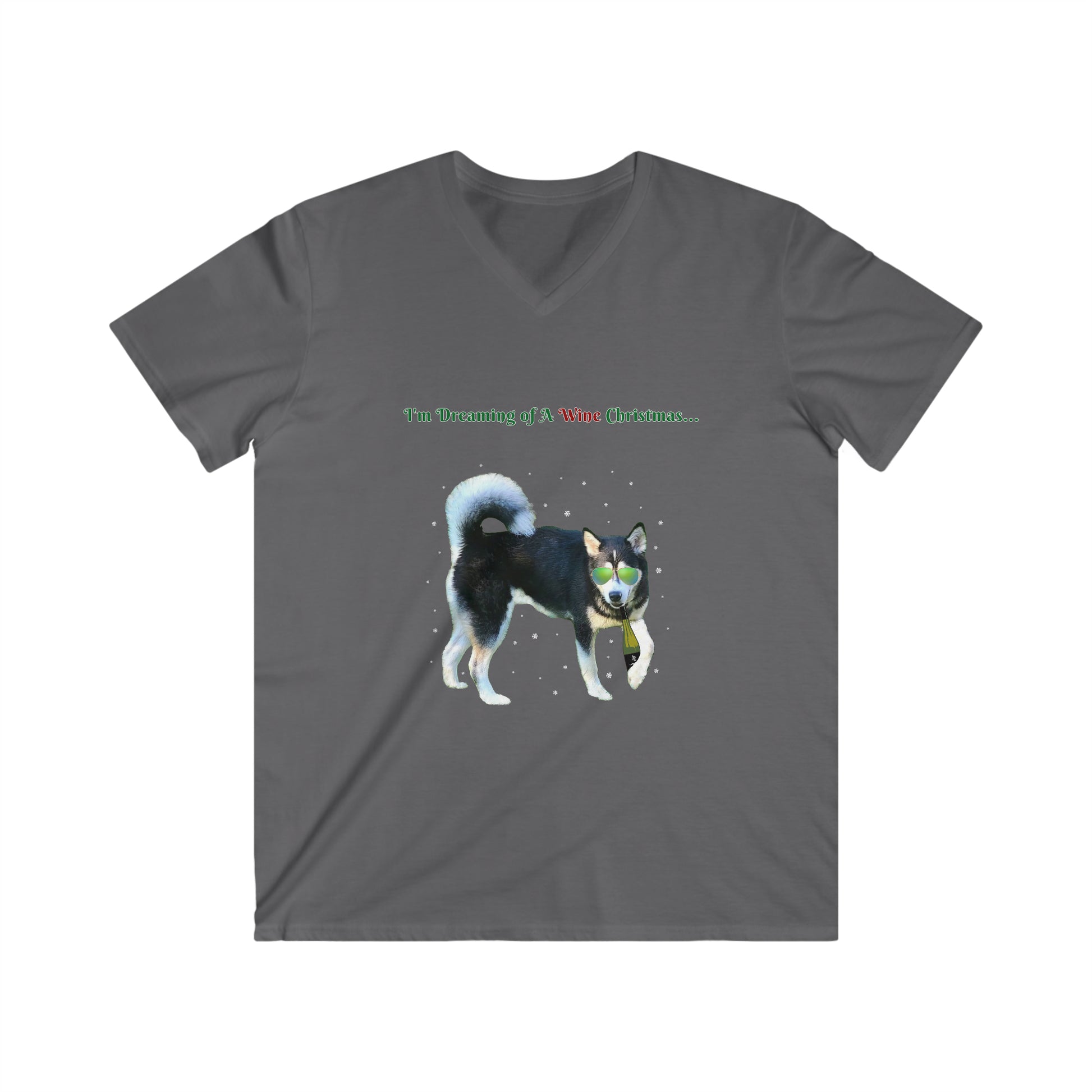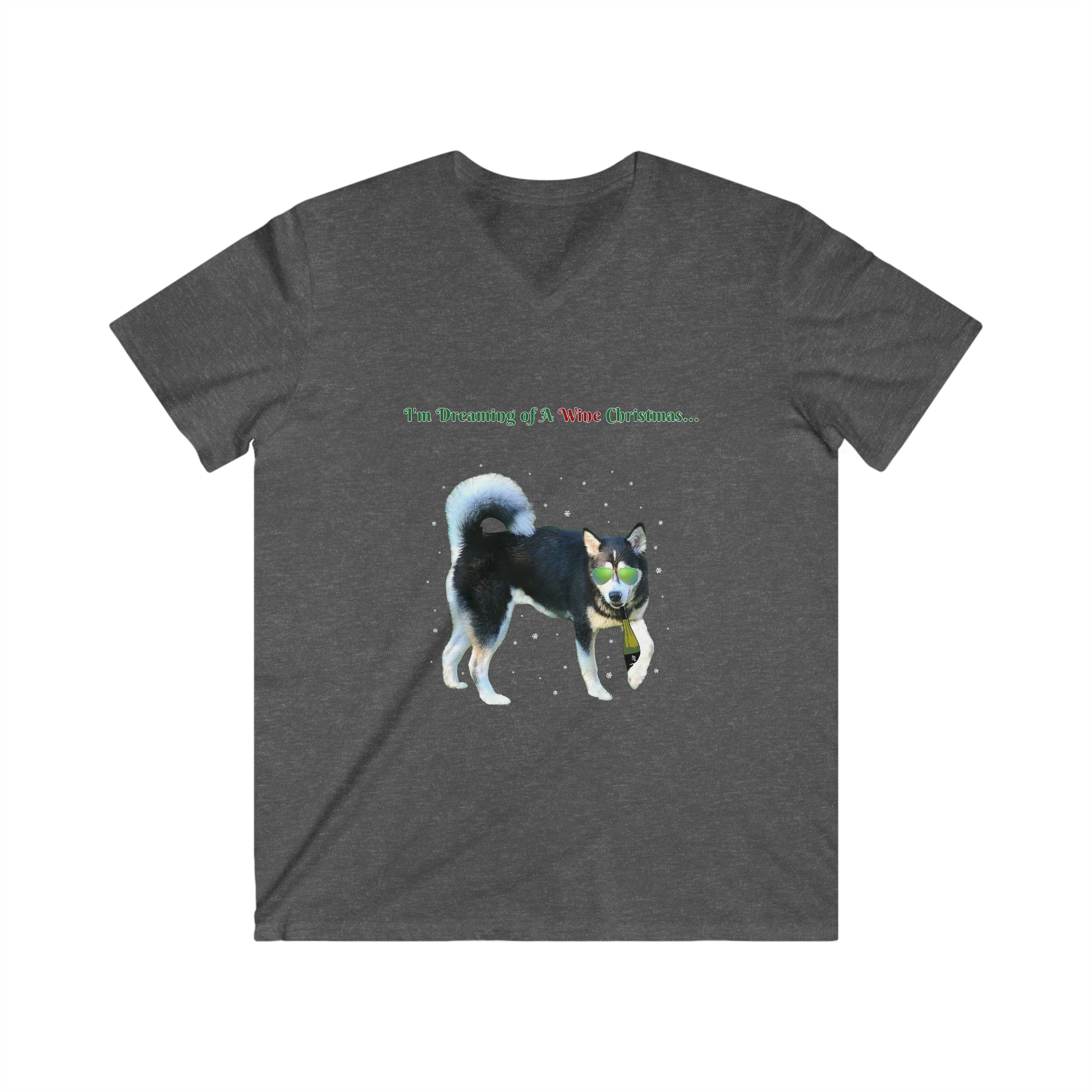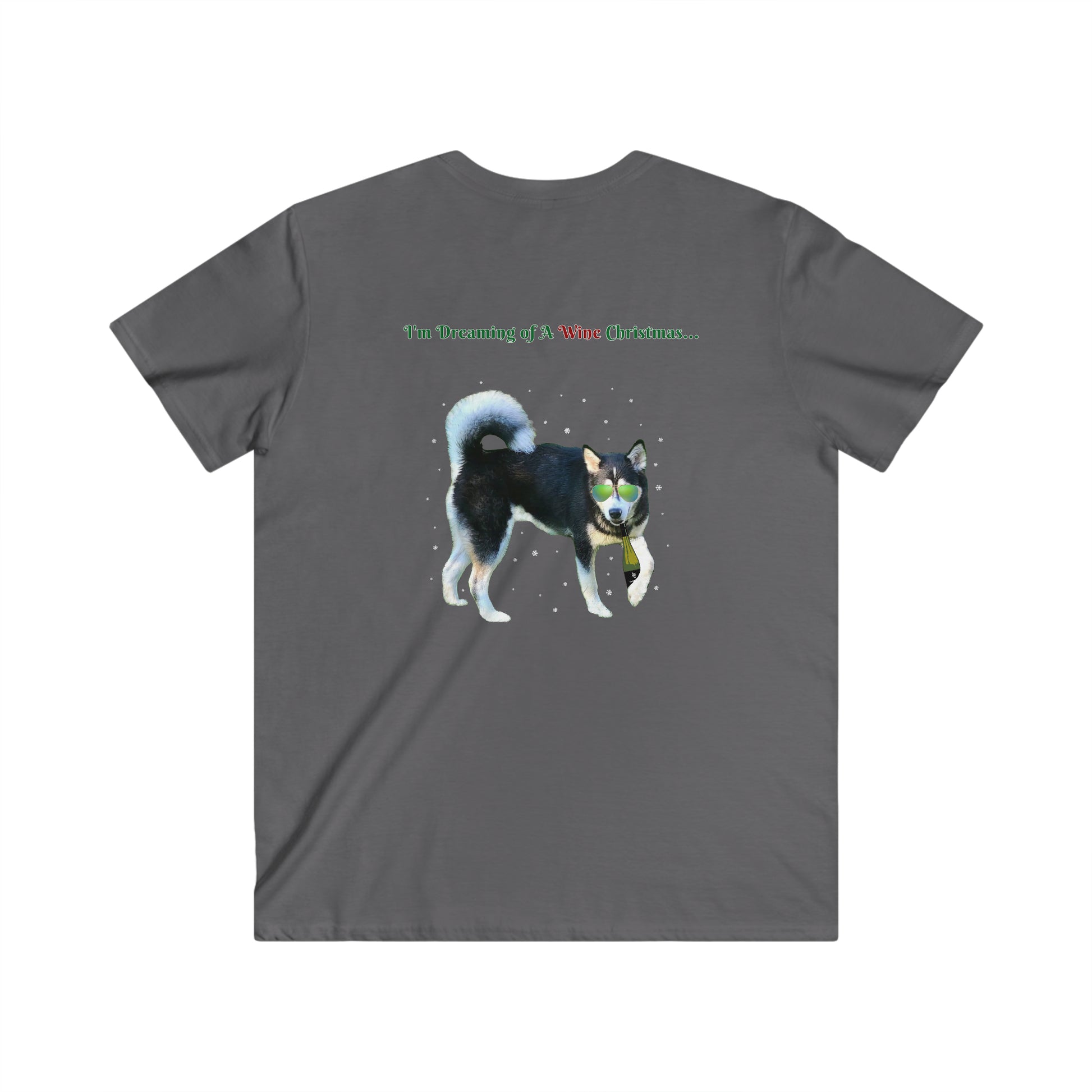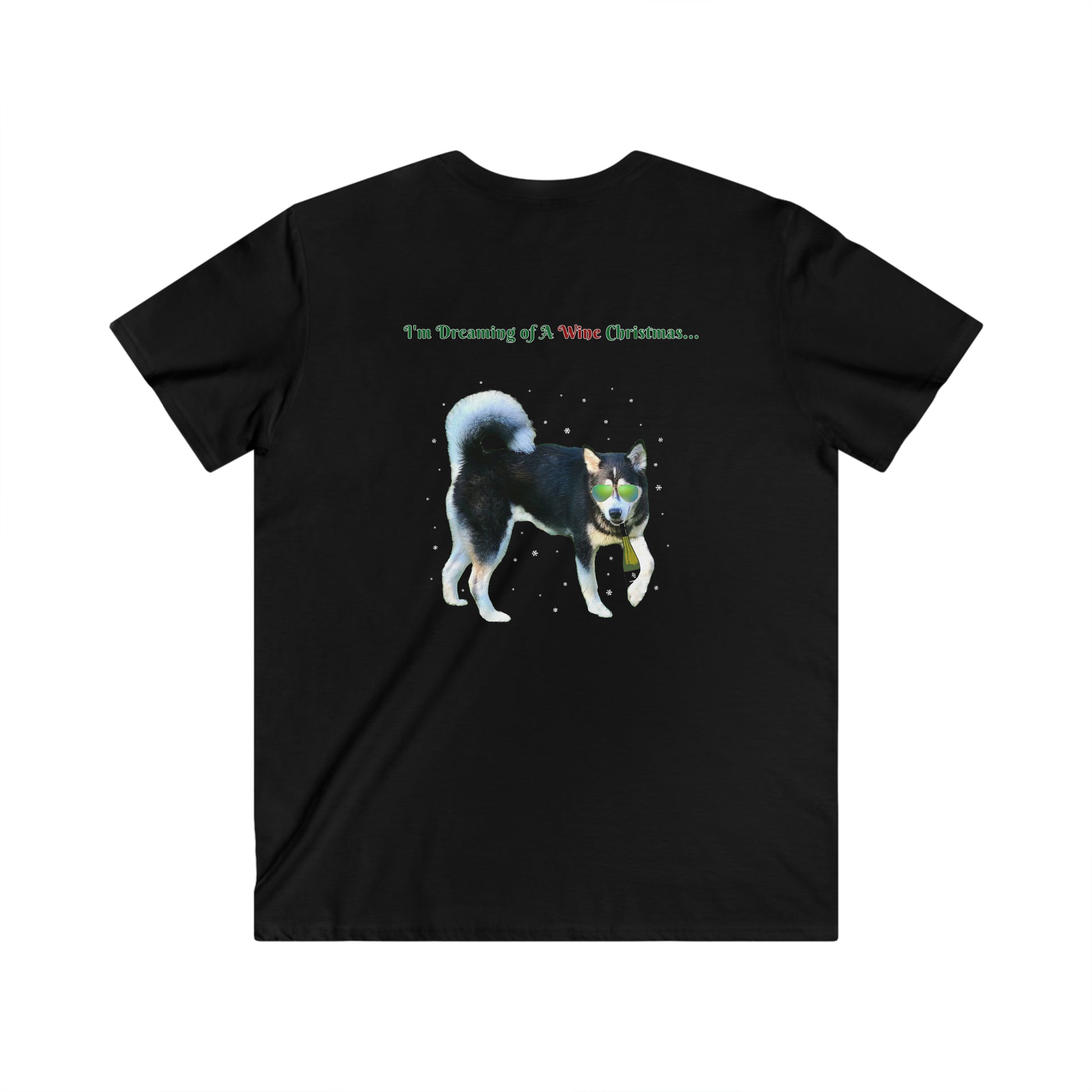 Men's Fitted V-Neck Short Sleeve Tee Dreaming of a wine Christmas ChristmasTop