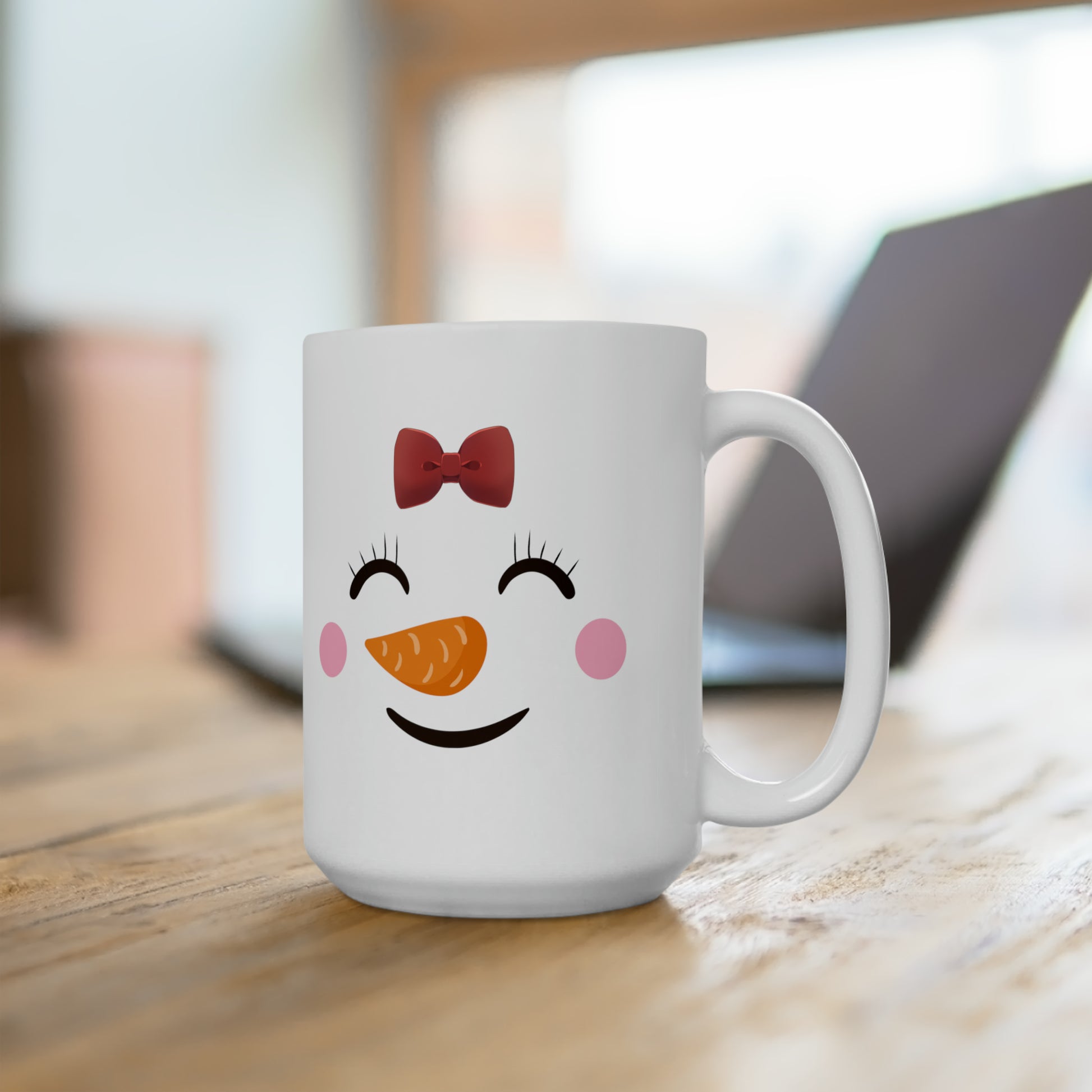 Your imagination is the limit with this large 15 ounce mug. It is microwave-safe, and can be washed in a dishwasher or easily cleaned with a mild detergent.White ceramic Rounded corners C-handle.
