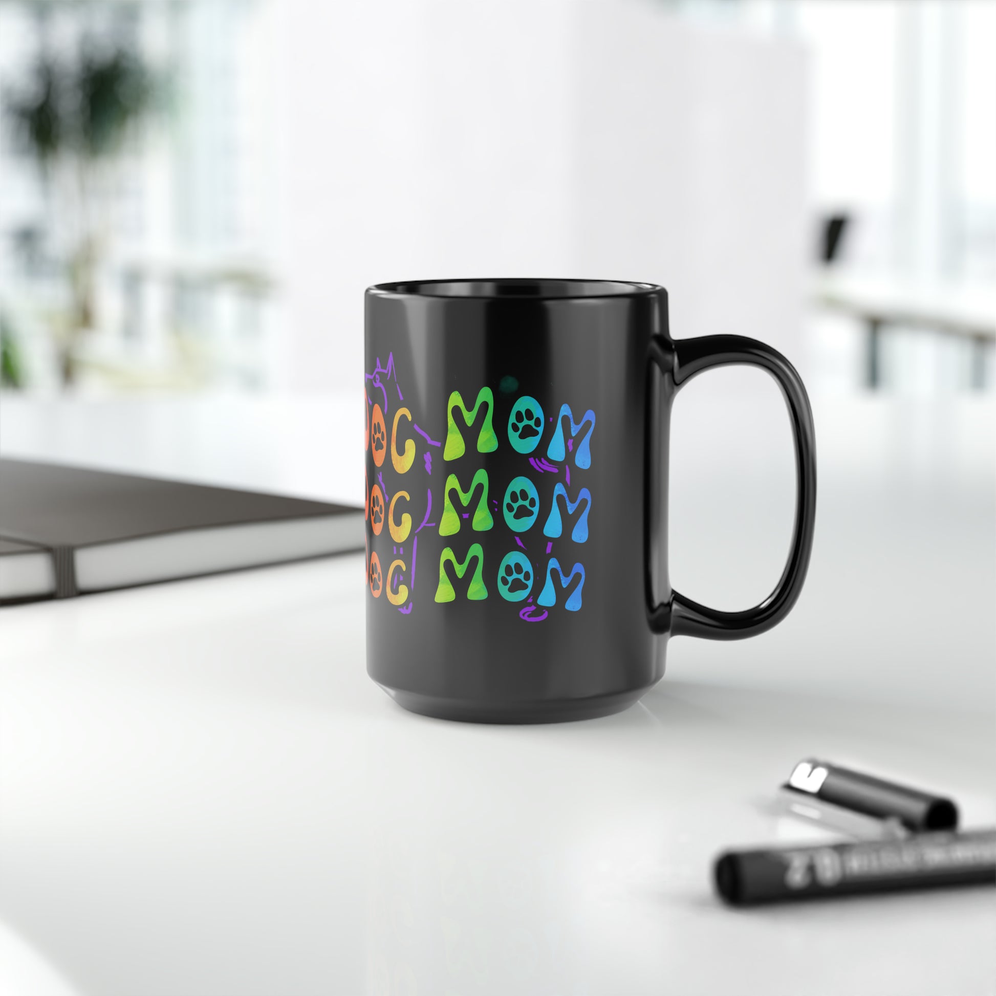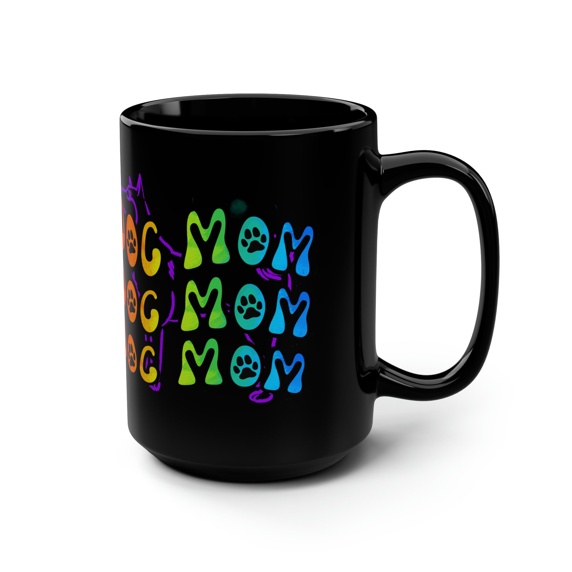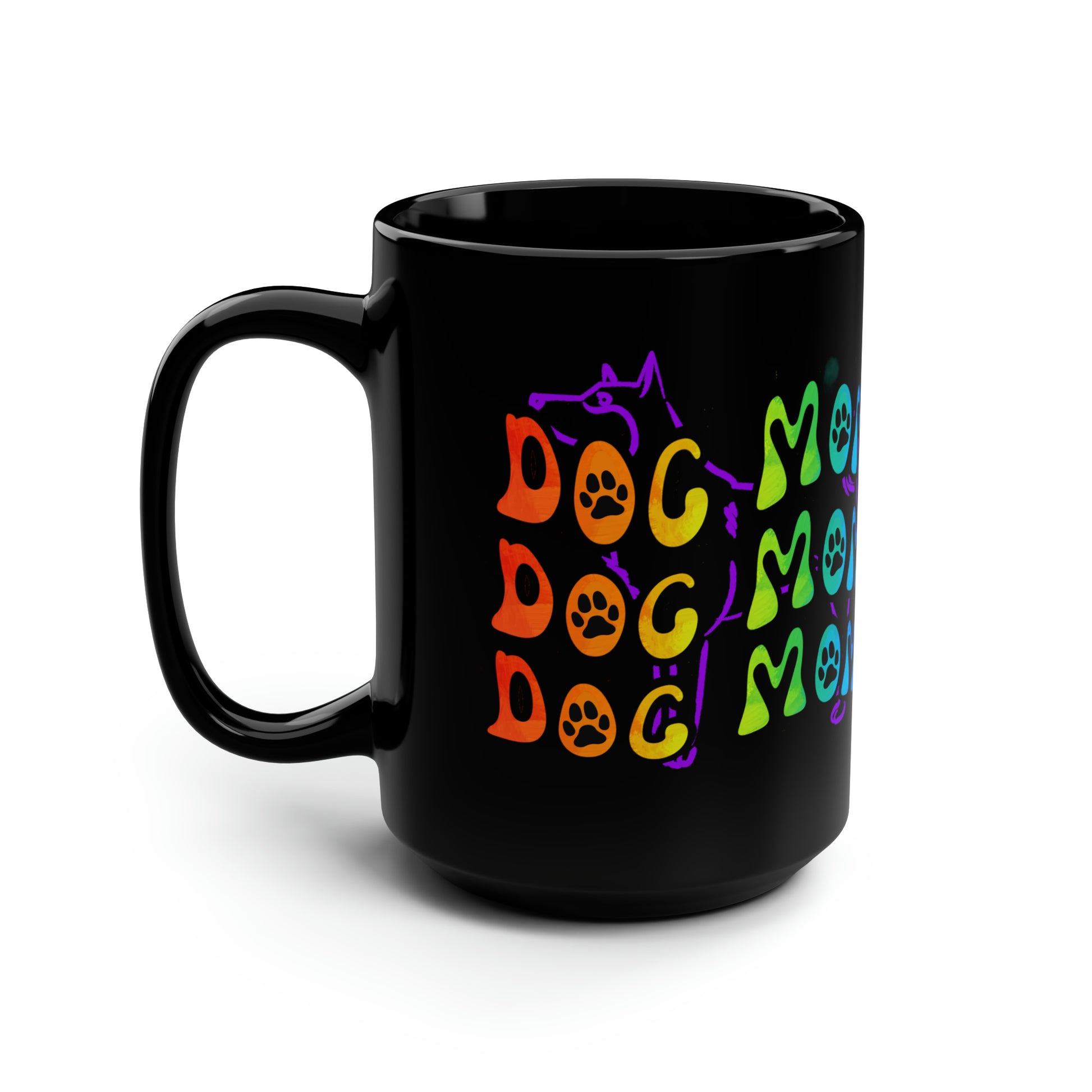 Dog Mom Black Mug, 15oz