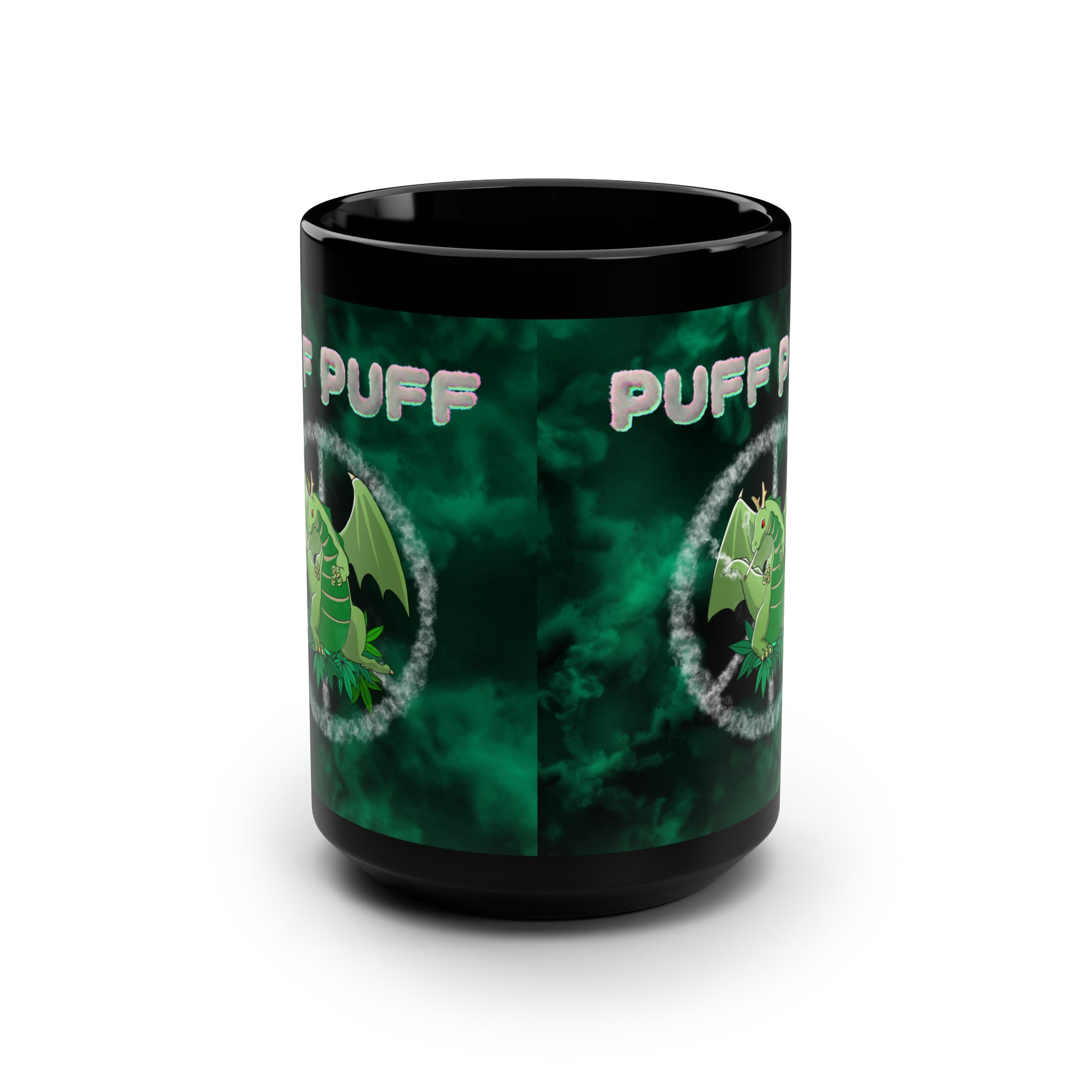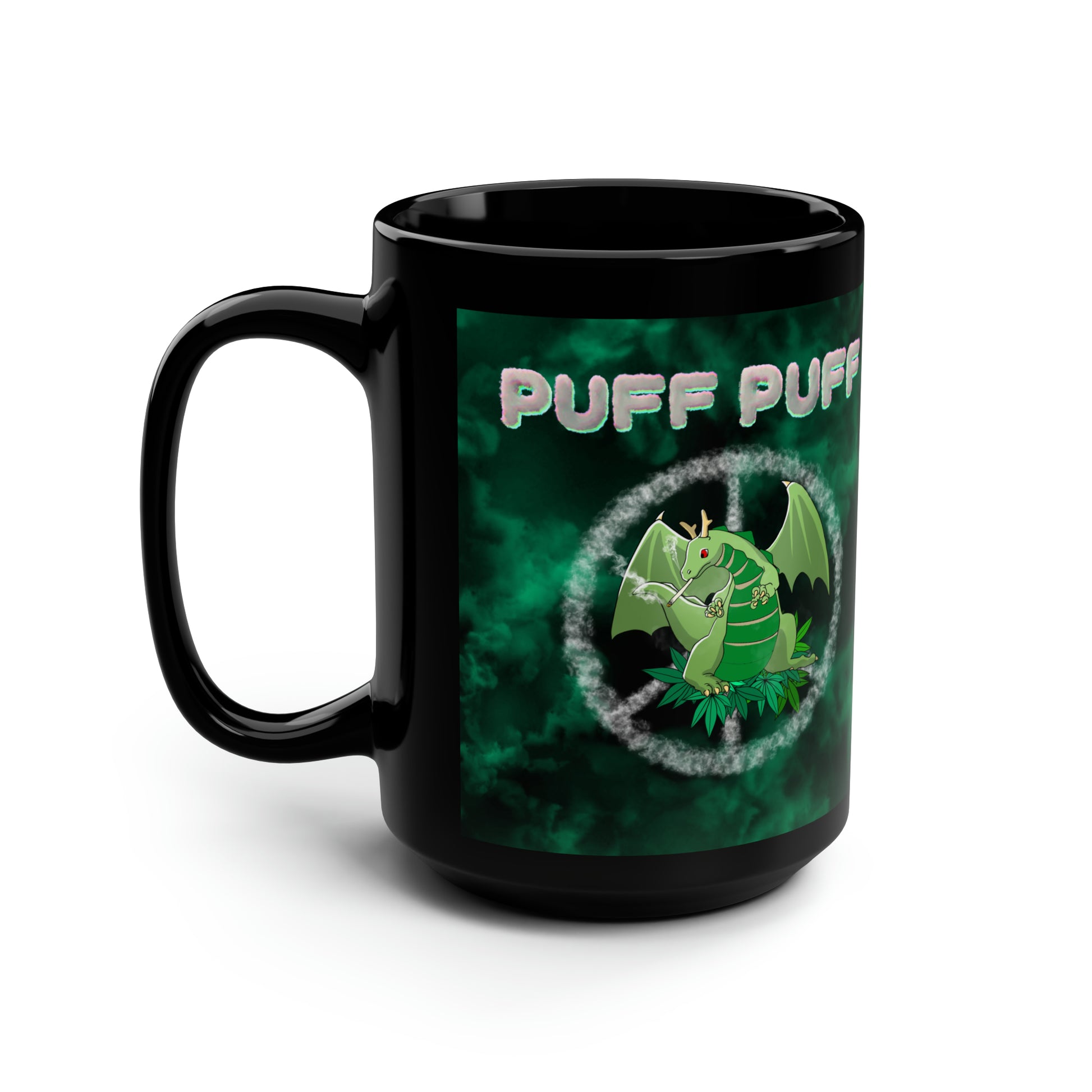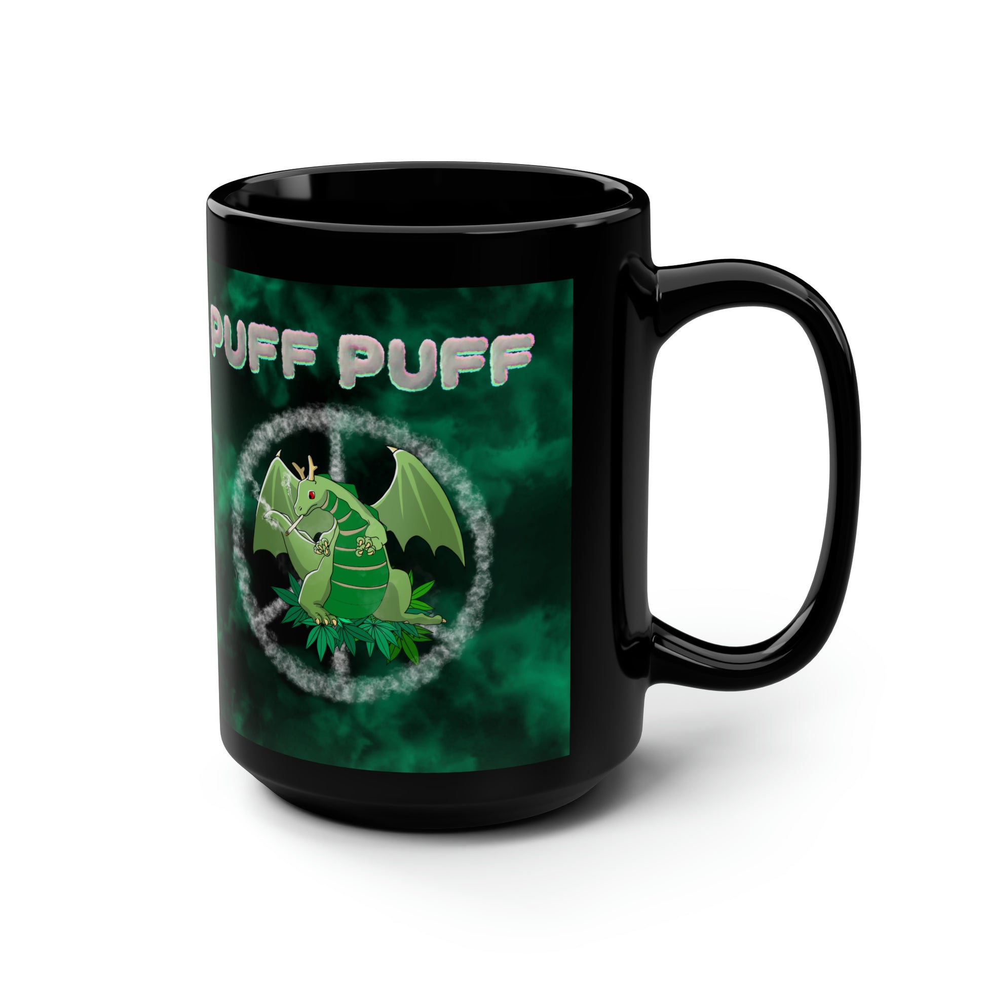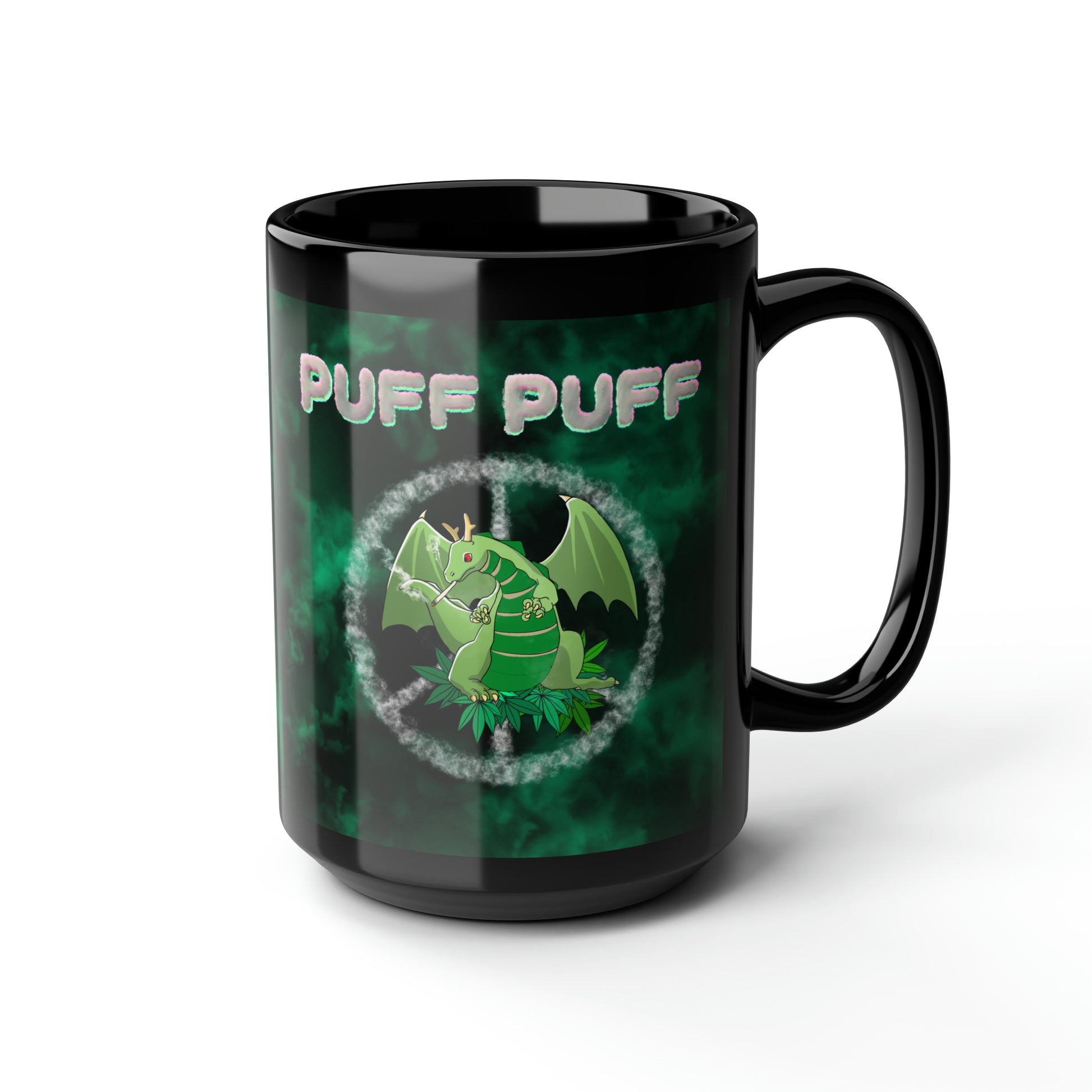 Puff Puff Smokin Dragon, Black Mug, 15oz, 420 Gift
