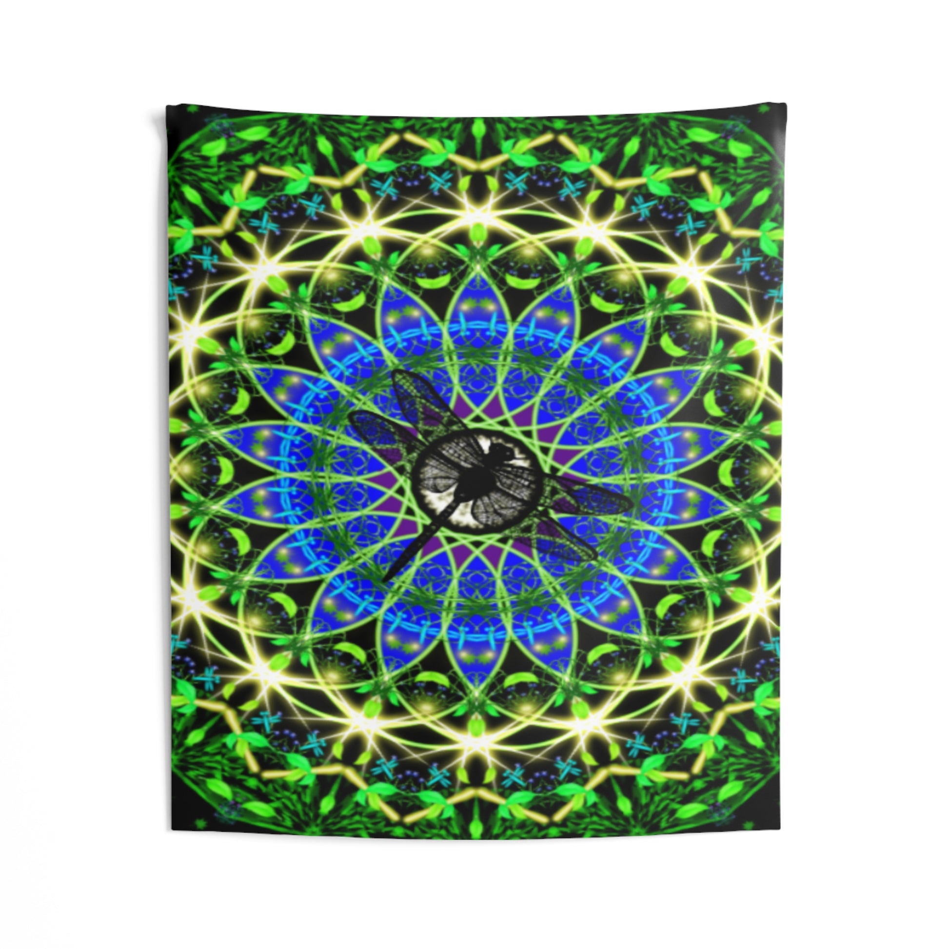 Emerald Abundance Dragonfly Mandala Indoor Wall Tapestry 51 x 60
