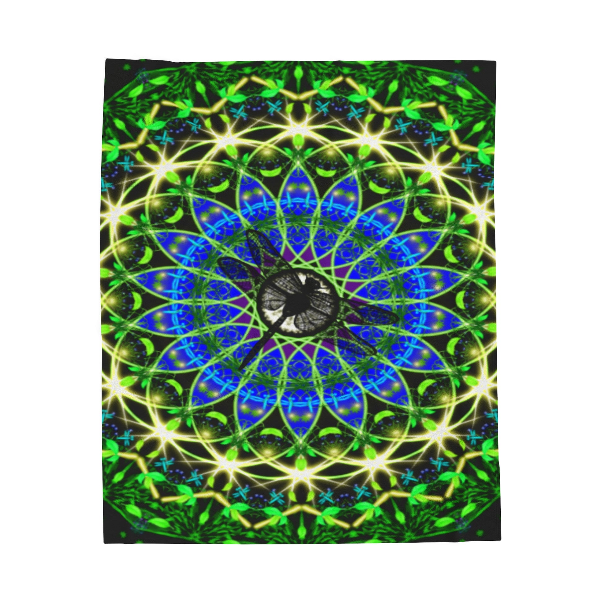Emerald Abundance Dragonfly Mandala Velveteen Plush Blanket