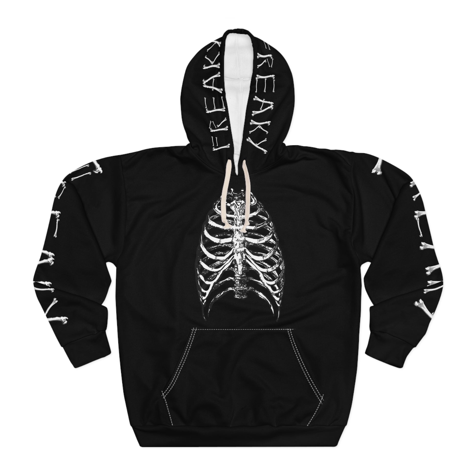 It features a large front pocket, hood with drawstring, and is custom cut and sewn.
