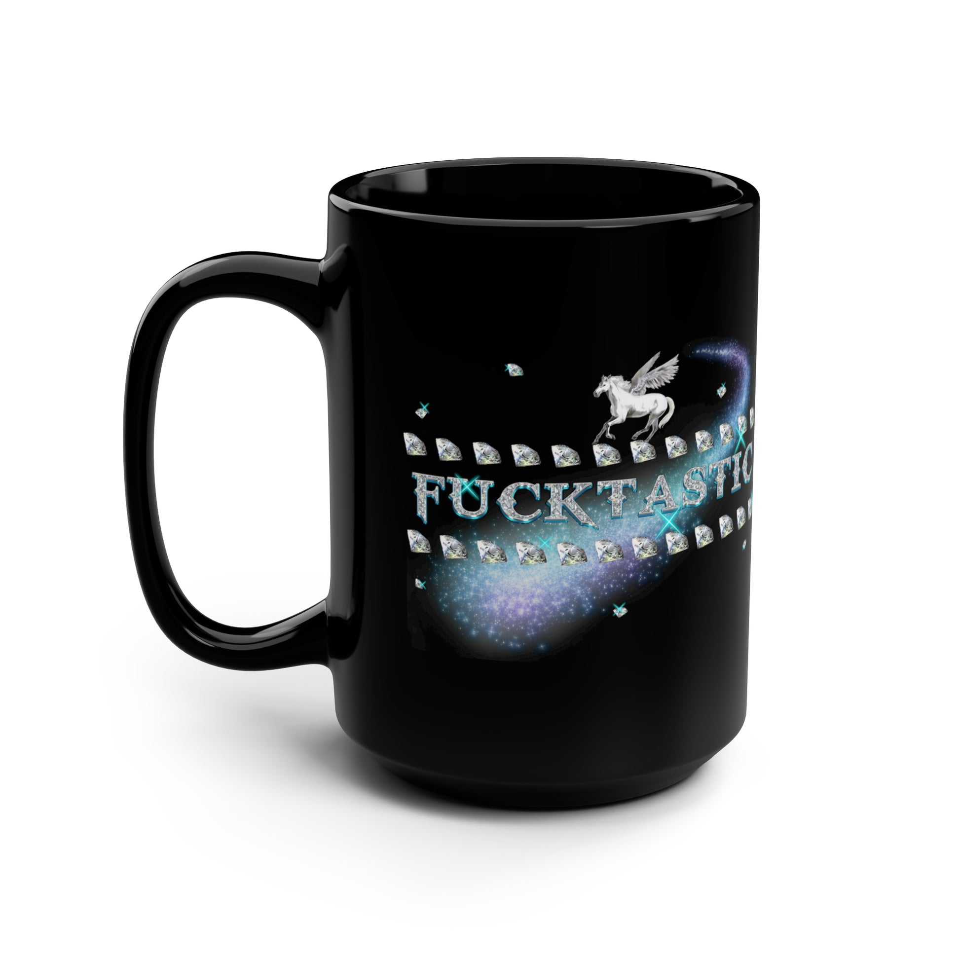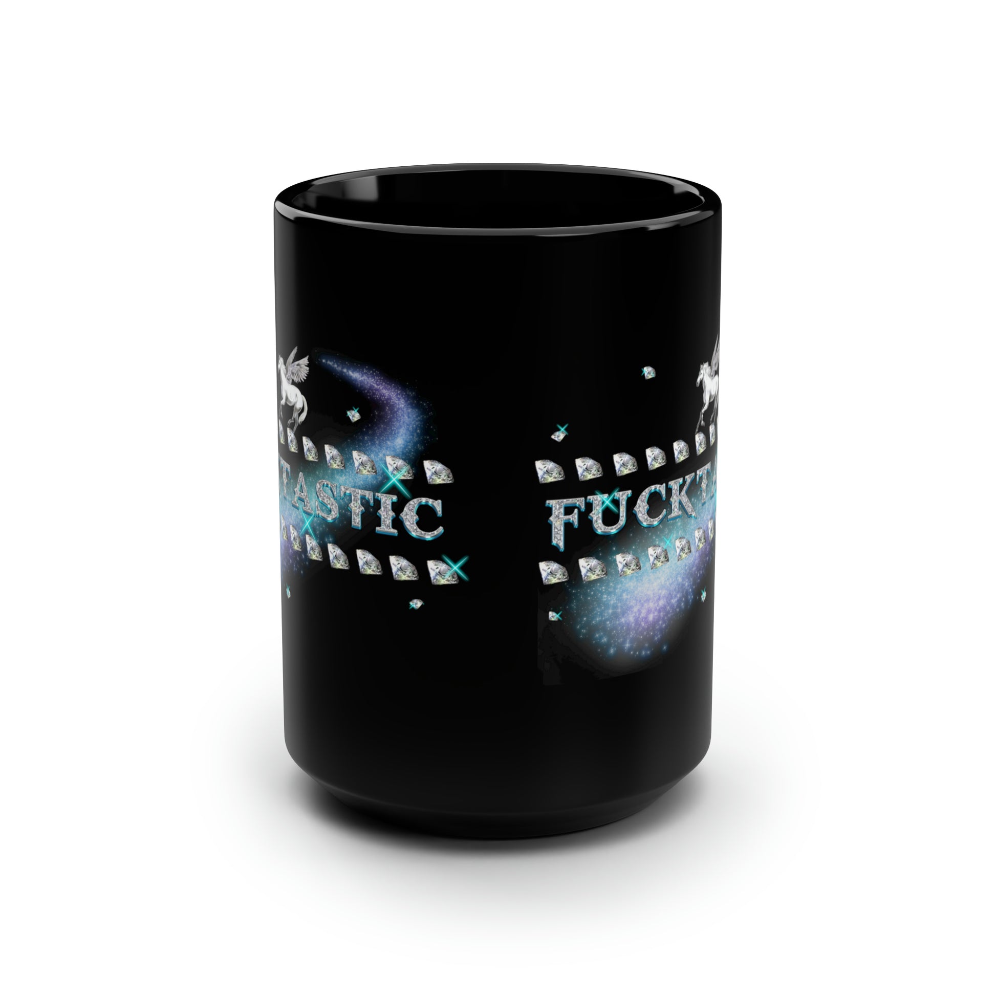 These black mugs come in one size – 15oz (0.44l) – plenty for morning caffeine boosts and hot cups of tea on a rainy day. They're easy to grip and feel sturdy thanks to the C-shaped handle. Printed on the black ceramic material in picture-perfect quality with a glossy finish. .: One size: 15oz (0.44 l) .: C-shaped easy-grip handle .: Black ceramic material with a glossy finish