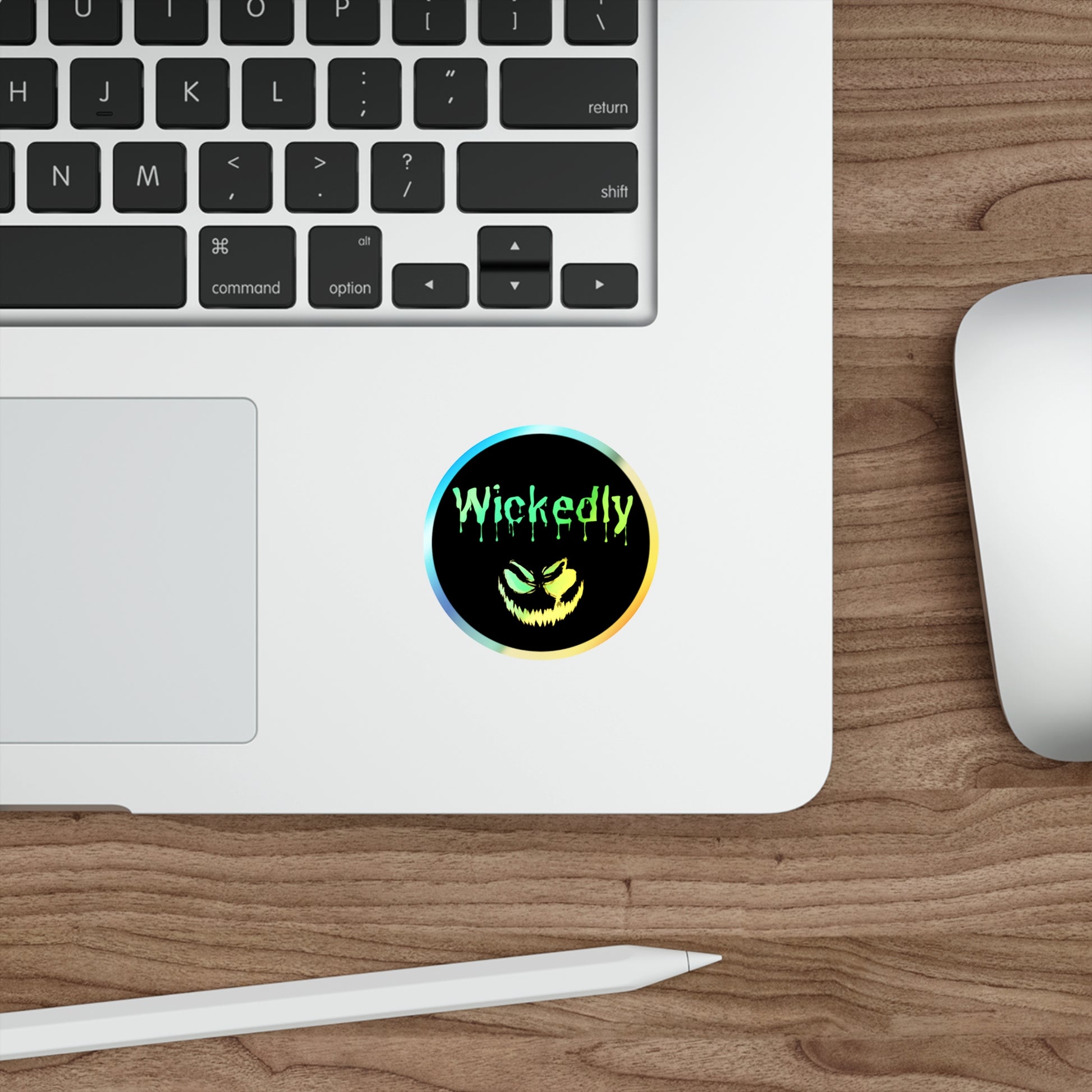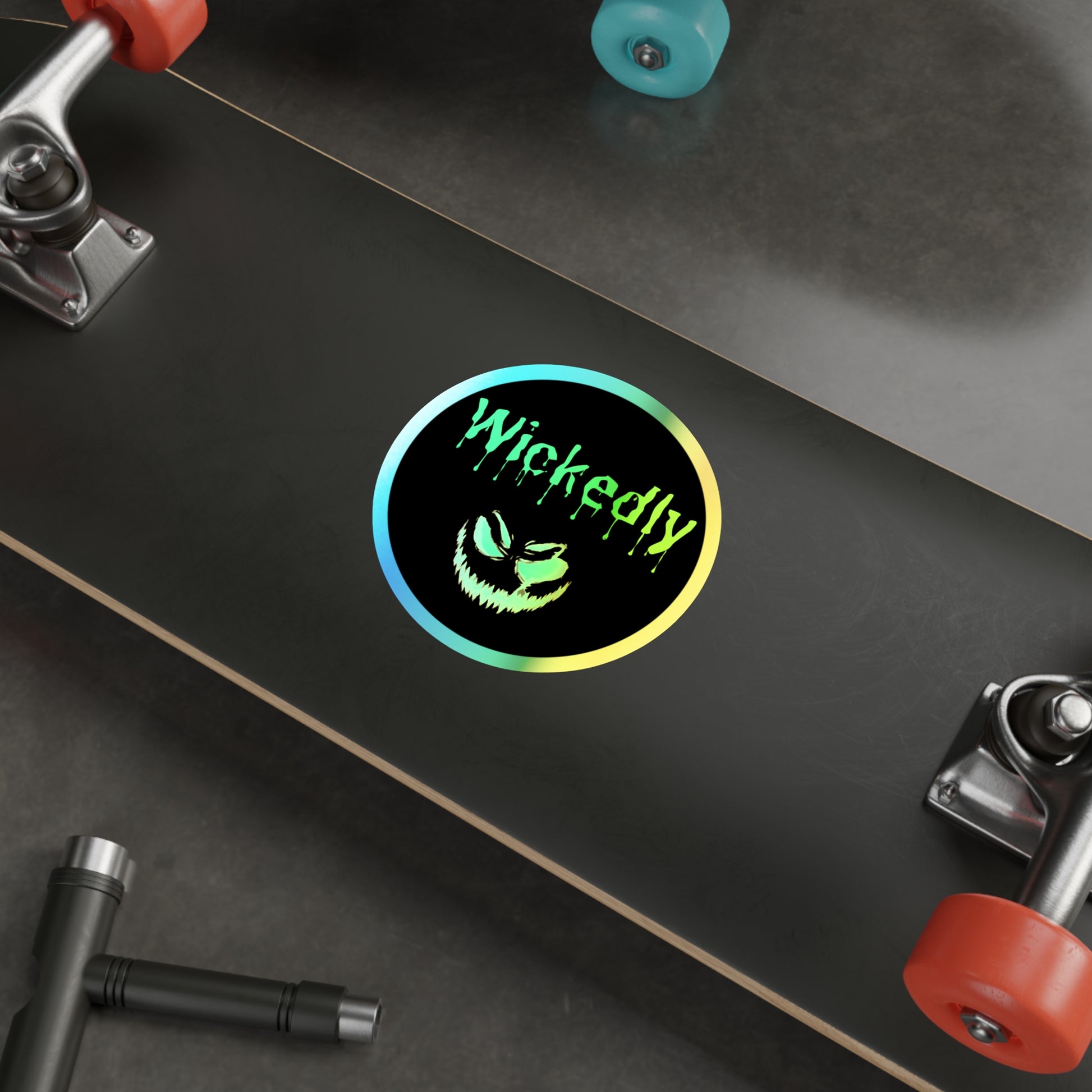 Halloween Rainbow Holographic Die-cut Vinyl Stickers Wickedly Spooky Pumpkin