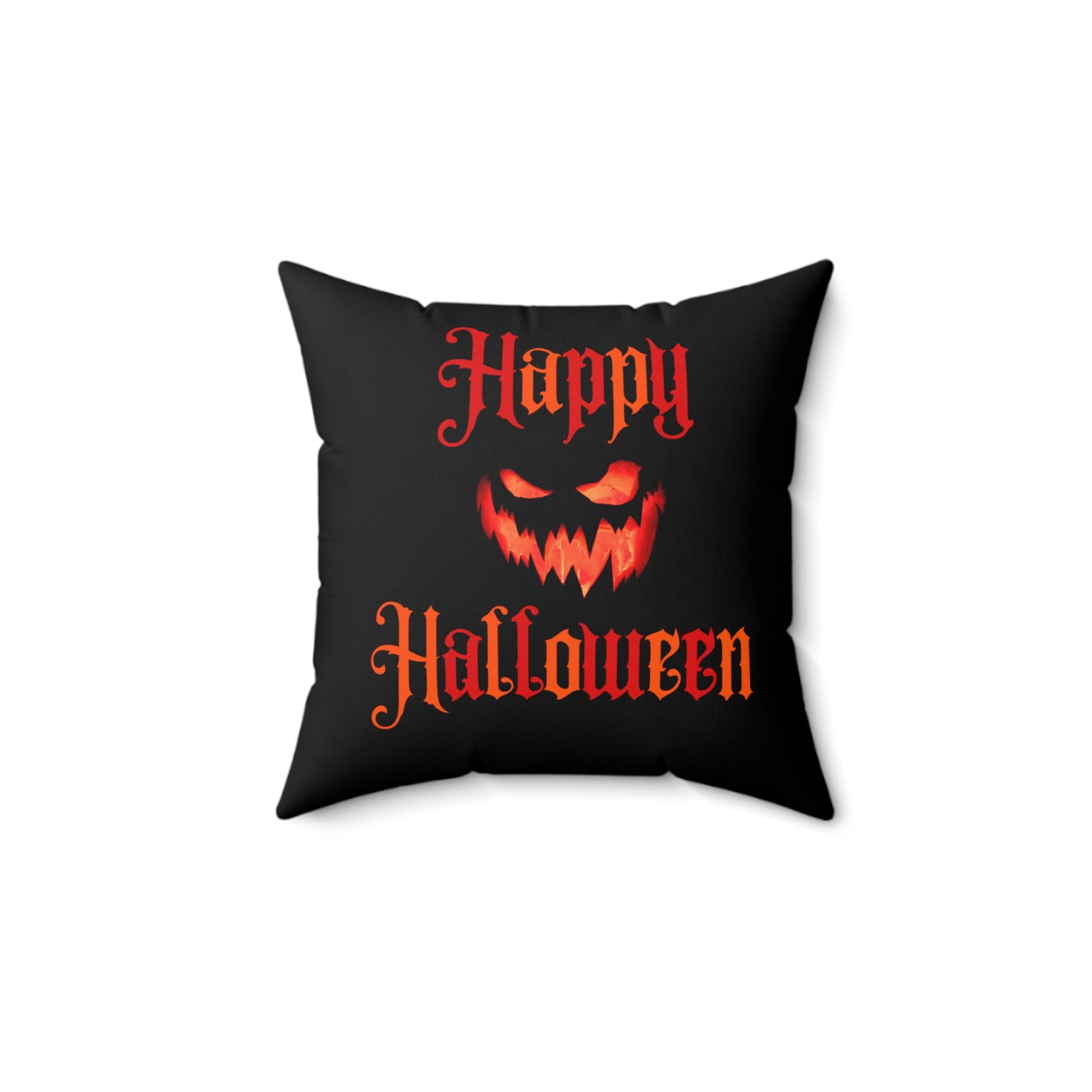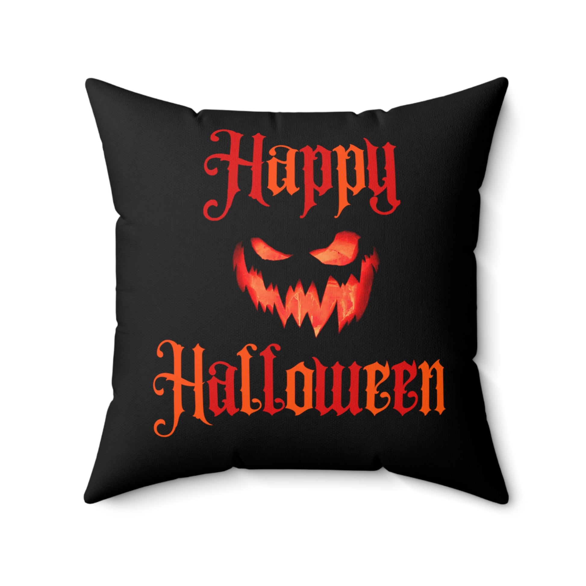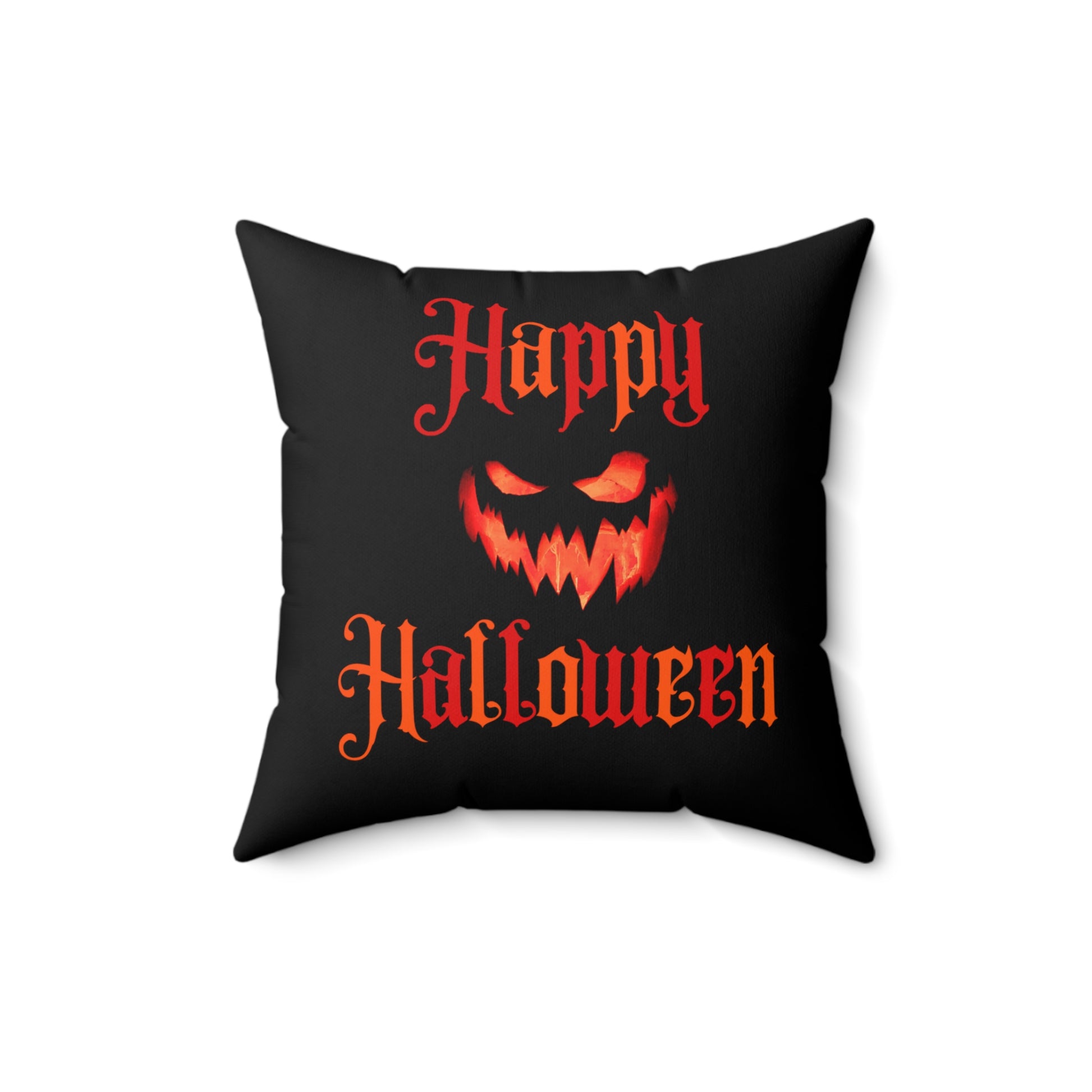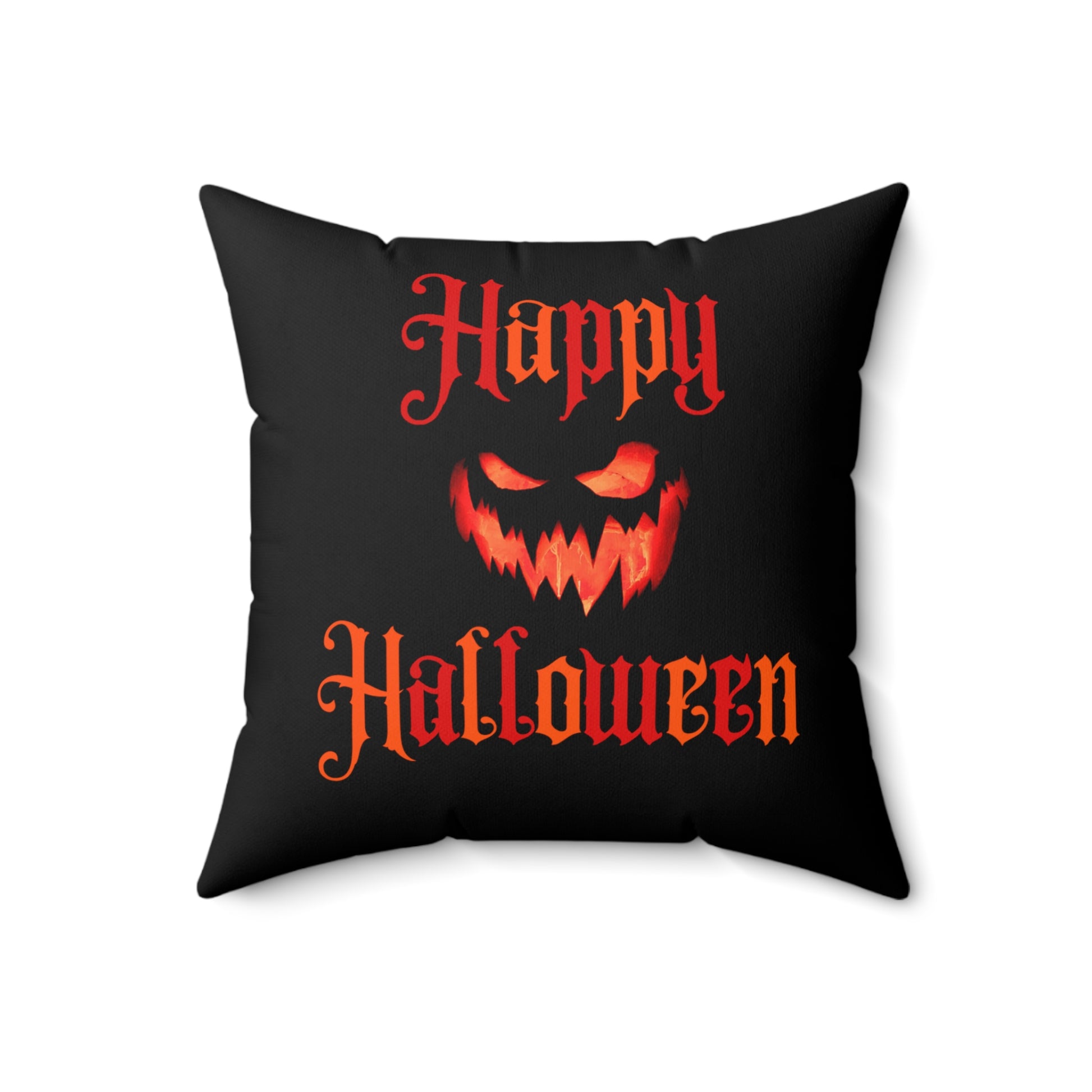 Happy Halloween Pillow Spooky Pumpkin Spun Polyester Square Pillow