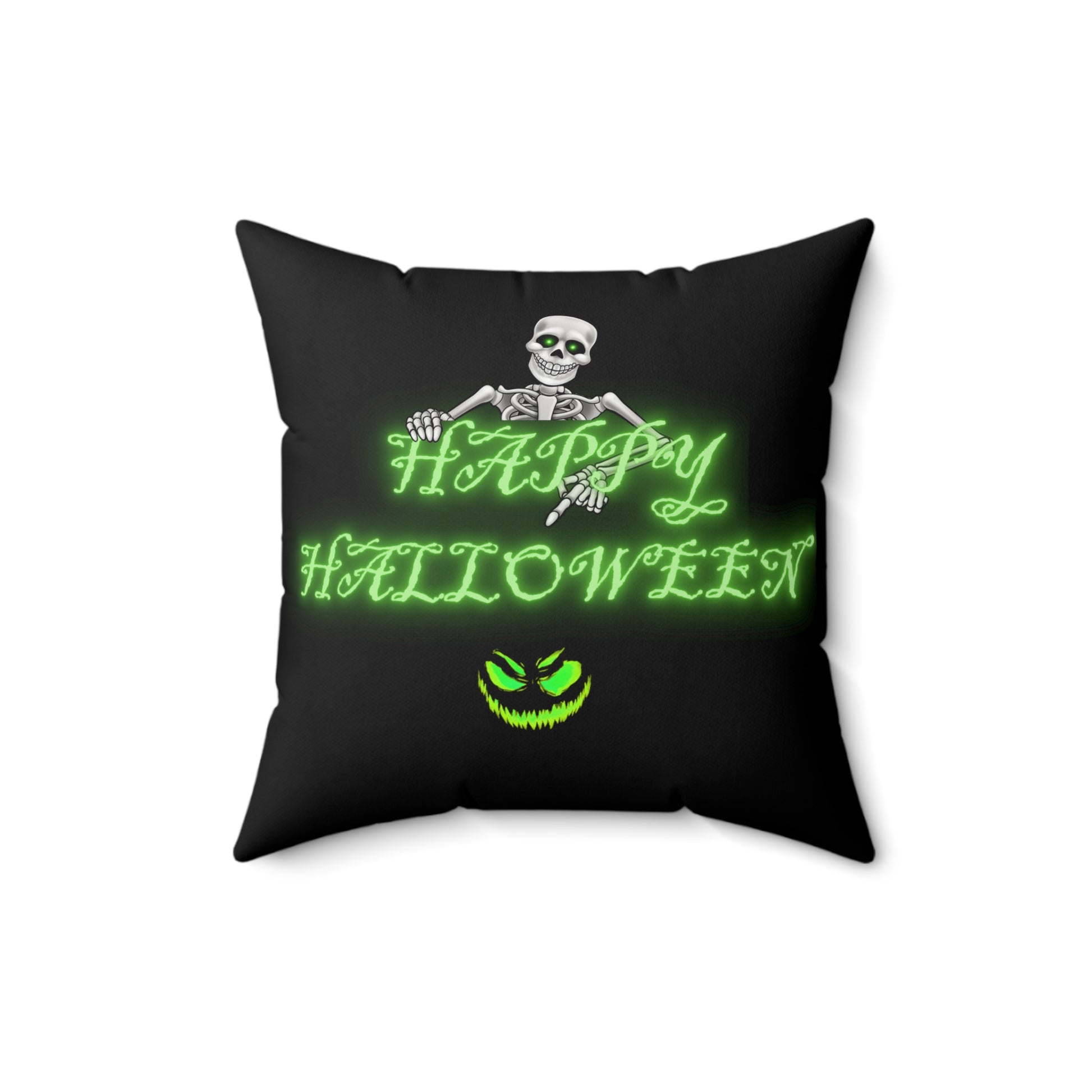 Happy Halloween Skeleton Pillow, Spun Polyester Square Pillow