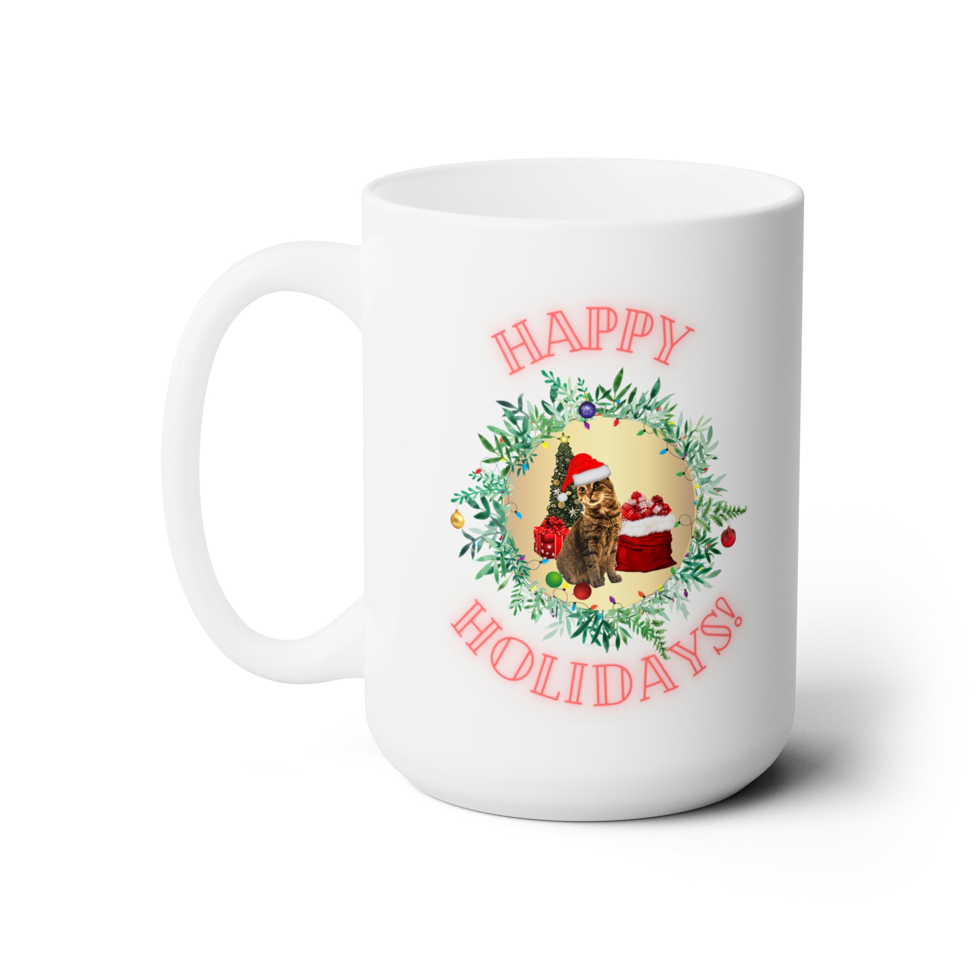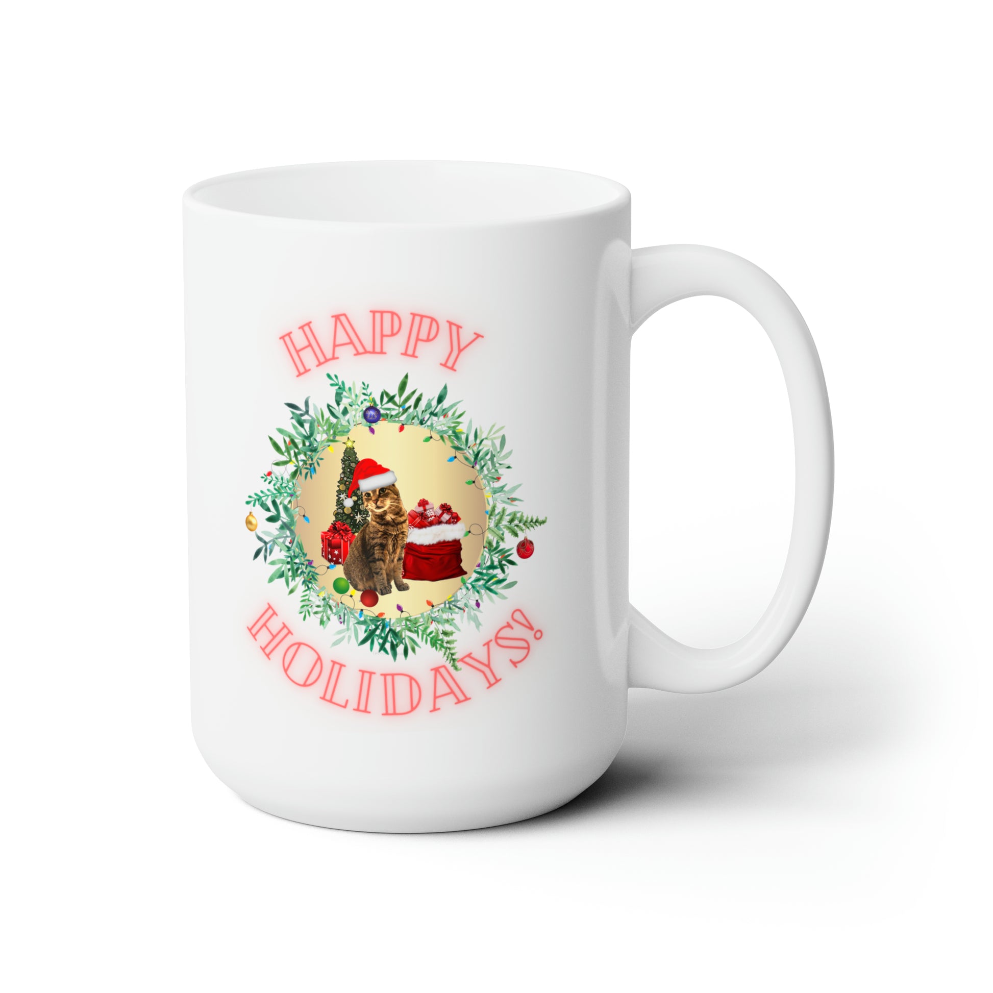 Happy Holidays kitty Christmas Ceramic Mug 15oz
