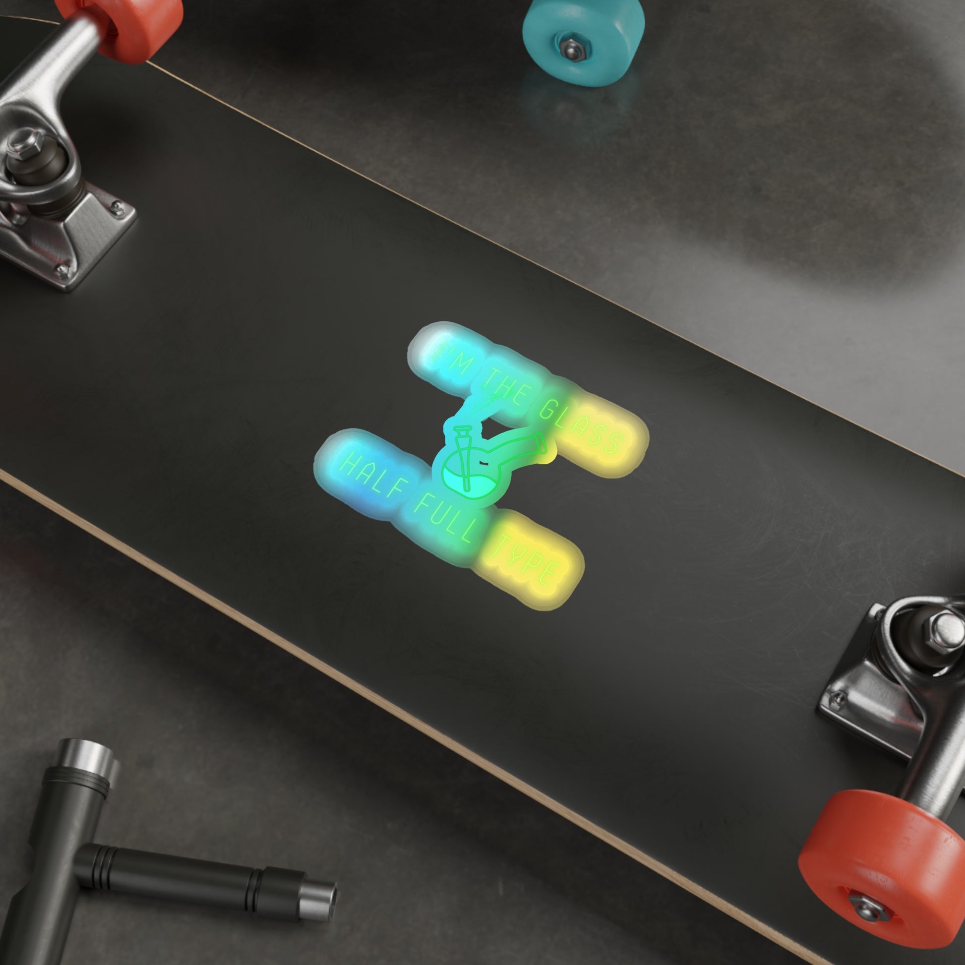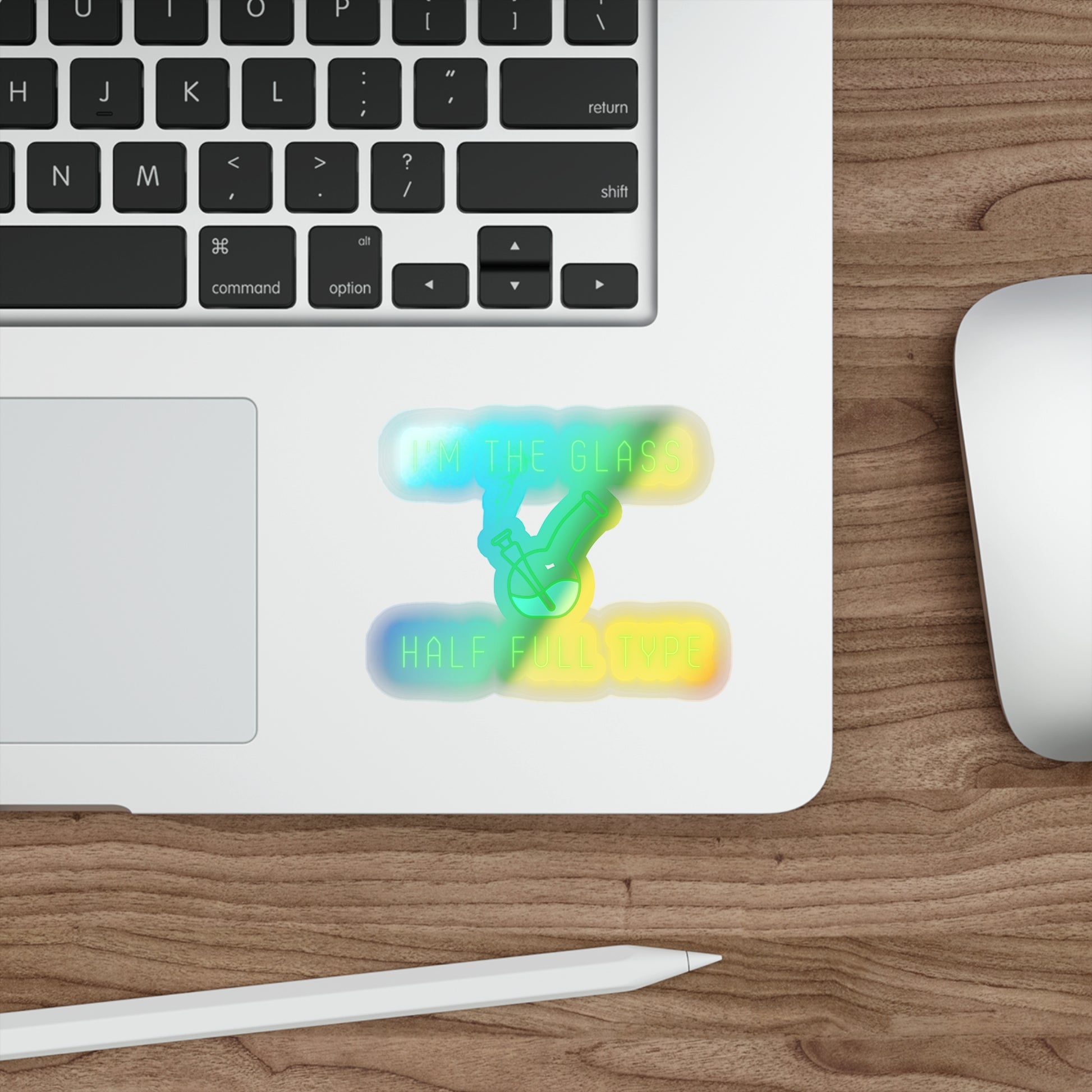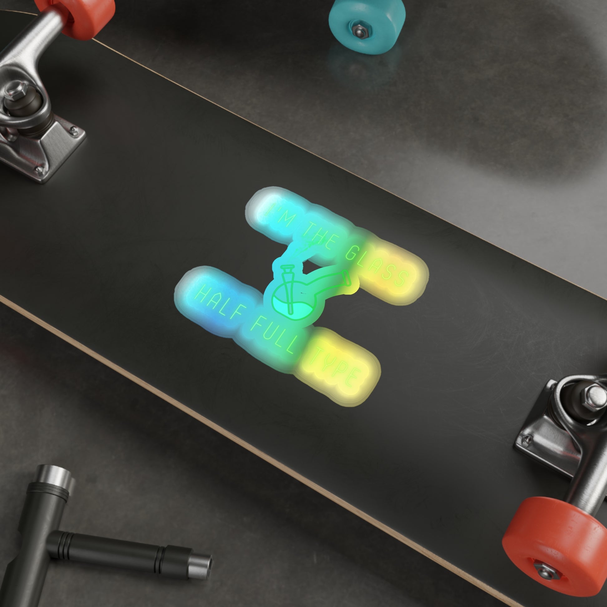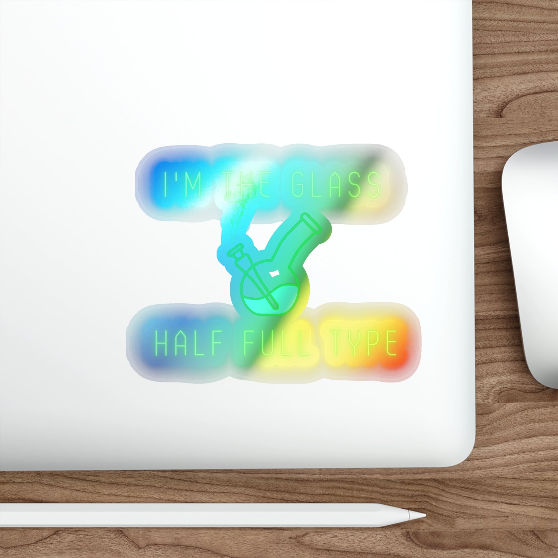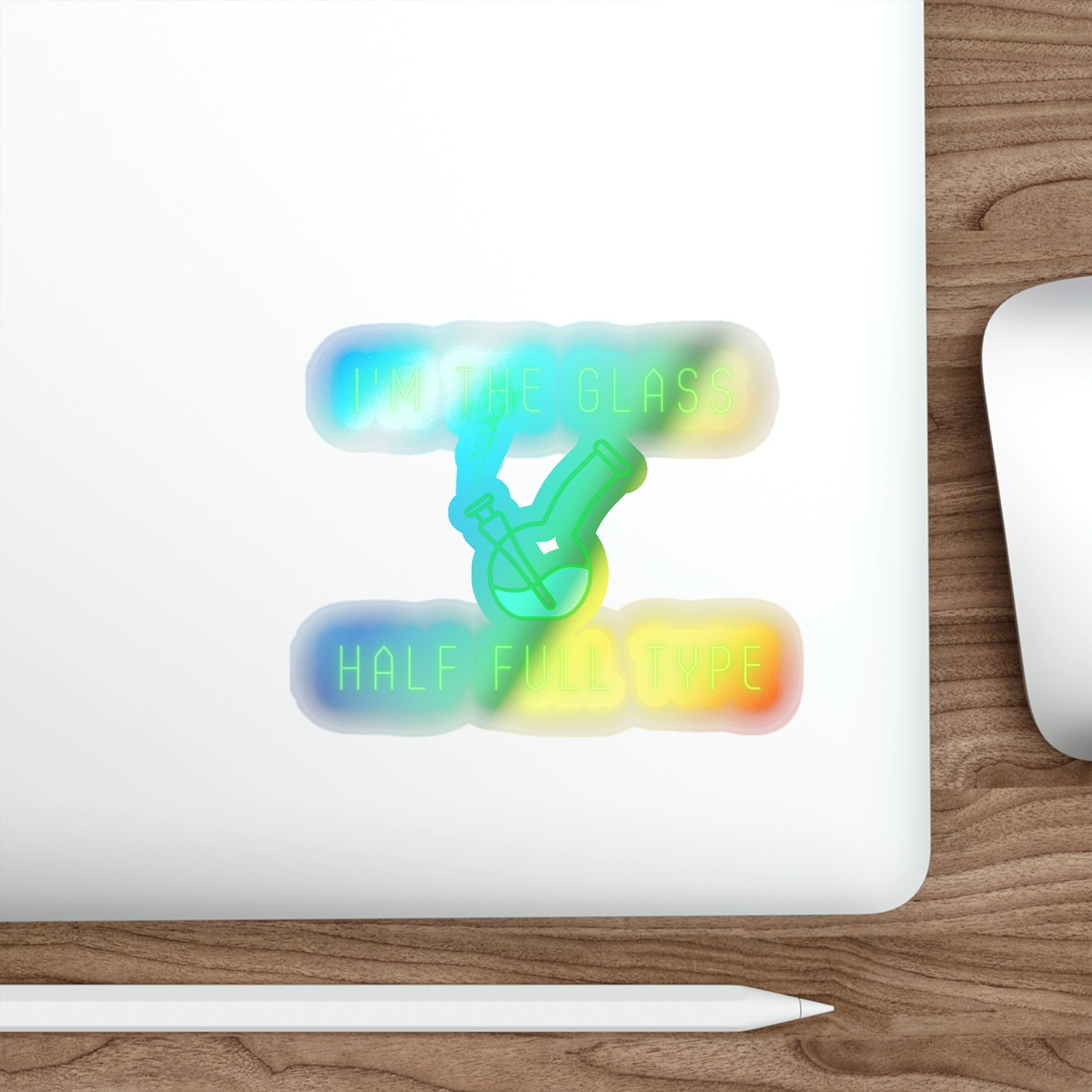 Im The Glass Half Full Type, Rainbow Holographic Die-cut Vinyl Stickers